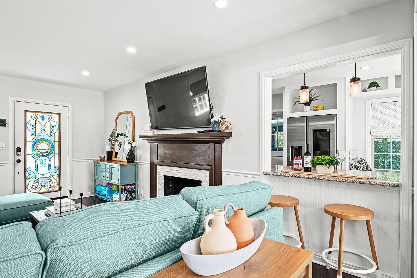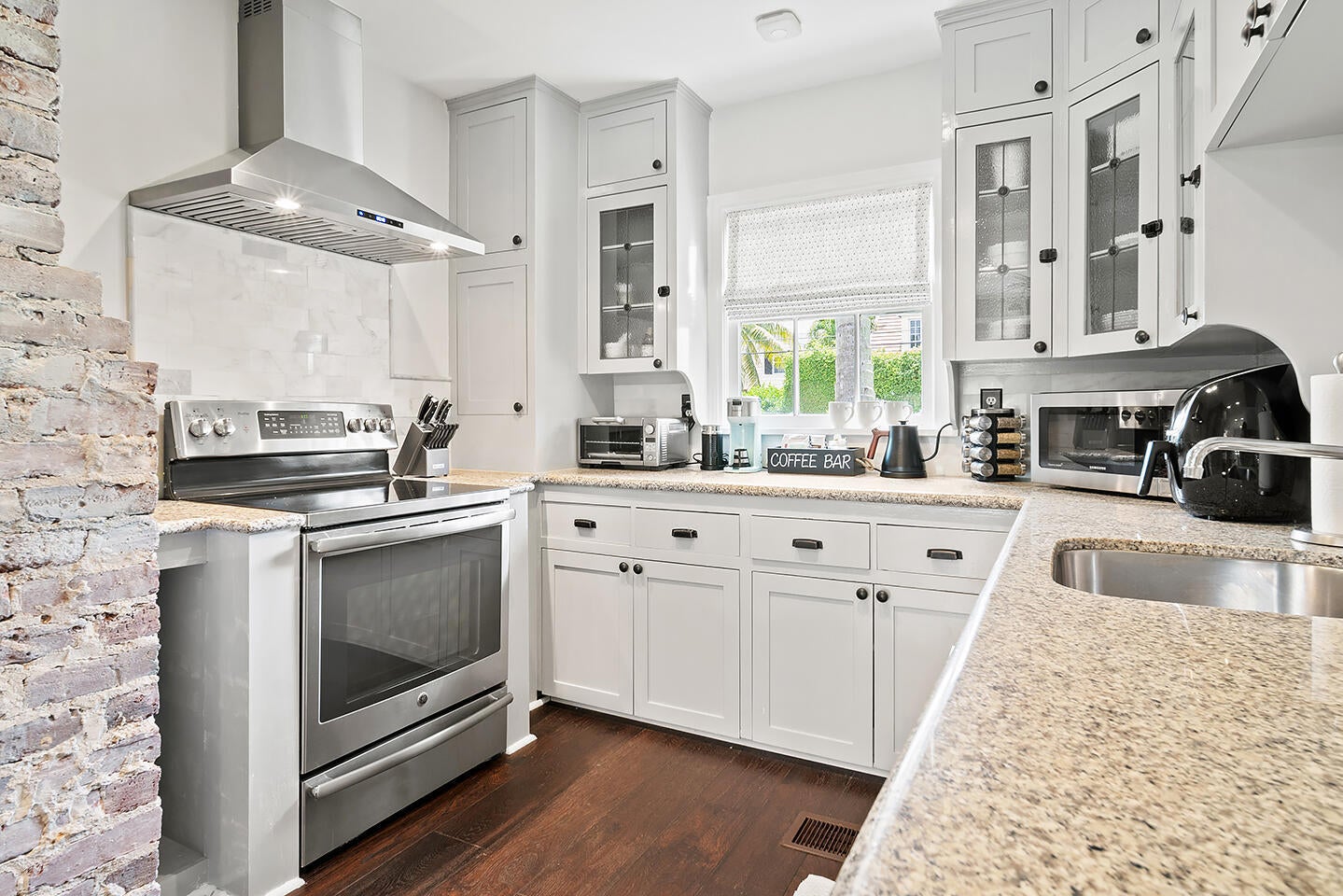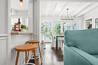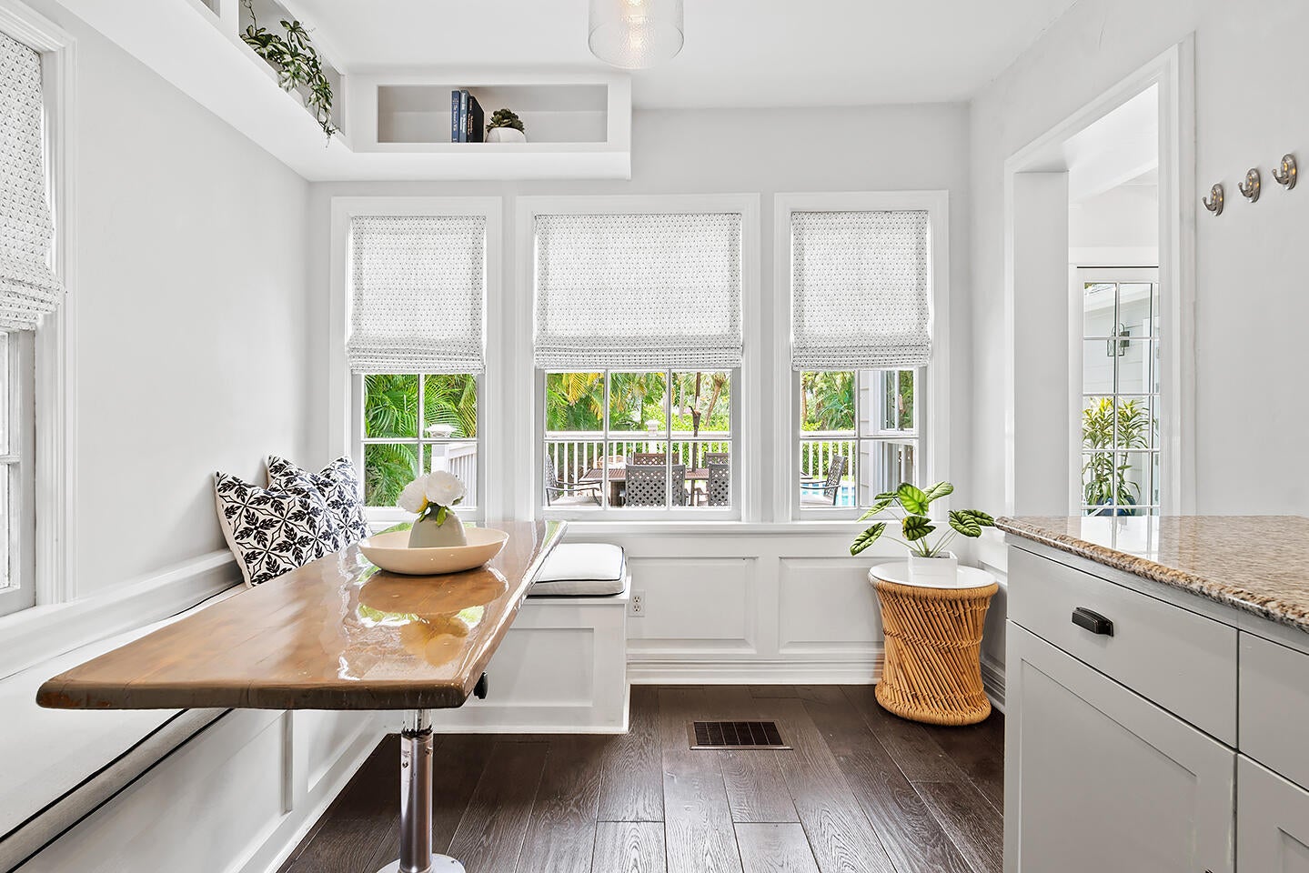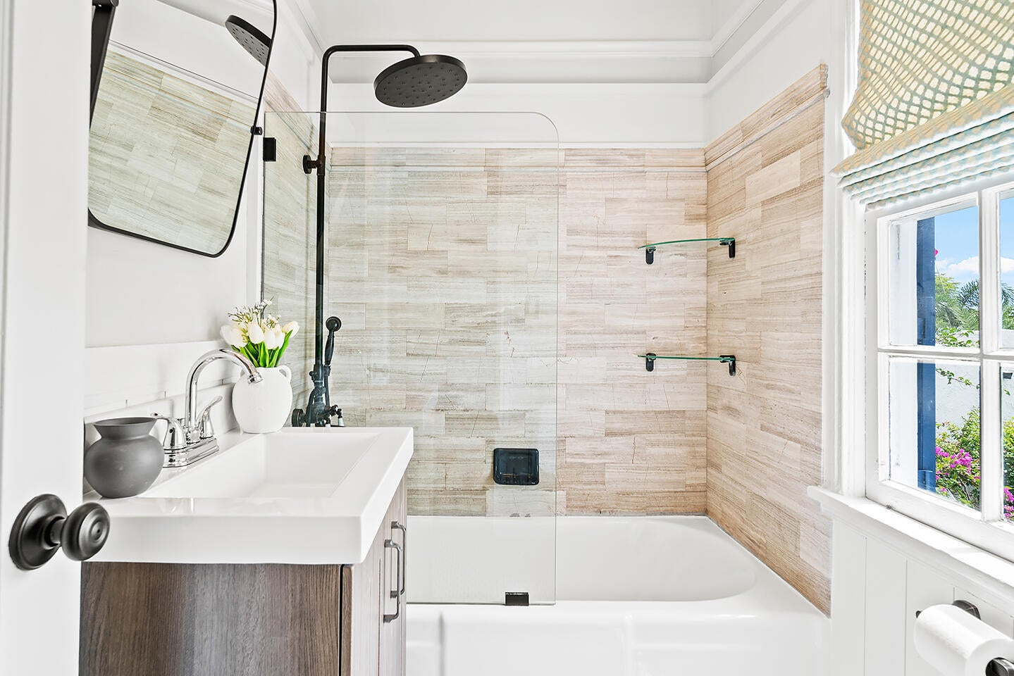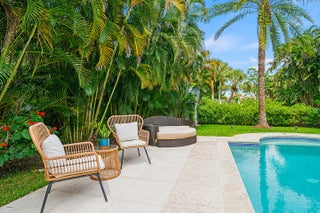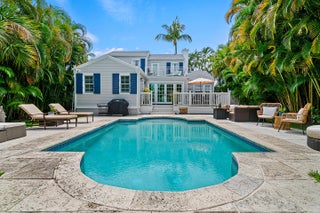 So, So, Charming! Step back in time when you arrive at this classic Palm Beach style 1930s island colonial home with the allure of yesteryear but all the updates for modern living in the popular South End neighborhood.Up the Chicago Brick pathway is the stately column-flanked covered entry with eyebrow arch and pecky cypress detailing leading to the colorful entry door with hand-painted glass inlays. Stepping inside you see the original hardwood floors stained a rich cocoa brown and enter the open living area which boast many historic details like wainscotting, decorative mouldings and a grand fireplace mantel. Such a lovely flow for entertaining with the living room spilling into the sunny open dining area that has a wall of French Doors and windows overlooking the pool and garden.The kitchen with white shaker cabinetry has slow-close drawers and stainless-steel appliances including a wine fridge, ice maker, GE smoothtop range, matching ventilation hood and French Door smart refrigerator with touch screen. Exposed brick detailing, a pot filler and sophisticated marble backsplash complete the look. The eat-in kitchen has a cozy banquette and yacht-style adjustable height table. A convenient pass-through from the kitchen leads to the classic dining area with original 1930s paneling, a beamed tongue-and-groove ceiling and elegant candlestick chandelier. The dining area leads right out to the spacious and low-maintenance Trex-style deck for easy indoor/outdoor living. The roomy main level primary suite with vaulted tongue & groove ceilings has both an island-inspired chandelier and recessed lighting. The primary bath with spa-style finishes has a dual sink marble top vanity, enclosed water closet and oversized glass-enclosed shower with hand-held shower wand and overhead rain shower. The spacious primary closet has a built-in organization system, and the suite also has a set of French Doors to the deck and pool area. The first floor is complete with a power room for convenience and a large utility / laundry room with ample storage. Upstairs, the VIP Bedroom has French Doors to the 2nd floor sun deck with long views past the pool and gardens towards Flagler Drive and the Intracoastal Waterway and two closets including one that is cedar lined. The 3rd bedroom is also upstairs, and the upstairs bath has a tub with rainfall showerhead and glass divider, updated vanity, and 1930s-style wainscotting to fit the classic style. Our back, the fully fenced backyard has lush tropical landscaping; high mature hedges for total privacy; and tall, established, specimen palm trees. The elegant roman-shaped swimming pool was recently converted to a salt-treated water system and has a sun pad for lounging and an expansive surround with plenty of room for both chaise lounges and conversation seating areas. There is an outdoor shower for convenience. The wide deck has a BBQ area and plenty of room for al fresco dining overlooking the pool and gardens. 4206 Washington Road is just a block from Flagler Drive with its wide waterfront promenade perfect for walking the dog or riding your bicycle for miles in either direction along the Intracoastal Waterway. You are close to the design studios and antique shops along Dixie Highway and many restaurants including fine dining at Café Sapori, La Sirena, Café Med and Blue Door. Also, neighborhood favorites like Flanigan's, Howley's, the Dixie Grill & Brewery, Cholo Soy, Field of Greens and Tropical Smokehouse. Specialty locations like Palm Beach Meats and nightlife like Mary Lou's are right nearby and there are multiple grocery stores and markets in the area as well as gyms and fitness centers. The Southend neighborhood has two parks in the neighborhood: South Olive Park, with its beloved Tennis Center, and Phipps Park. You are under 5 miles to Palm Beach International Airport or the Brightline Station or CityPlace or downtown West Palm and quite close to the Southern Bridge to the island of Palm Beach where you can do everything from world-class shopping on Worth Avenue to just watching the warm waves break on the sand. This location is just steps from the waterfront and central to everything you love about the Palm Beaches.