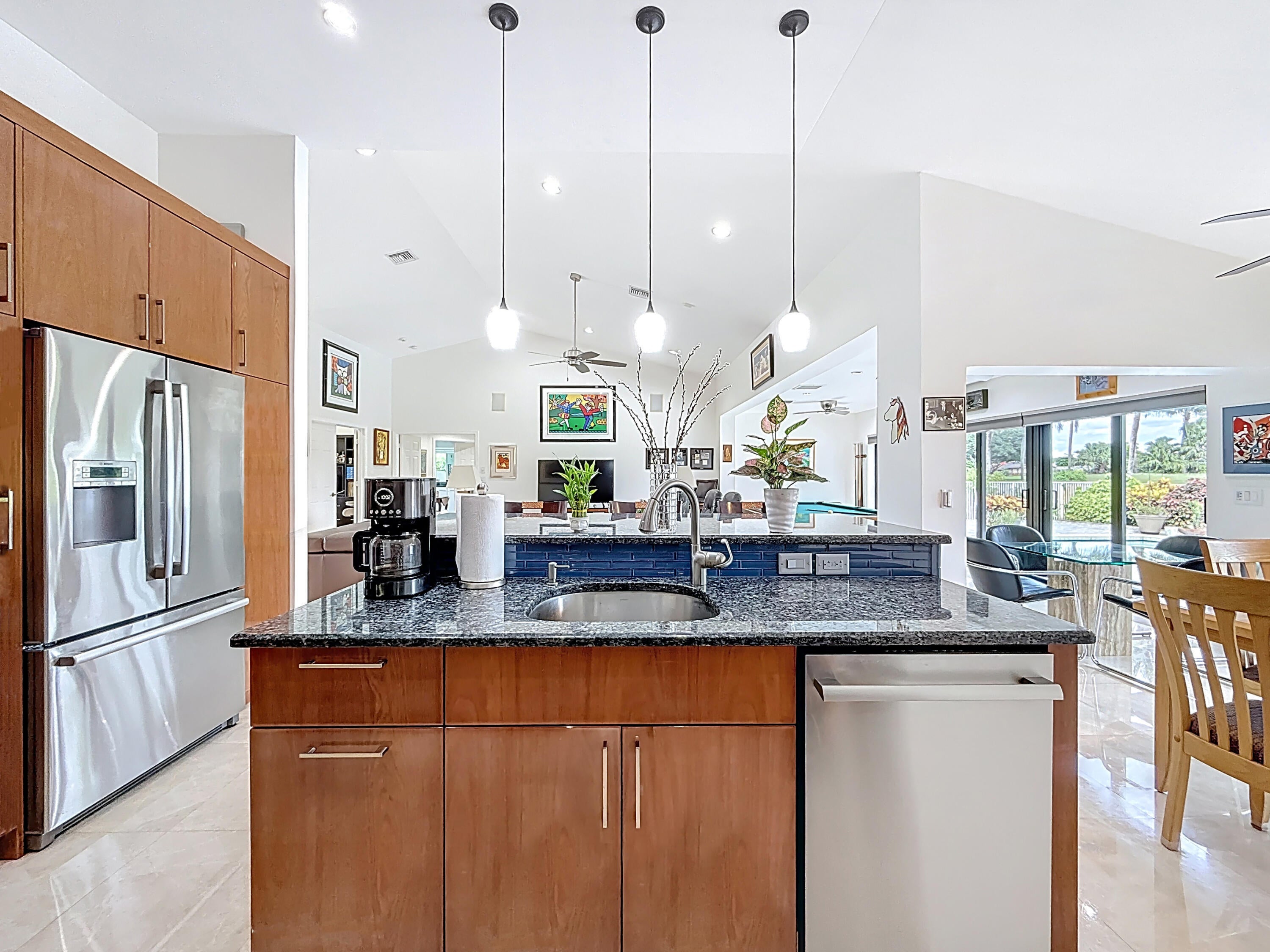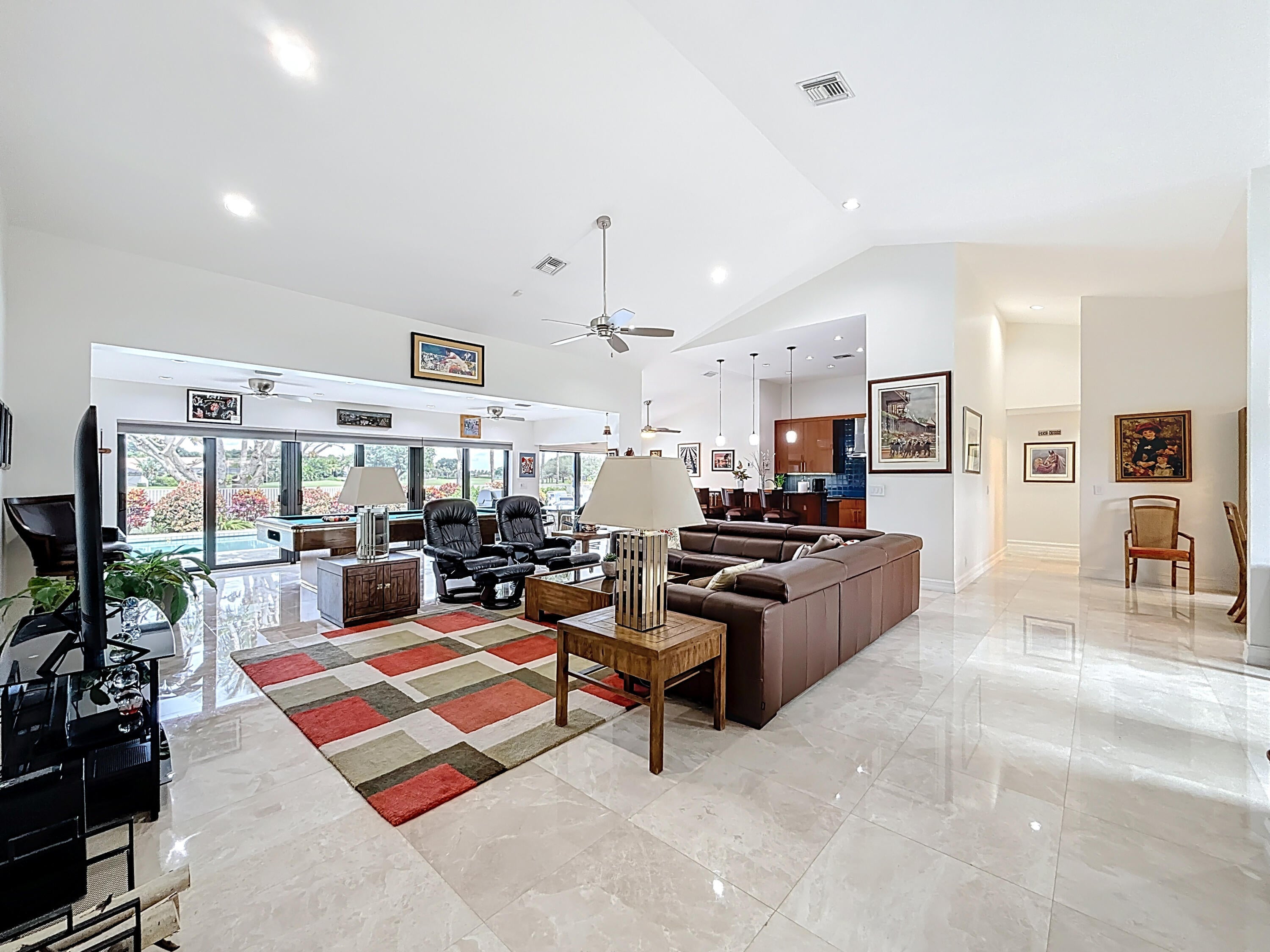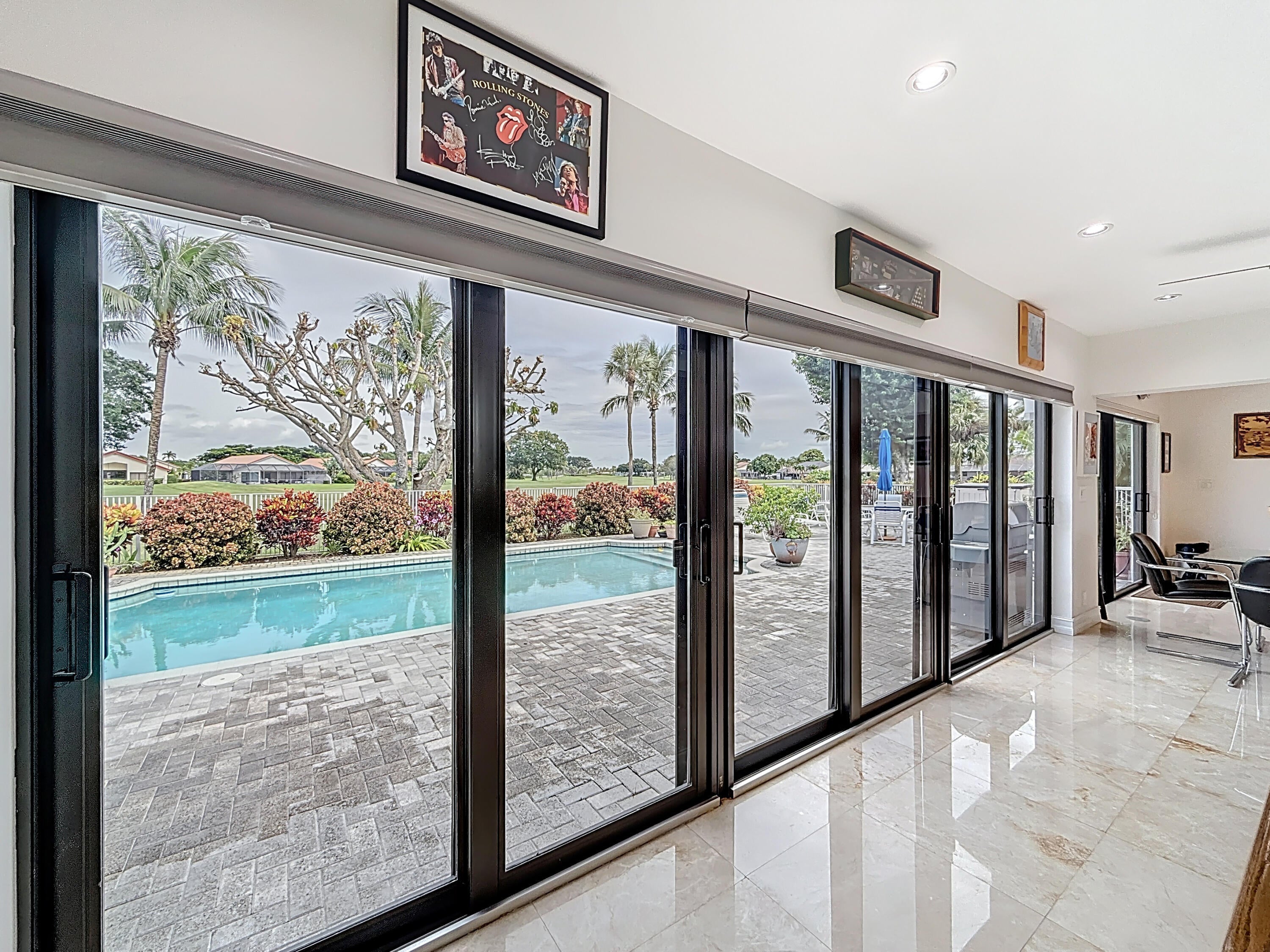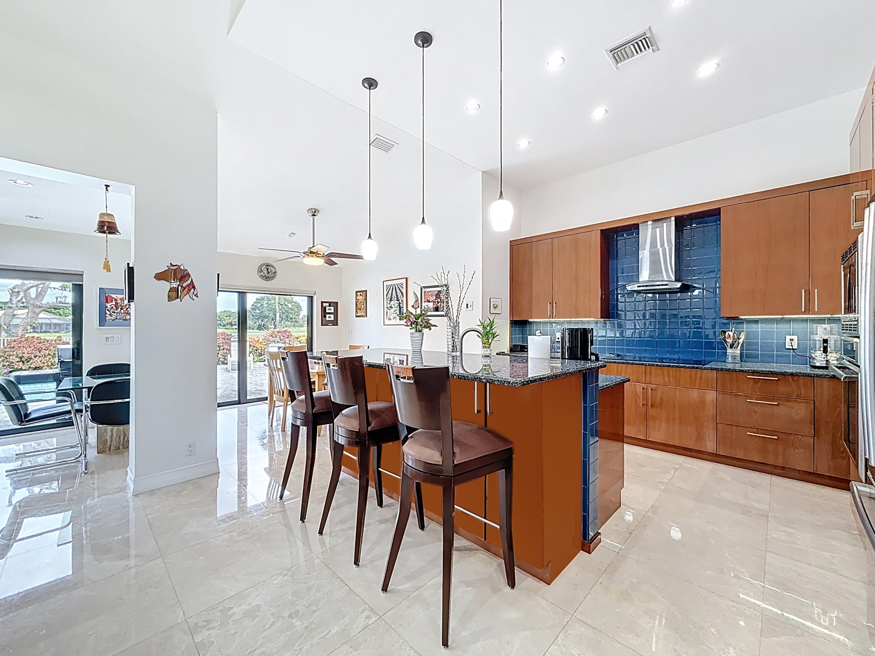 Impressive Expanded Deluxe Brittany-2982 sq. ft.- 3 bedrooms, 21/2 baths and den/office- split bedroom plan. Hurricane Impact windows and doors. Picturesque golf course view. Designer kitchen with exclusive African mahogany cabinets, updated bathrooms, LED recessed lighting throughout, marble floors, circular driveway, epoxy garage floor + wall-to-wall custom cabinets/drawers, and generator. Boca Woods is an all-age Country Club with resort style amenities, including 2 championship golf courses, Har Tru tennis courts, pickle ball courts, bocci ball, spectacular fitness center, renovated clubhouse with fine dining, and valet parking. Mandatory Country Club membership of $120,000 required.