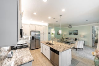 MOST POPULAR IBIS-SHOWS LIKE A MODEL HOME! Impeccably maintained and situated on a larger lot, this 2-bedroom + den, 2-bath, 2-car garage home offers luxury living inside and out. The extended screened lanai features a full outdoor kitchen with sink, natural gas grill and infrared grill--perfect for entertaining.Step inside to a light and bright open layout with tile flooring throughout the main living areas, fresh interior paint, elegant foyer entry, crown molding, and custom touches at every turn. The stunning great room showcases a ''fandalier'' (a crystal chandelier with a built-in modern fan) and floor outlets for flexible furniture placement. The gourmet kitchen boasts granite countertops and backsplash, gas stove, upgraded soft-close cabinets and drawers, accent cabinet lighting and a breakfast bar. A dining/breakfast nook sits just off the kitchen for convenience. The split floor plan offers privacy, with a spacious primary suite featuring his-and-her custom walk-in closets and a beautifully upgraded bath with floor-to-ceiling tile in the shower and upgraded mirrors. Bedroom 2 includes its own walk-in closet. The versatile den/flex room has a pocket door and can easily function as a third bedroom. Additional features include neutral carpet in bedrooms and flex room, upgraded laundry room with custom cabinetry and extra storage, impact windows and doors, ceiling storage in garage, and wired for a generator. LIVE THE RIVERLAND RESORT LIFESTYLE Residents of Valencia Cay enjoy access to outstanding amenities, including a beautifully appointed clubhouse, resort-style pools, a state-of-the-art fitness center, 53 pickleball courts 8 of which are covered, creative studios, and miles of scenic walking trails. The highly anticipated 51,000-sq-ft Riverland Wellness & Fitness Center will feature: " 16,000-sq-ft gym " Full-service spa " 17,000-sq-ft indoor sports complex " 12,000-sq-ft group fitness pavilion " Nearby RiverFresh Café for post-workout dining Just minutes away, Paseo Park offers 12 acres of outdoor recreation with a 2-acre dog park, lighted fields, and shaded seating. Located close to world-class medical facilities, fine dining, boutique shopping, and even the world's largest heart sculpture, this home delivers exceptional quality, a prime location, and an unmatched lifestyle.