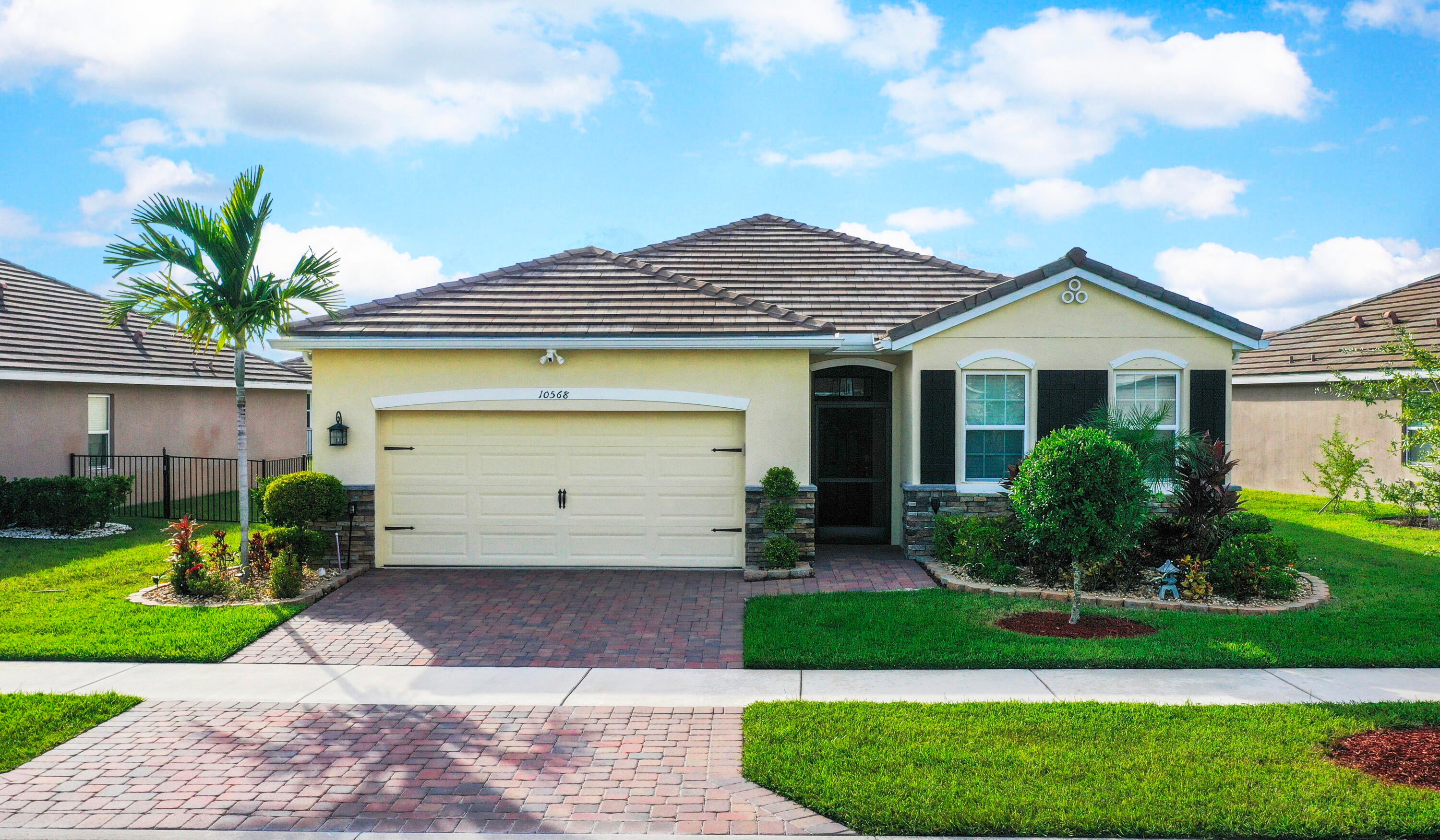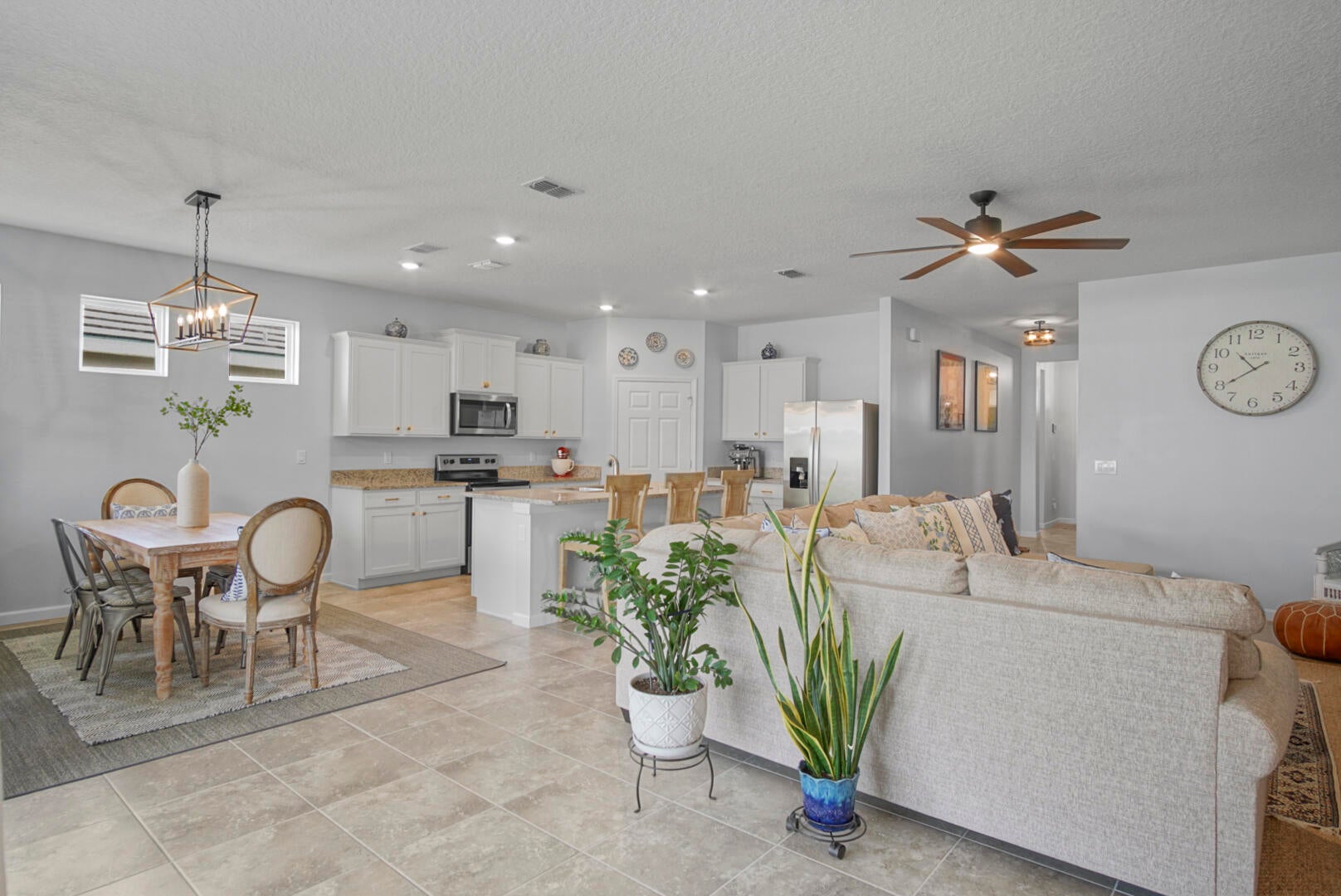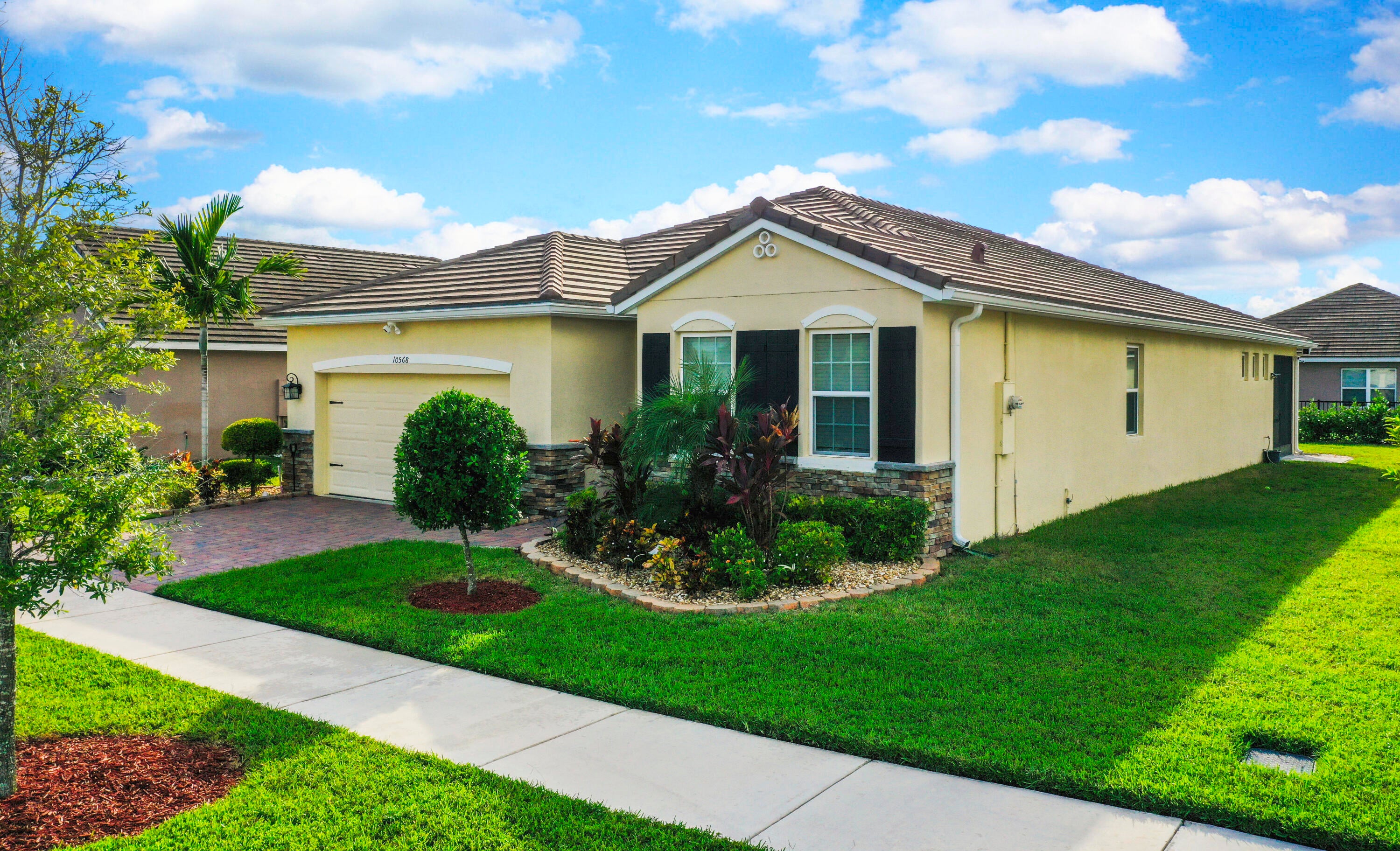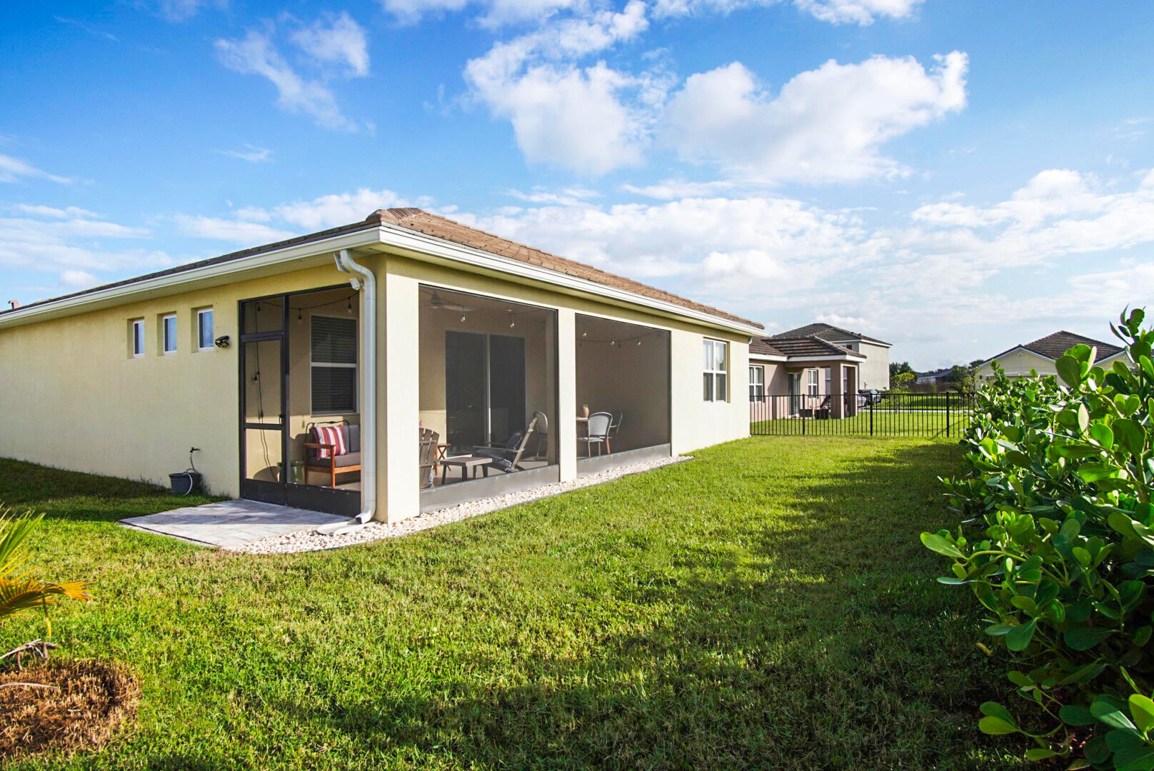Discover this beautifully cared-for 4-bedroom, 2-bath home in the heart of Tradition--close to everything you need. Inside, you'll find light, neutral tile in the kitchen and living areas paired with cozy carpet in the bedrooms, making it easy to match any style. The kitchen is a true highlight with crisp white cabinetry, stainless steel appliances, granite countertops, and a spacious walk-in pantry. The open-concept living and dining areas are perfect for gathering with family and friends, while the four bedrooms provide plenty of flexibility and privacy. The spacious primary suite features two walk-in closets and a well-appointed bathroom with dual sinks and a tiled shower. A second full bathroom, thoughtfully designed with two linen closets nearby, offers extra storage.Step outside to the lanai, where there's room for both a comfortable seating area and a dining set- ideal for relaxing or entertaining. Located in The Preserve within the Estates of Tradition, this community offers a sparkling pool, sidewalks for leisurely strolls, and a beautiful gated entrance that welcomes you home.