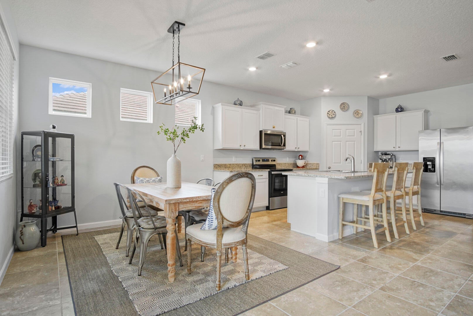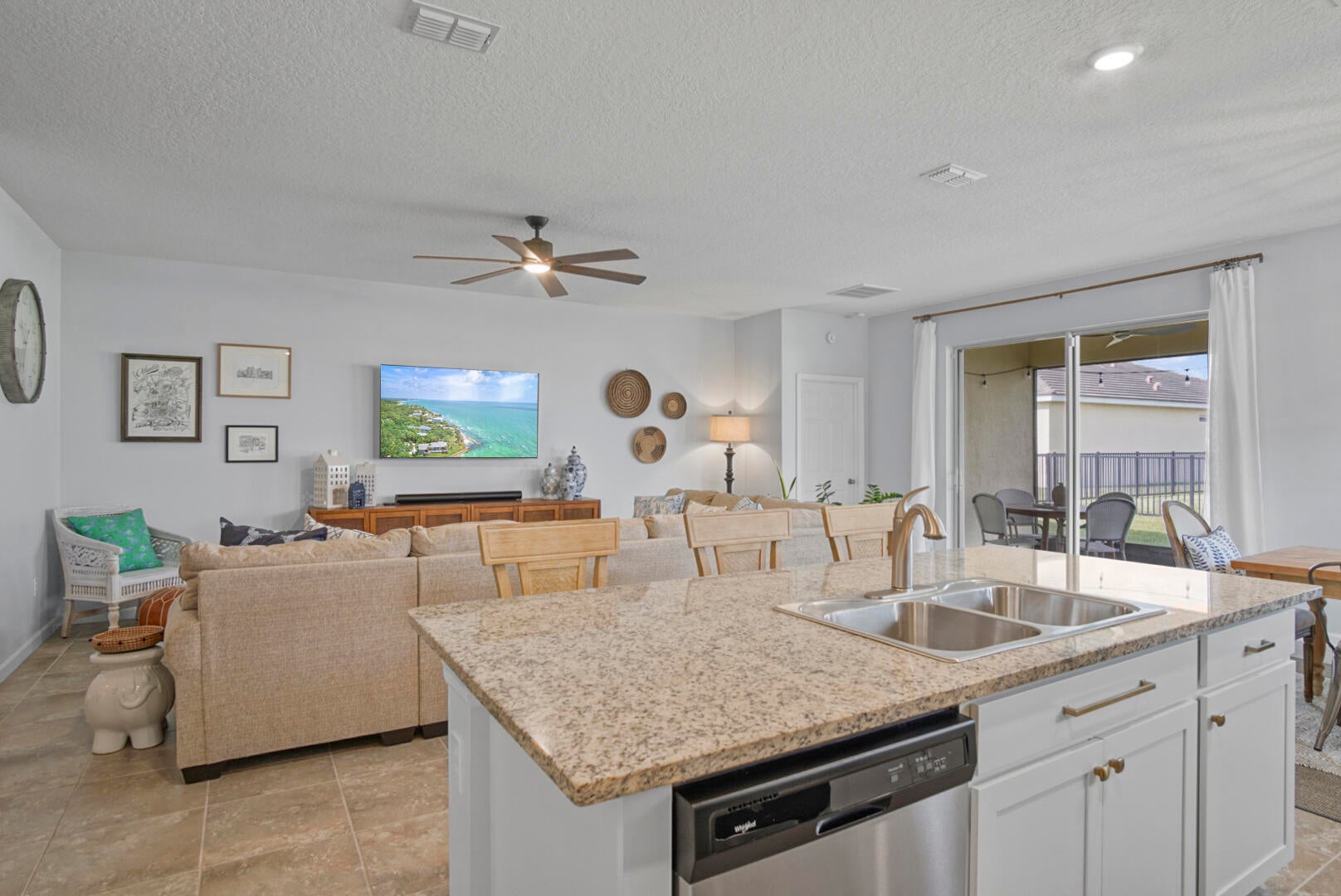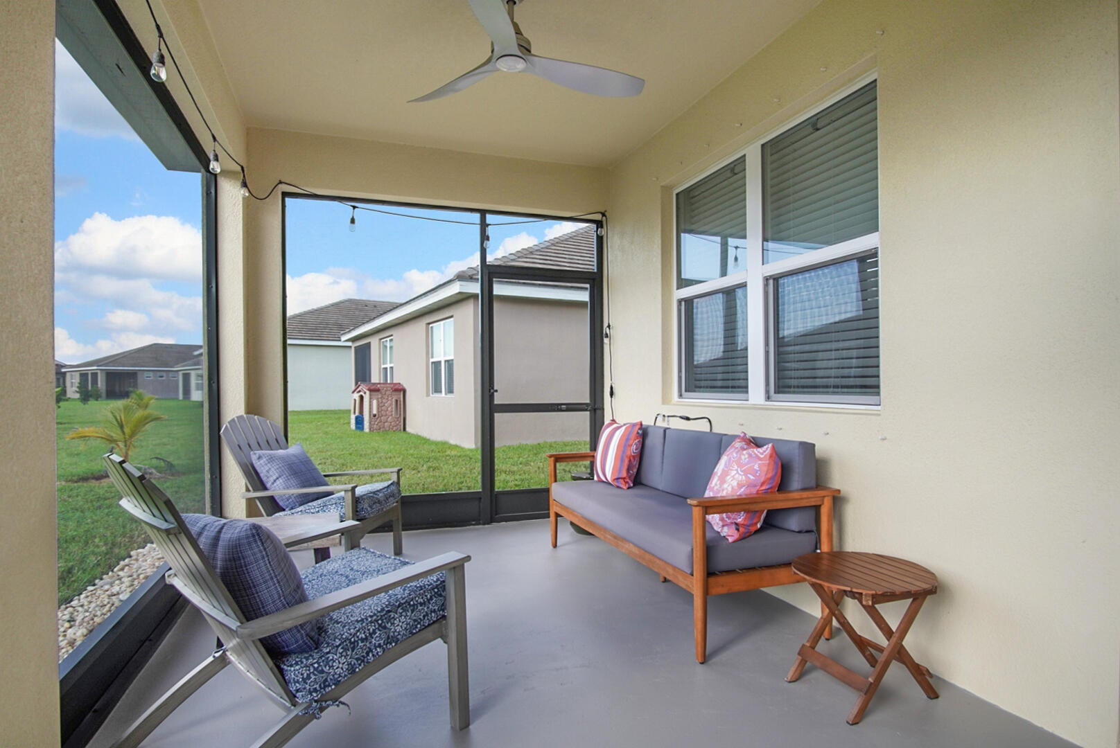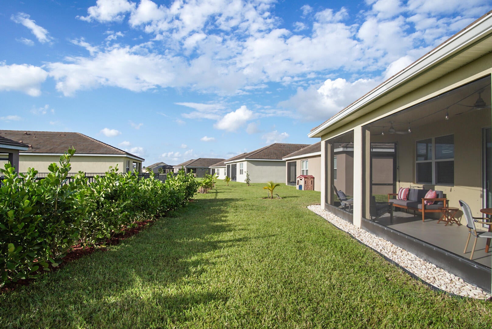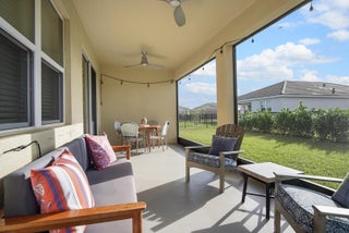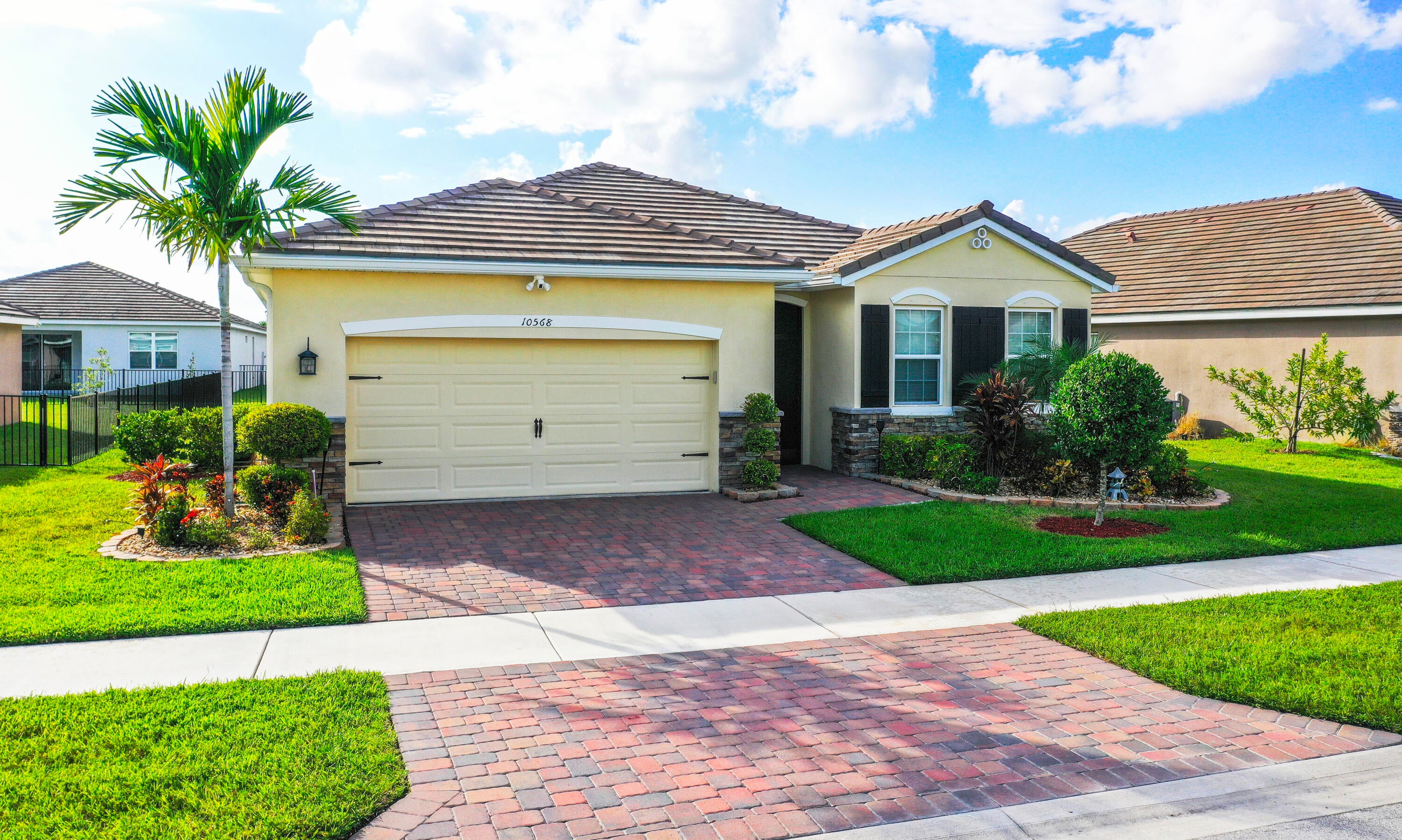 Discover this beautifully cared-for 4-bedroom, 2-bath home in the heart of Tradition--close to everything you need. Inside, you'll find light, neutral tile in the kitchen and living areas paired with cozy carpet in the bedrooms, making it easy to match any style. The kitchen is a true highlight with crisp white cabinetry, stainless steel appliances, granite countertops, and a spacious walk-in pantry. The open-concept living and dining areas are perfect for gathering with family and friends, while the four bedrooms provide plenty of flexibility and privacy. The spacious primary suite features two walk-in closets and a well-appointed bathroom with dual sinks and a tiled shower. A second full bathroom, thoughtfully designed with two linen closets nearby, offers extra storage.Step outside to the lanai, where there's room for both a comfortable seating area and a dining set- ideal for relaxing or entertaining. Located in The Preserve within the Estates of Tradition, this community offers a sparkling pool, sidewalks for leisurely strolls, and a beautiful gated entrance that welcomes you home.