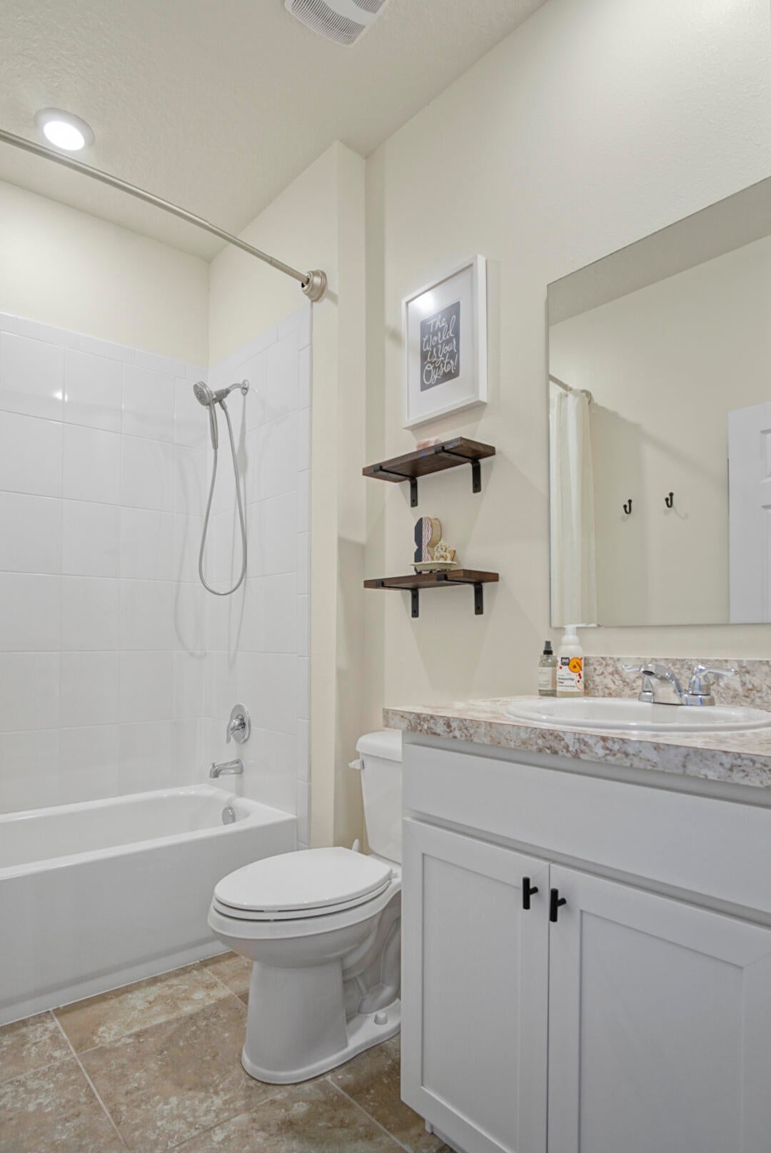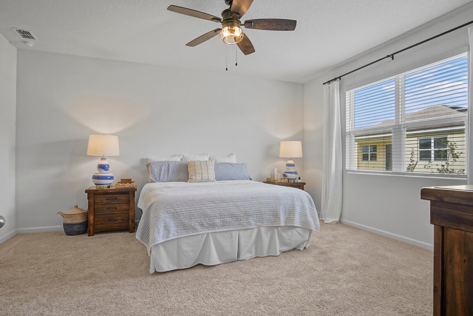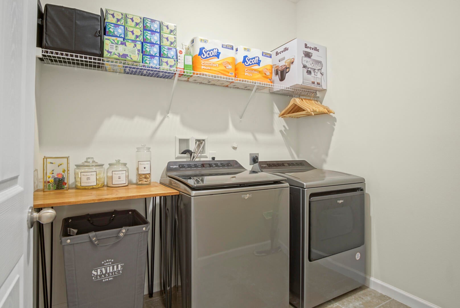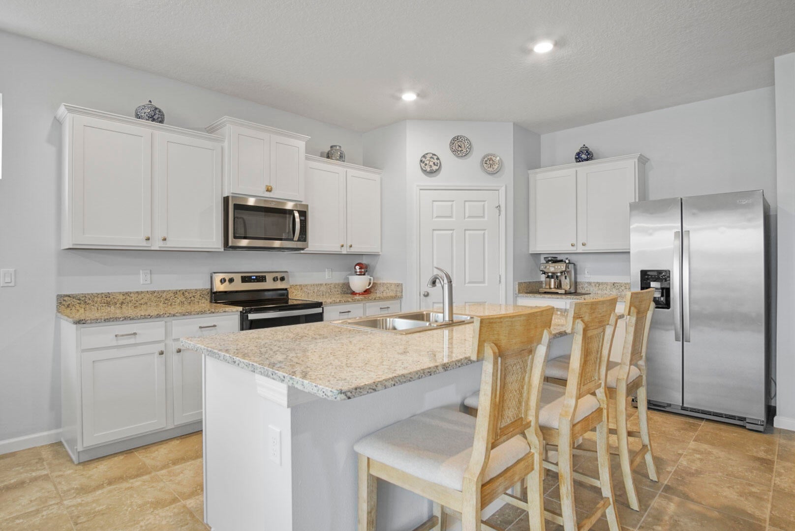 Discover this beautifully cared-for 4-bedroom, 2-bath home in the heart of Tradition--close to everything you need. Inside, you'll find light, neutral tile in the kitchen and living areas paired with cozy carpet in the bedrooms, making it easy to match any style. The kitchen is a true highlight with crisp white cabinetry, stainless steel appliances, granite countertops, and a spacious walk-in pantry. The open-concept living and dining areas are perfect for gathering with family and friends, while the four bedrooms provide plenty of flexibility and privacy. The spacious primary suite features two walk-in closets and a well-appointed bathroom with dual sinks and a tiled shower. A second full bathroom, thoughtfully designed with two linen closets nearby, offers extra storage.Step outside to the lanai, where there's room for both a comfortable seating area and a dining set- ideal for relaxing or entertaining. Located in The Preserve within the Estates of Tradition, this community offers a sparkling pool, sidewalks for leisurely strolls, and a beautiful gated entrance that welcomes you home.