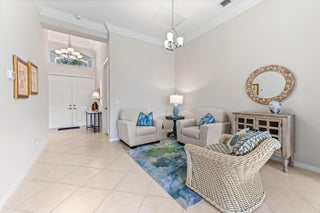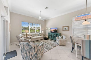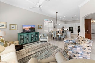 This beautiful residence offers the epitome of the Bellaggio lifestyle, combining modern comfort with stunning water views!Prepare to be captivated by the picturesque, south-facing lake views from this meticulously maintained Novara model. Boasting over 2,000 square feet of air-conditioned living space, this spacious home is bathed in natural light and features high ceilings complemented by elegant crown molding throughout. The entire interior is painted in a light, neutral color, offering a fresh, bright, and move-in-ready feel. Adding to its appeal, the main living areas feature beautiful tile flooring laid on the diagonal, enhancing the expansive, open design.The heart of the home is the updated kitchen, which features stylish 42-inch white cabinetry, quartzite countertops, and newer appliances. Enjoy year-round peace of mind and effortless outdoor living with accordion hurricane shutters on all windows and a recently replaced A/C unit (2022). Step outside to a beautifully expanded, screen enclosure that perfectly frames the serene lake view. The roof has also been recently resealed, securing your investment. Bellaggio is a premier, private, gated 55+ community known for its amazing amenities, including indoor and outdoor pools, a state-of-the-art fitness center, tennis and pickleball courts, and a delightful on-site café.