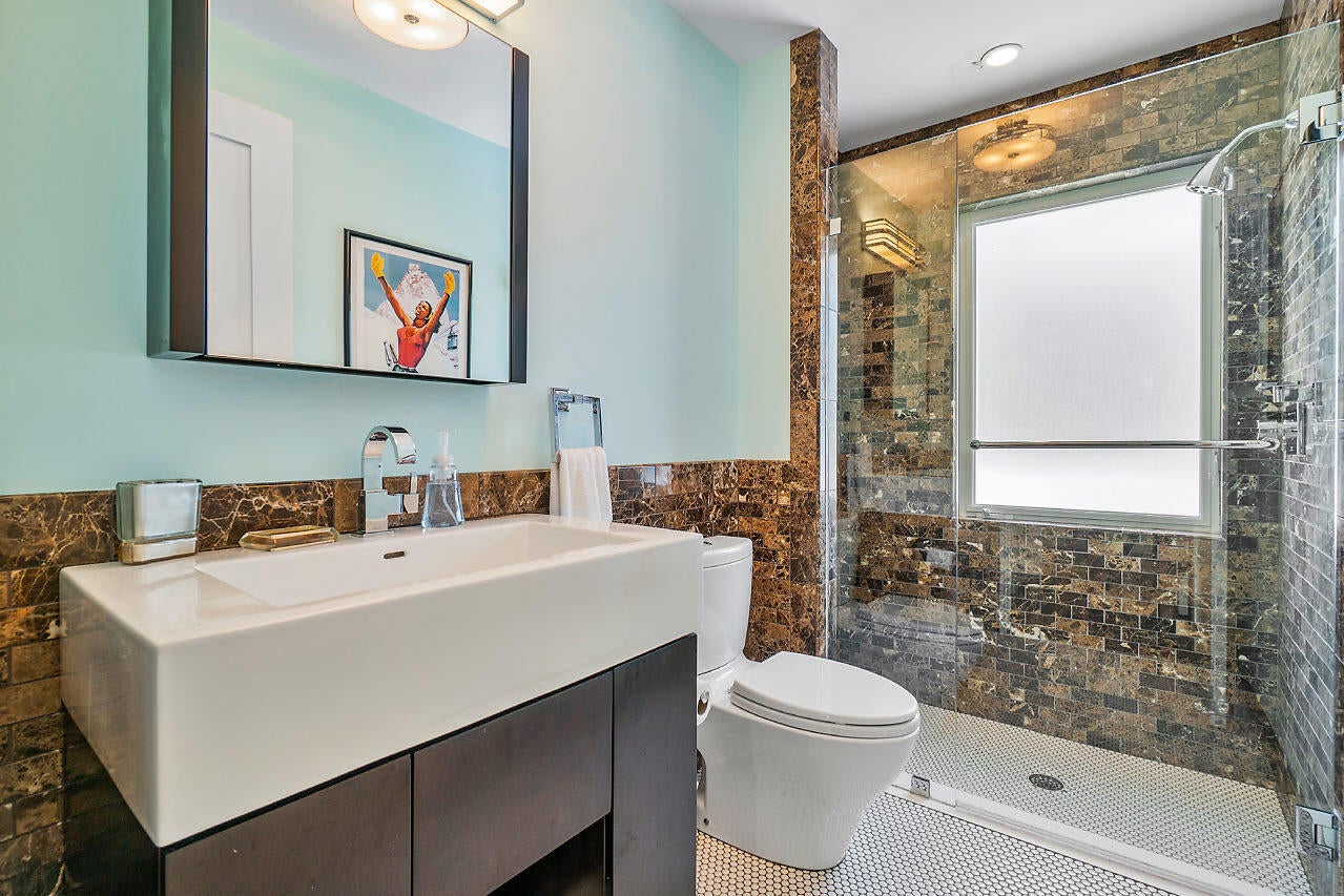 Welcome to the Island's only LEED Platinum-certified ''Green'' home--an architectural Art Deco jewel built in 2013 by Tim Givens and designed by Jacqueline Albarran. This outstanding residence, honored with the Schuler Award for architectural excellence, integrates solar panels, impact glass, and locally sourced materials. Nestled on the sought-after North End of Palm Beach, just two homes from the ocean with beach access, it epitomizes indoor-outdoor living. The home offers three ensuite bedrooms plus a flexible fourth bedroom, den, or yoga studio, along with a great room, open chef's kitchen, covered patio, and upper balconies. Southern exposure enhances the heated pool with swim jets, spa, and summer kitchen. Terrazzo and wood floors, ample closets, sound system & two car garage.