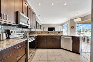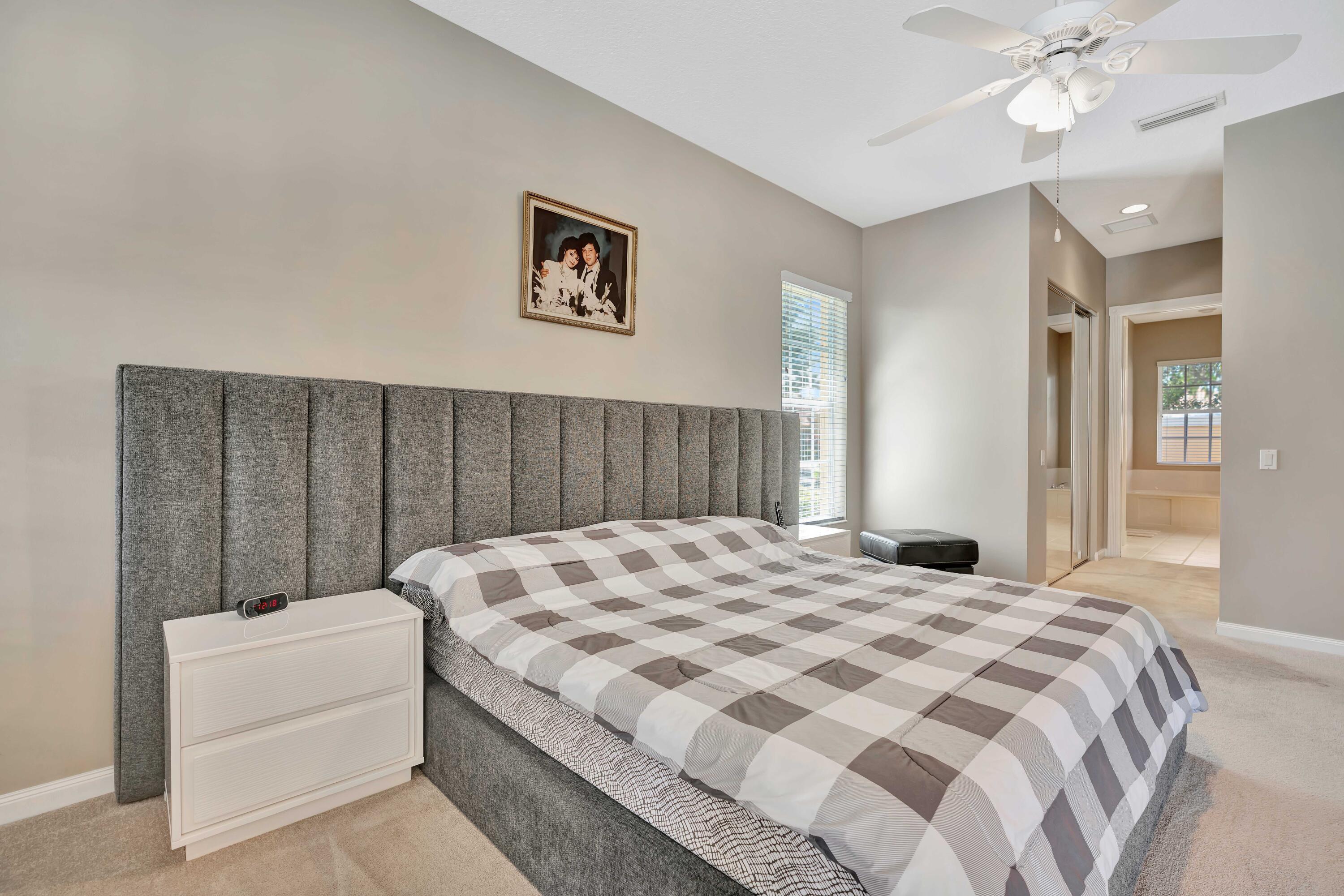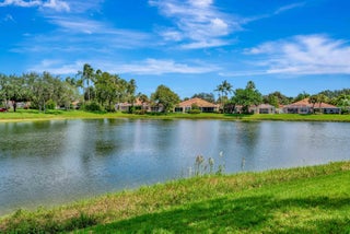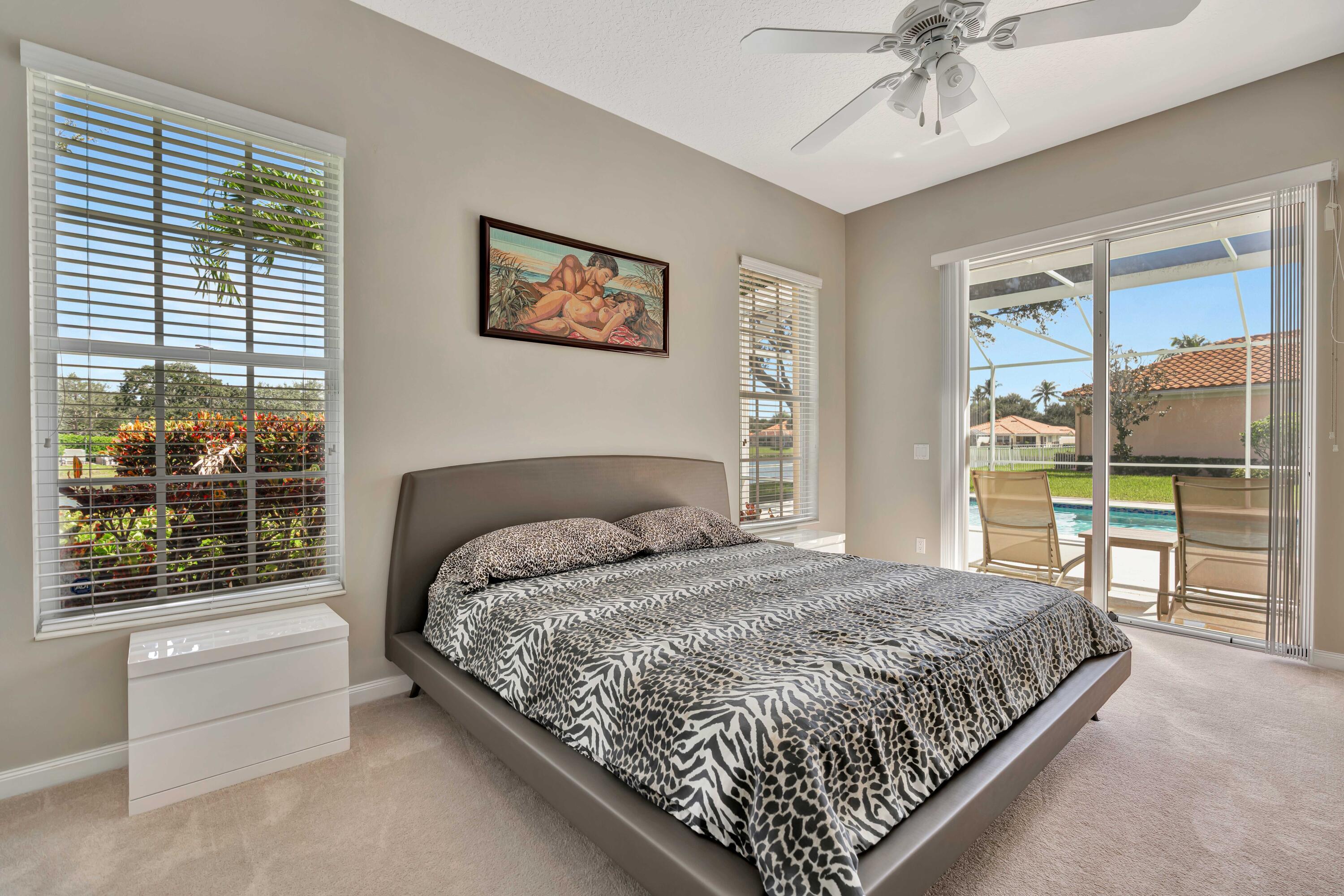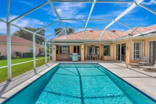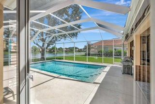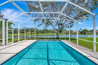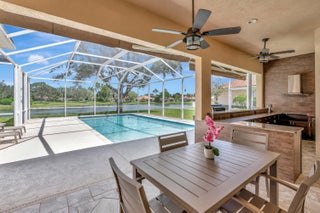 Enjoy your shimmering pool & breathtaking panorama of sparkling lake waters and tropical landscaping that invite moments of quiet reflection or vibrant soirees. Entertain on a 1,600 sqft screened patio featuring a granite outdoor kitchen. Inside, the home exudes timeless charm with airy interiors, soothing hues and adorned with a custom kitchen & stainless steel appliances. Positioned on a tranquil cul-de-sac, this exquisite Windsor-model in Riverwalk boasts 87 ft of waterfront. A custom office ensures productivity, while a pristine garage and space for 6 vehicles. Roof has 5 years useful life. Riverwalk offers resort style amenities as a pet-friendly gated community w/ security, with 12 miles of trails, 3 pools, fitness center, tennis, pickleball, a restaurant, just 7 miles to beaches.Spanning over 12 miles of scenic bridges and trails, residents revel in an active lifestyle with access to three heated pools, a newly renovated fitness center, six Har-Tru lighted tennis courts, four pickleball courts, and professional instruction on-site. Savor culinary delights at the full-service restaurant, engage in bocce, water aerobics, yoga, or join the lively bowling league, all orchestrated by a dedicated activities director. With special events and on-site management, Riverwalk feels like a perpetual vacation, yet remains perfectly positioned just seven miles from pristine beaches, a short drive to Palm Beach International Airport, and moments from the vibrant Rosemary Square, premier shopping, and fine dining. Seamless access to I-95 and the Turnpike ensures effortless connectivity. This immaculate lakefront jewel, poised on its coveted cul-de-sac with mesmerizing water views, is a rare opportunity to claim a dream realized. Step through the gates of Riverwalk, and discover a sanctuary where luxury and leisure converge in perfect harmony. This is more than a homeit's a lifestyle that beckons you to stay forever.