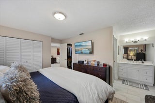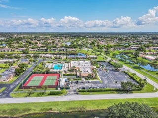 Corner unit with water views and extra natural light! IMPACT WINDOWS. Fully updated with sleek ceramic tile--NO carpet! The kitchen shines with granite counters, white subway tile backsplash, stainless LG appliances, and a pass-through to the dining area. Bright living space is ideal for relaxing or hosting. Both bathrooms are stylish and spotless. Screened balcony overlooks the water--perfect morning spot. Walk to clubhouse, pool, and more! Guard-gated 55+ community offers a cafe, gym, tennis, sauna, heated pool, hot tub, and year-round activities. One pet allowed, up to 30 lbs. Furnished by a professional designer--all furnishings negotiable. Best unit in Golden Lakes! Don't miss it!