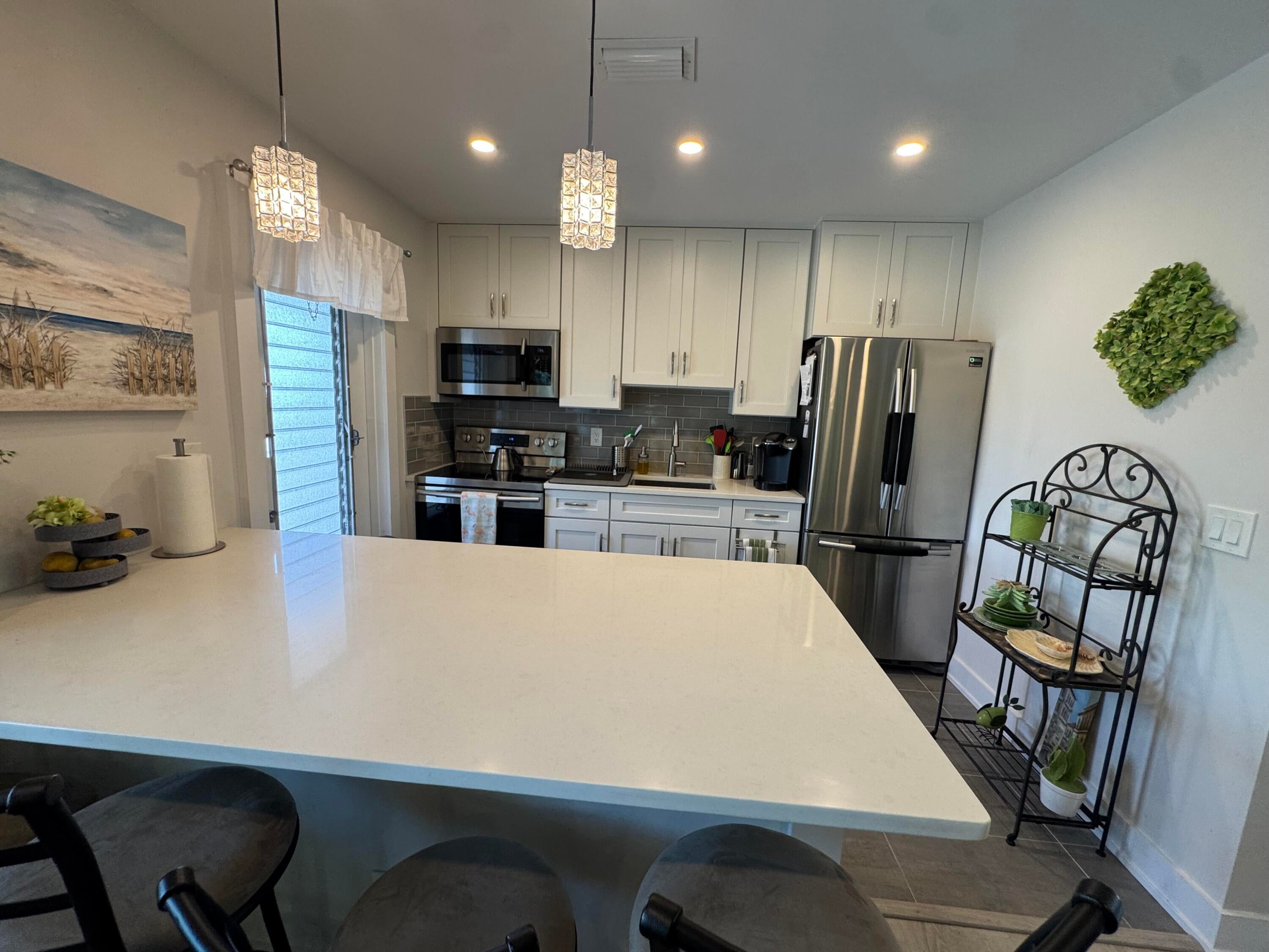 Welcome to your dream beach residence in the charming community of Ocean Ridge! Available for 2026 Season. This inviting second floor unit is a tastefully remodeled 1 bedroom, 2 bath layout featuring exquisite designer finishes and new furnishings for a modern and luxurious touch. The beautiful white kitchen is equipped with granite countertops and stainless appliances, making it a chef's delight. As an end unit, you'll relish the added privacy and tranquility that comes with this prime location. Immerse yourself in the resort-like atmosphere with the community pool and clubhouse conveniently located just across from your doorstep. But the allure doesn't stop there - indulge in the exclusive luxury of a private beach and gazebo reserved solely for residents. Just a short stroll to the Ocean this residence offers the perfect blend of comfort, elegance, and seaside charm. Experience the best of beach living in Ocean Ridge, where every day feels like a vacation.