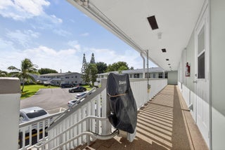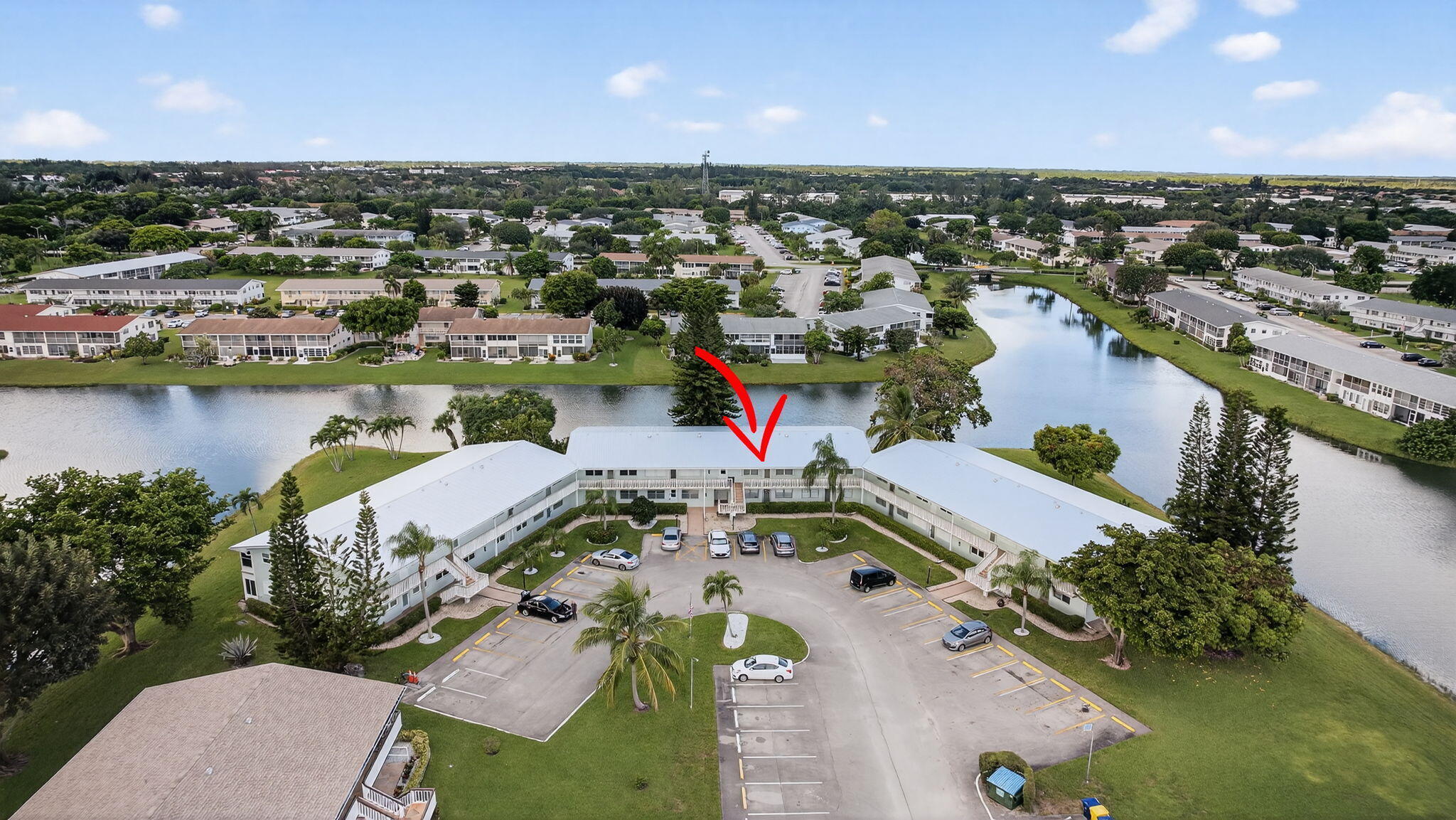 If you love the resort lifestyle, don't miss this light & bright 2 bed/2 bath 2nd-floor condo in Century Village(55+). Enjoy stunning water views from the large balcony off both bedrooms. Located in the desirable Somerset section near the pool & tennis courts, with a newer roof & strong reserves. Features include diagonal white tile throughout, white kitchen & bath cabinets, roomy closets, and laundry right outside your door. Assigned parking plus plenty of guest spots & community bus service. The main clubhouse offers a theater, indoor & outdoor pools, fitness center with classes, tennis, pickleball, bocce, clubs & more. Two guarded gates, 24-hr security patrol, and hurricane shutters add peace of mind. Centrally located near shops, dining, airport, beaches & downtown.