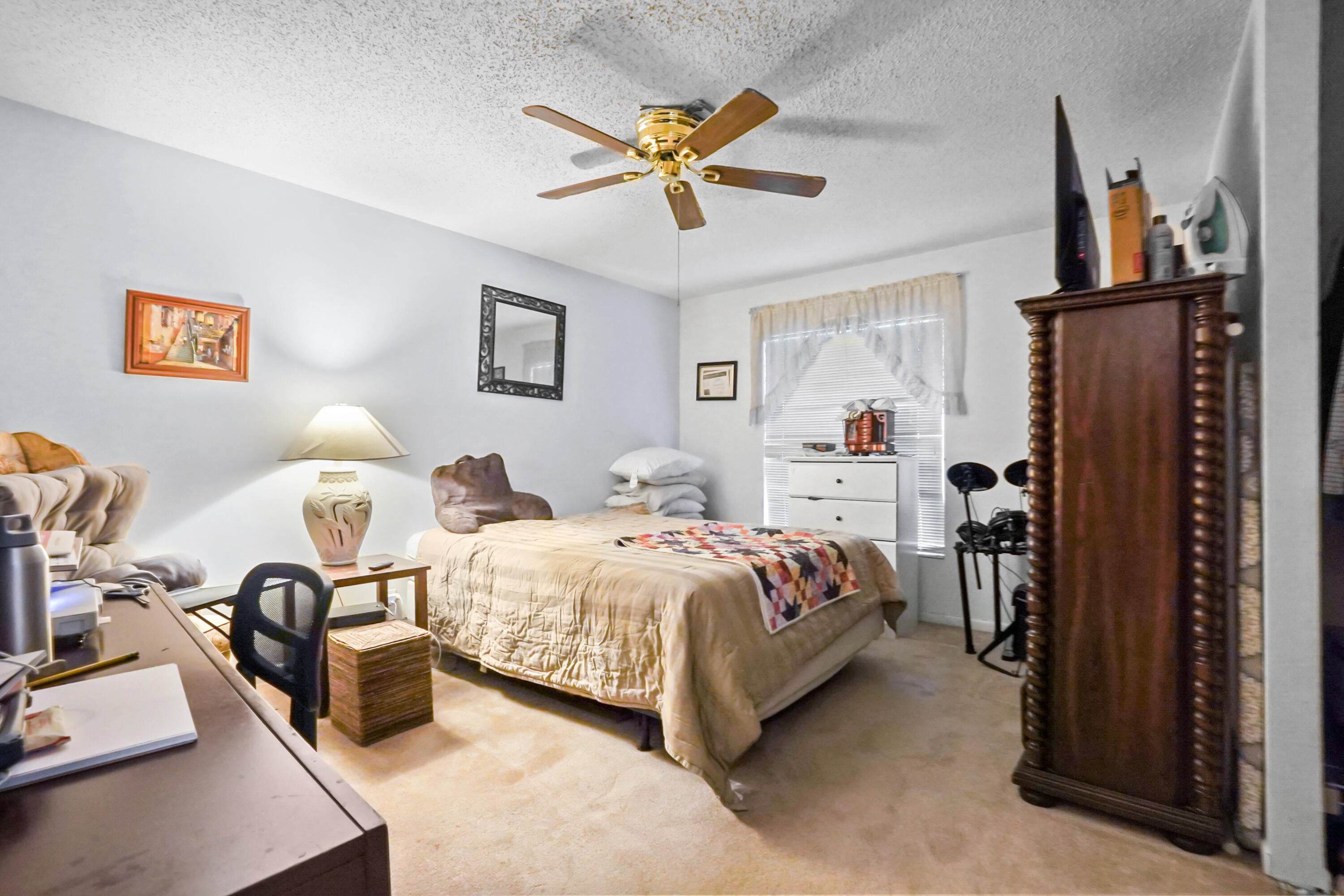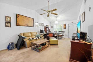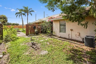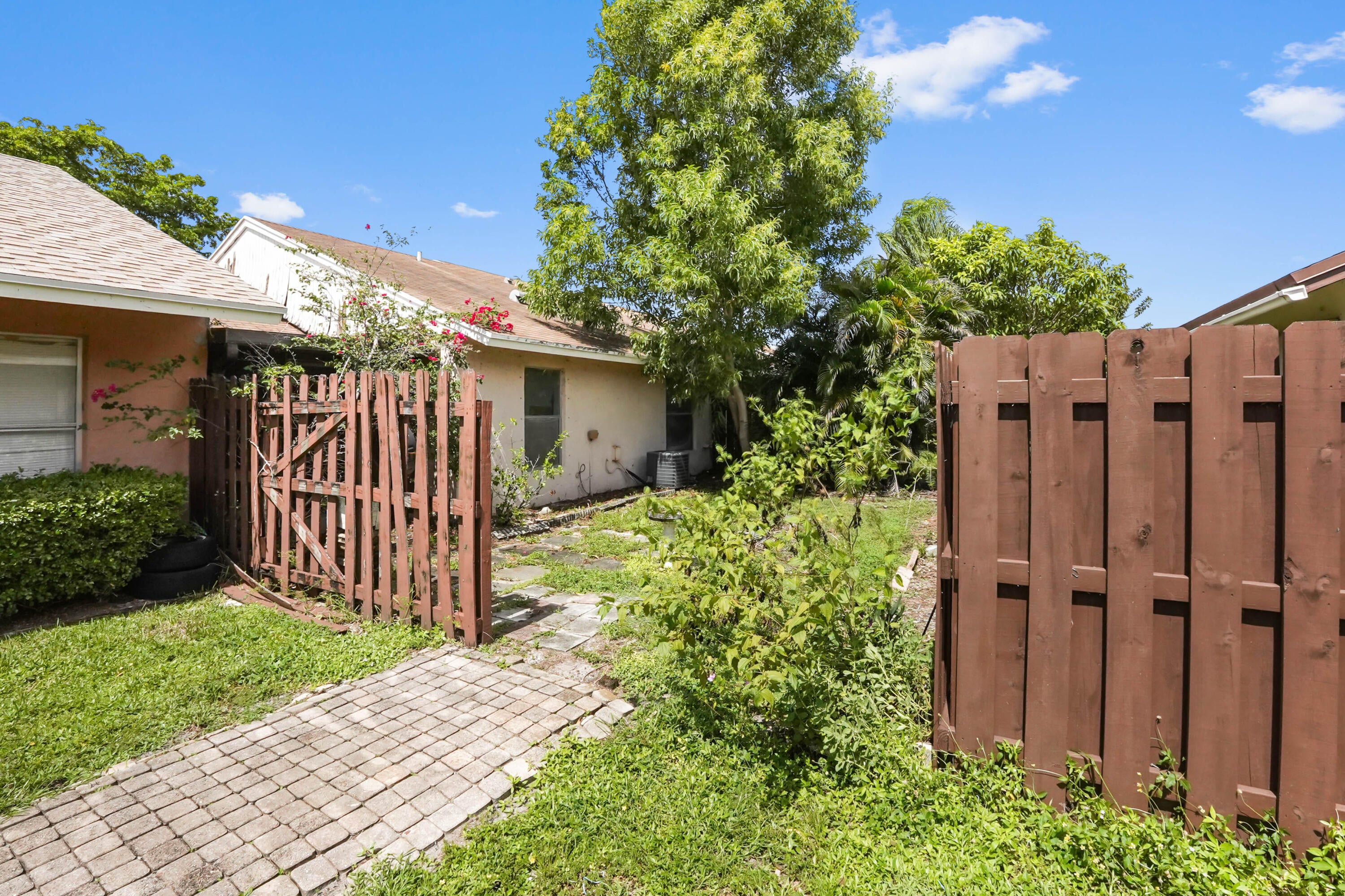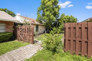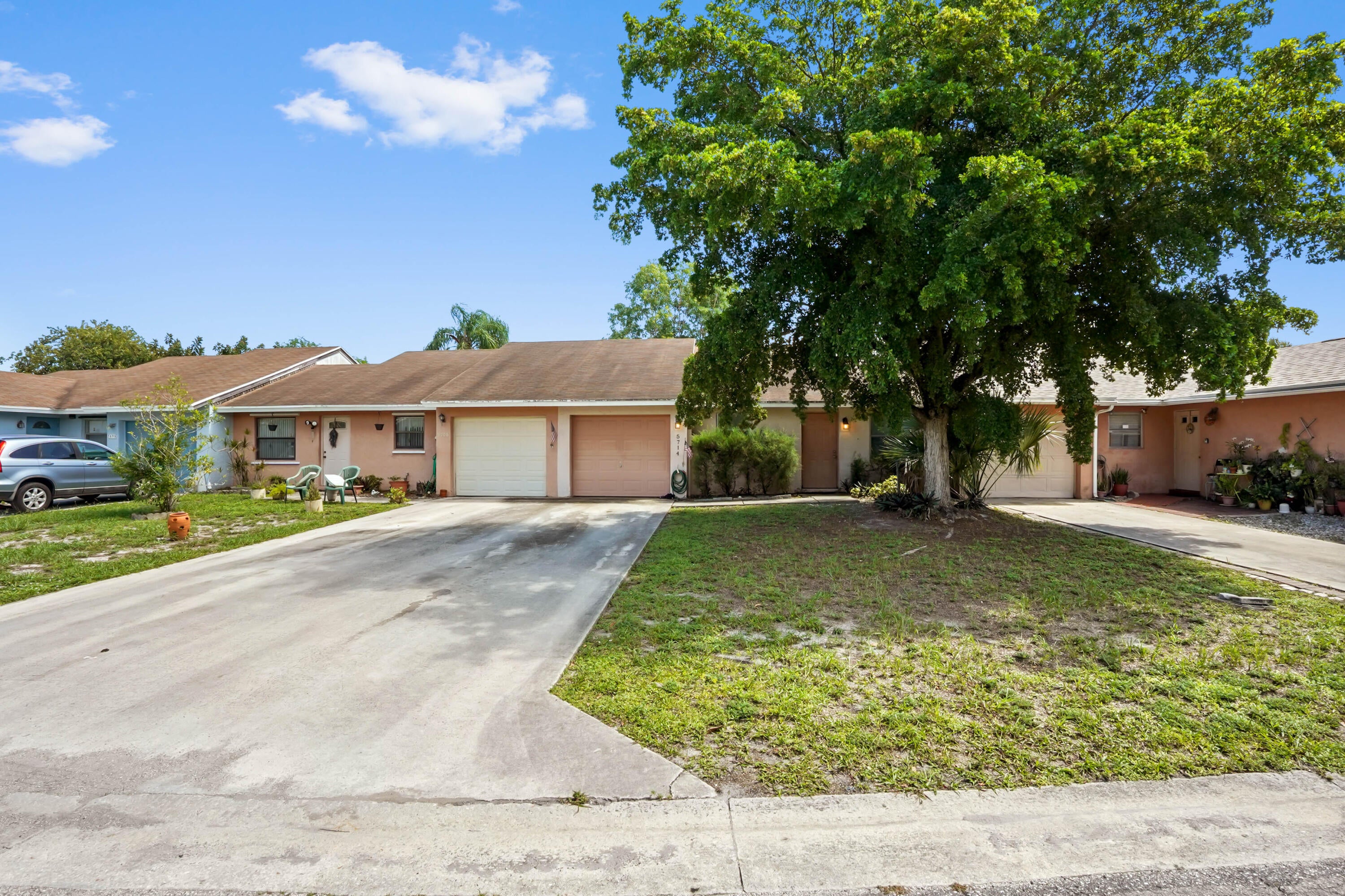 Welcome to this charming single-story villa, perfectly situated in a desirable neighborhood in Lake Worth, FL. The residence offers an incredibly spacious feel, immediately welcoming you with a vaulted ceilings that soar above the open-concept living and dining areas. This highly functional floor plan is bathed in natural light, creating a bright and airy atmosphere. The kitchen is functional and ready for use, featuring light, cream-colored cabinetry and a tiled floor, providing a fantastic opportunity for a buyer to easily customize and modernize their dream space.The bedrooms are generously sized and bright, each equipped with a ceiling fan for comfort and carpet flooring. Step outside to discover your own private, fenced-in tropical sanctuary. It features a private brick-paver patio/grilling area, perfect for al fresco dining and entertaining. This home's prime location in Lake Worth combines the tranquility of a quiet neighborhood with unbeatable access to local shopping, dining, and parks. This is a rare chance to purchase a home with great bones, a fantastic layout, and the freedom to customize every detail.