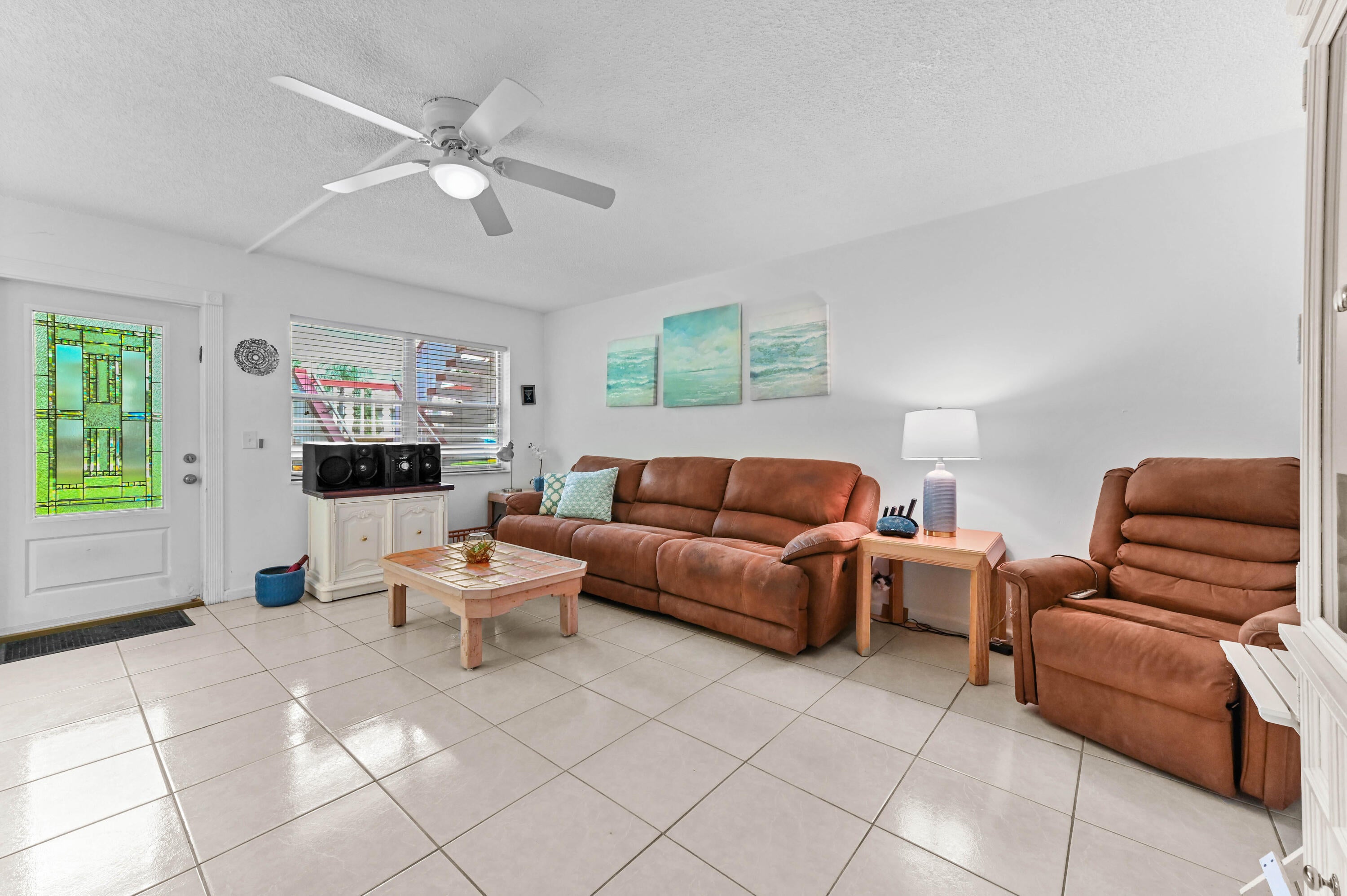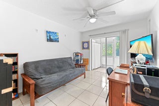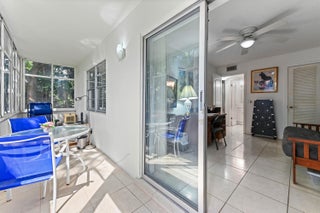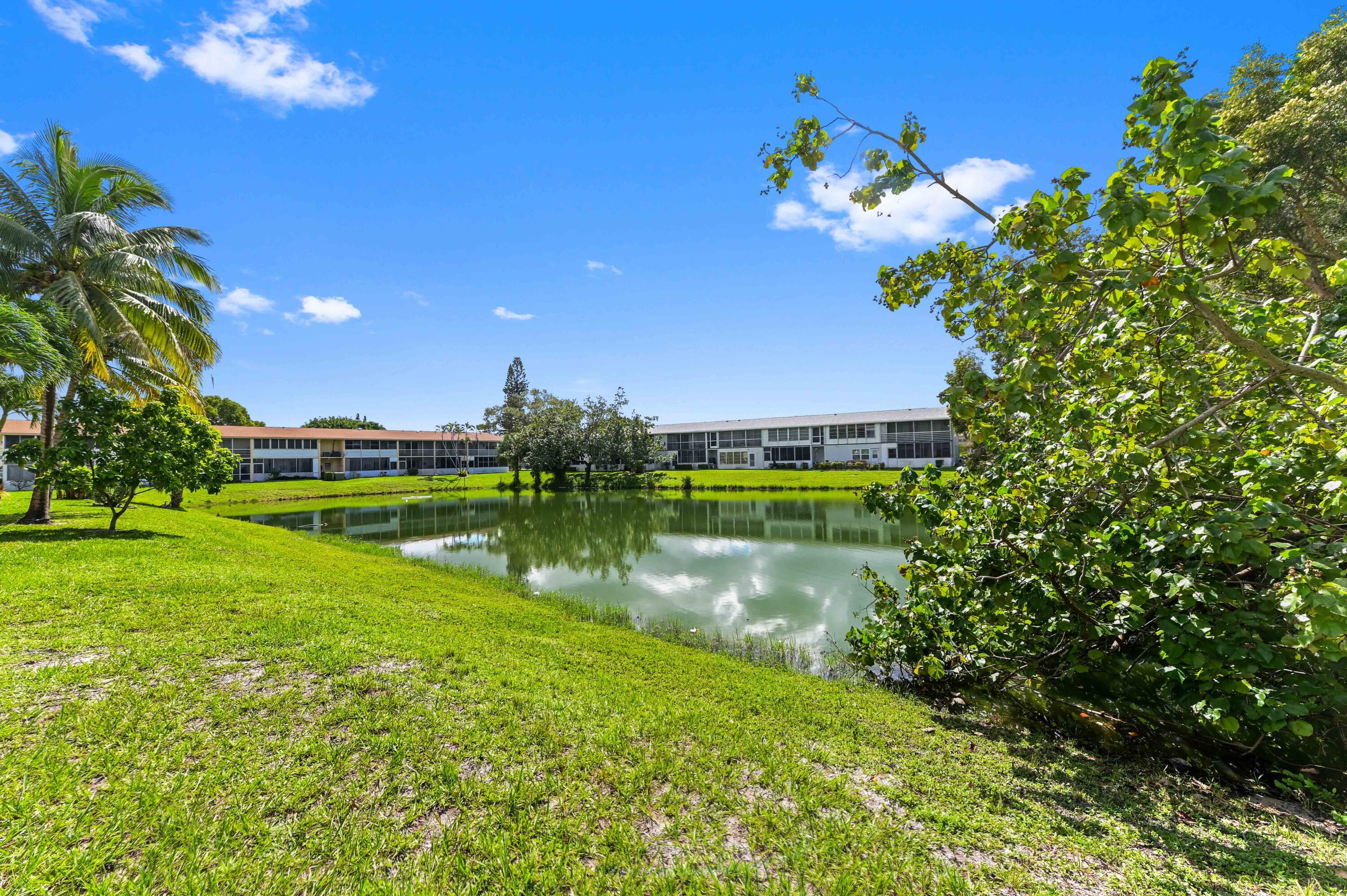 Welcome to this first floor corner unit that features a bright and cozy living space with neutral tile flooring, leading seamlessly into the main areas. The kitchen is a standout, with warm wood shaker-style cabinets, rich granite countertops, and sleek stainless steel appliances, including a microwave and range. The master suite offers a luxurious sanctuary, distinguished by its rich, dark wood-style flooring and a spacious closet space.This home's greatest feature is its serene outdoor connection. A dedicated, all-season Florida Room is fully screened and enclosed, providing a true indoor-outdoor space with tile flooring and tranquil water views of the community lake. Directly outside, the unit benefits from a private, shaded rear yard, framed by trees, which offers a secluded spot for grilling or quiet contemplation right by the water's edge. This low-maintenance residence provides a fantastic blend of high-value interior updates and a peaceful, private, waterfront setting.