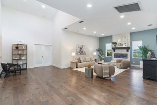 The WOW Factor Starts the Moment You Walk In! A quiet tree-lined street welcomes you home! Step inside and be amazed by the 60-foot open sightline stretching seamlessly from the living room through the huge dining area and into the stunning new kitchen featuring shaker cabinetry, quartz counters, a center island, peninsula w/seating, and stainless appliances. French doors lead you to a private pie-shaped .32-acre yard with a free-form pool and plenty of green space to relax, play, or entertain. Gorgeous new hardwood floors flow throughout, paired with all-new lighting, hardware, and fixtures. Enjoy even more space to spread out in the large family/bonus room, highlighted by two sets of French doors opening to the backyard oasis.