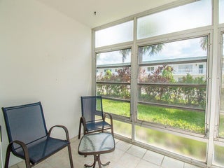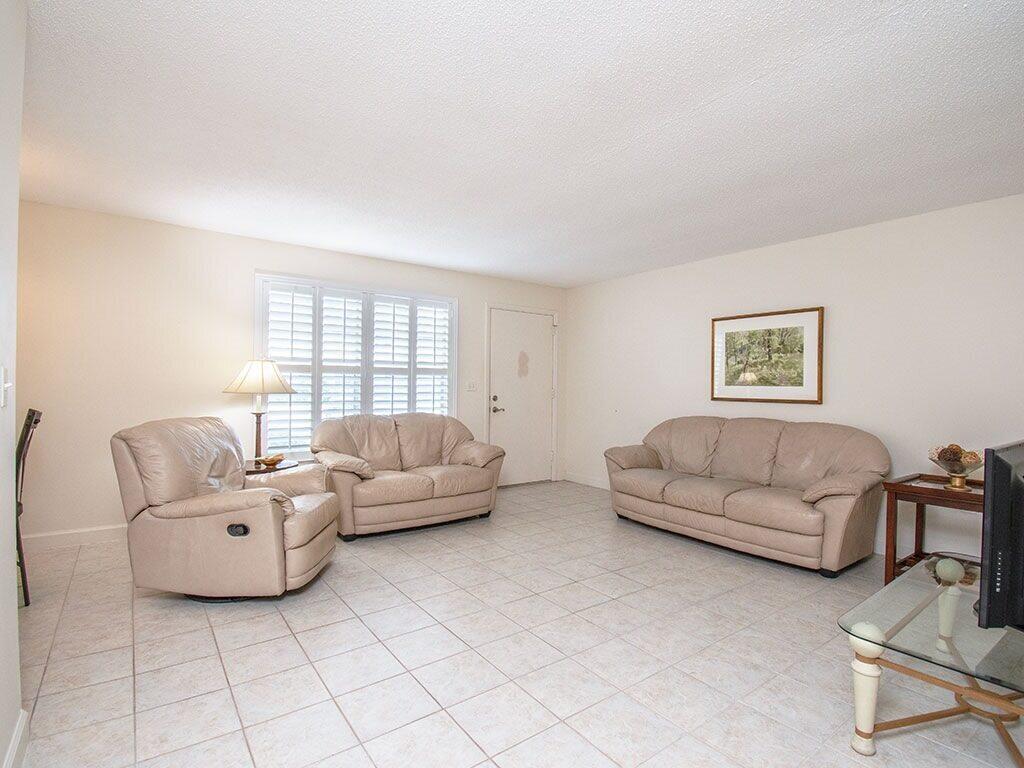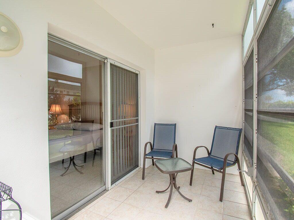 Immaculate, Bright Corner, 1st Floor 2/2 with tile for easy care. Furnished and ready for season or update and make it your coastal paradise. White kitchen, large closets, Primary features a walk in shower. Condo fee covers Master insurance, water, sewer,trash and ammenities like pool, bocce, community gas grills and a relaxing lagoon view. Porch has windows for bonus living area. Walking distance to Miracle Mile, Royal Palm Pointe for dining and shops and stroll over the bridge to the best of Vero's island restaurants and stores. Walkability score is A+. Well managed association. Lot's of interest so hurry before the snowbirds gobble this well priced, move in ready condo.
