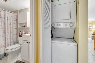 Spacious and Bright two bedroom, two bath condo in Ocean Ridge nestled in between the ocean and the intracoastal. Move in condition with a split floor plan. Interior upgrades include a newer kitchen, stainless steel appliances, granite counter tops,16''floor tile throughout living areas. Washer dryer inside the unit. Well maintained active adult community includes deeded private beach access, clubhouse facilities with exercise rooms and billiards and ping pong table. Large, heated pool, shared dockage. Laundry facilities, shuffleboard, BBQ area and bike storage. This building has a brand-new metal roof! Walk to local shops and restaurants. 55+