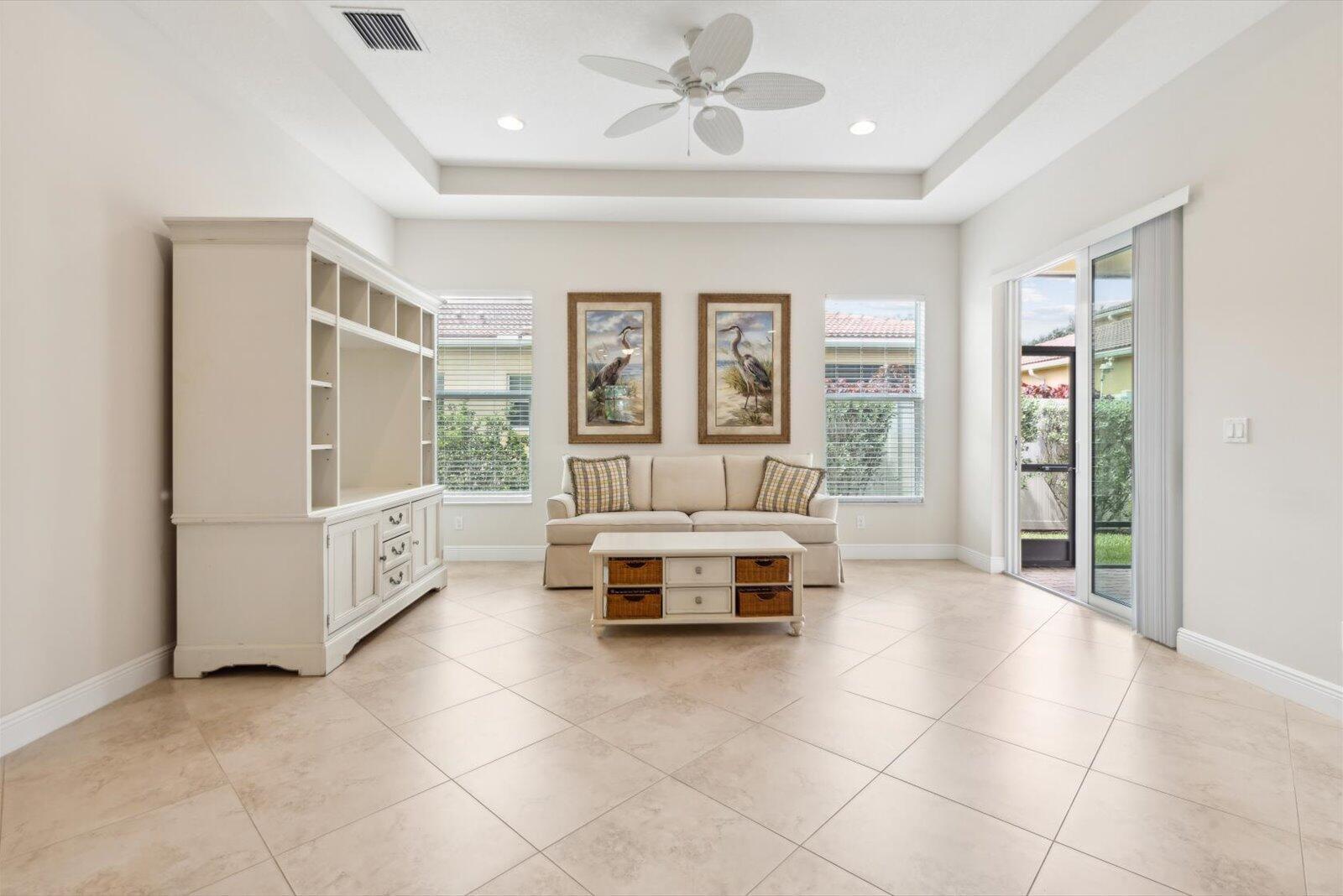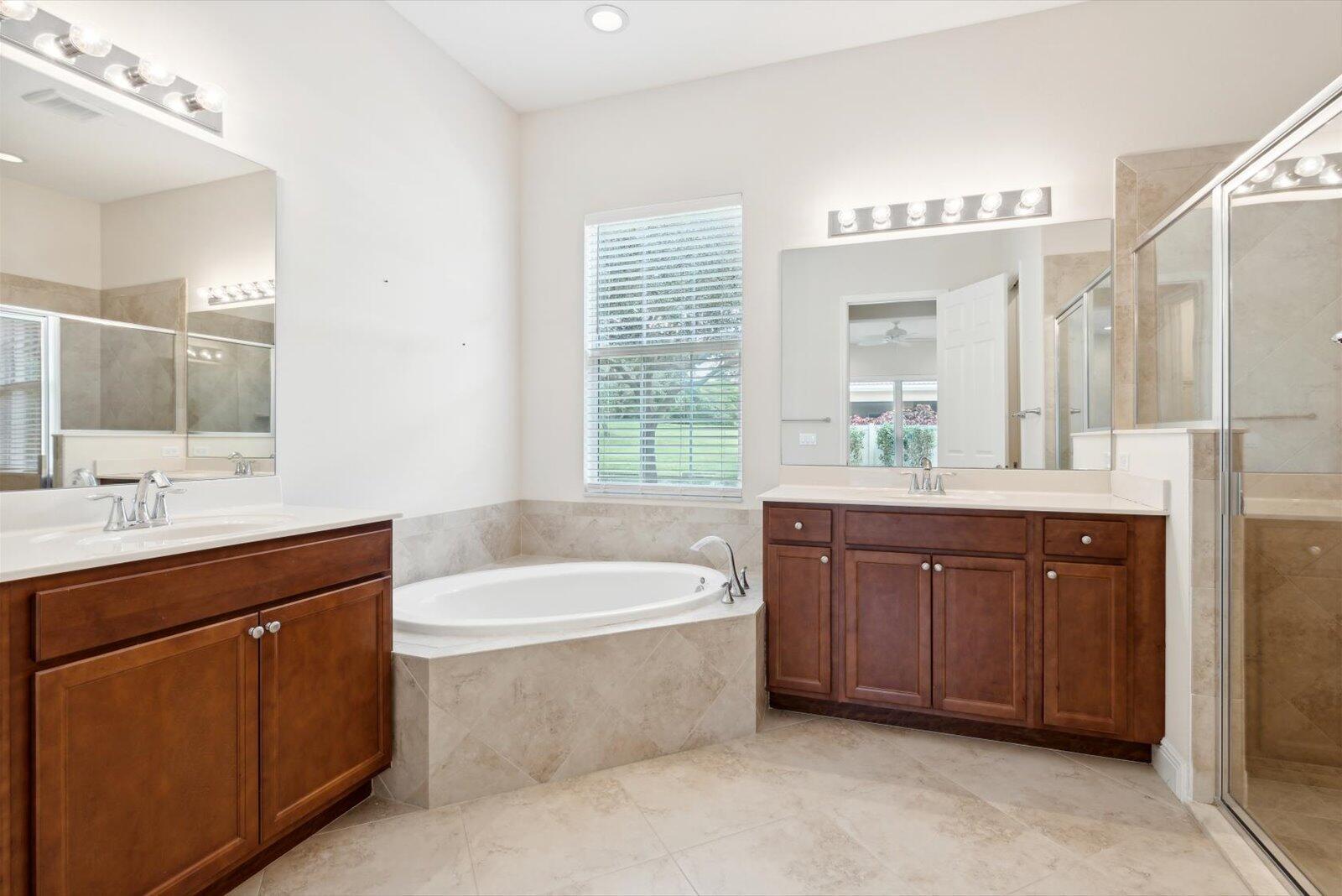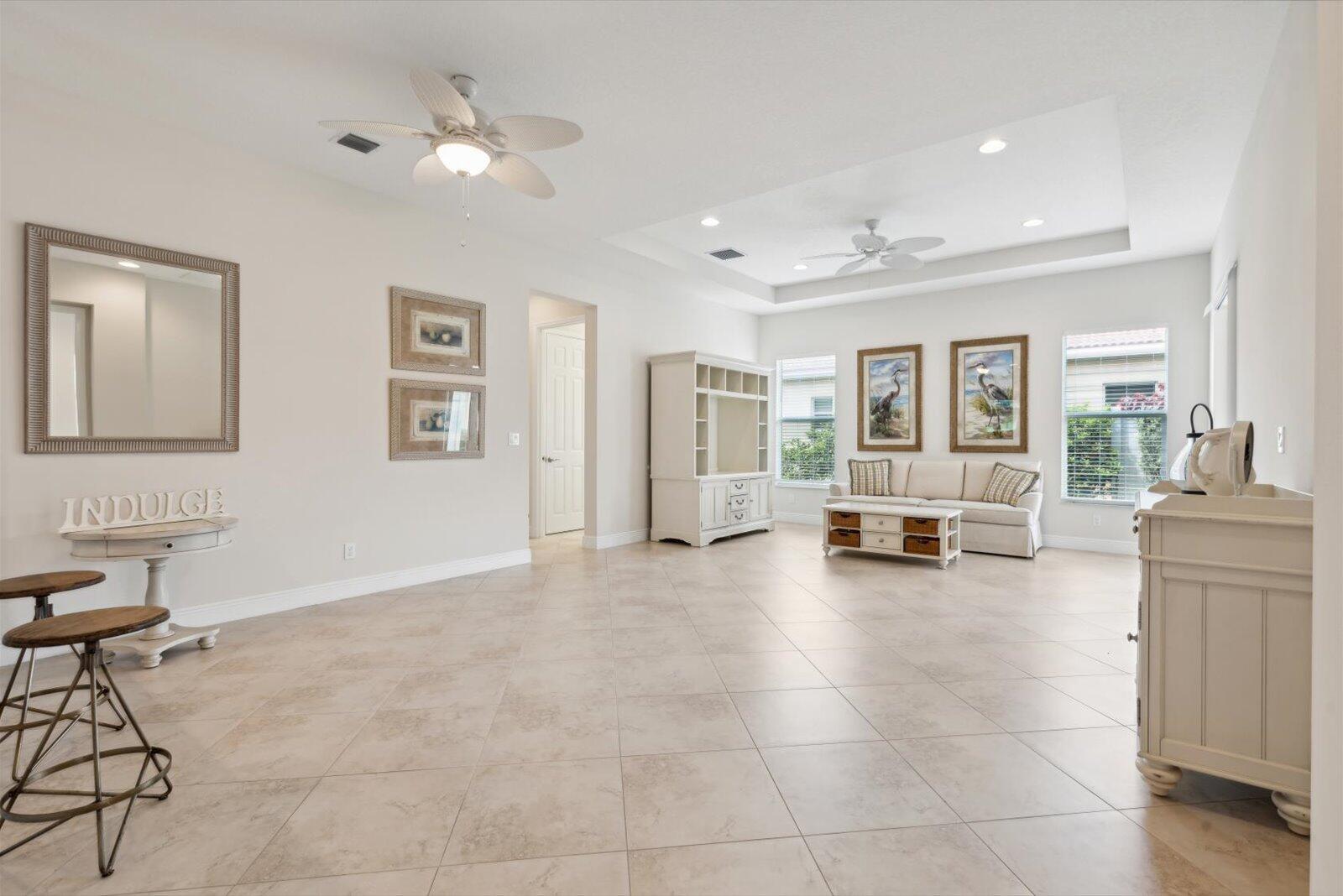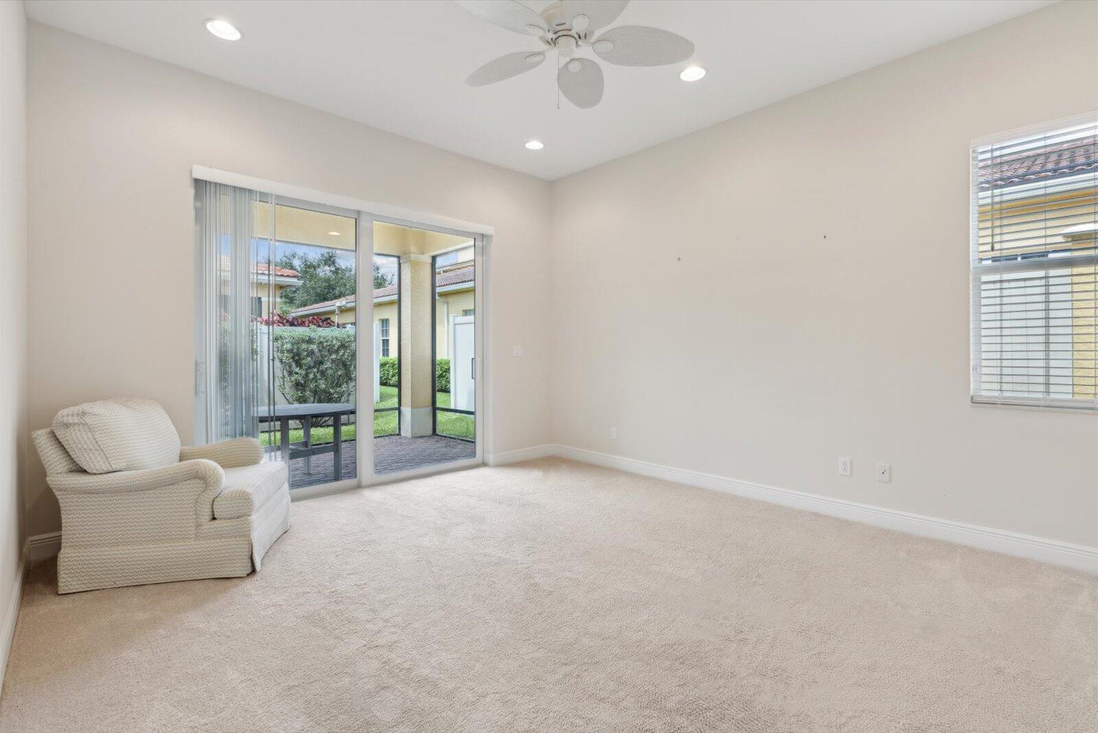 Beautiful 2-bedroom, 2-bath townhouse located in the prestigious PGA VERANO golf community in Port St. Lucie. Features of this home a modern kitchen with granite countertops, stainless steel appliances include refrigerator, range, microwave and dishwasher. Ceramic tile in main areas, and a spacious master bathroom with dual vanities and a soaking tub. Screened patio offering the ultimate outdoor living experience and enjoy relaxing lake views from the front. Well-maintained association offers on-site amenities which include a state-of-the-art Fitness Center, yoga room, sauna, indoor Junior Olympic Pool, resort-style pool, and vibrant Social Center. Close to shopping, dining, and beaches, this gated haven epitomizes luxury living.