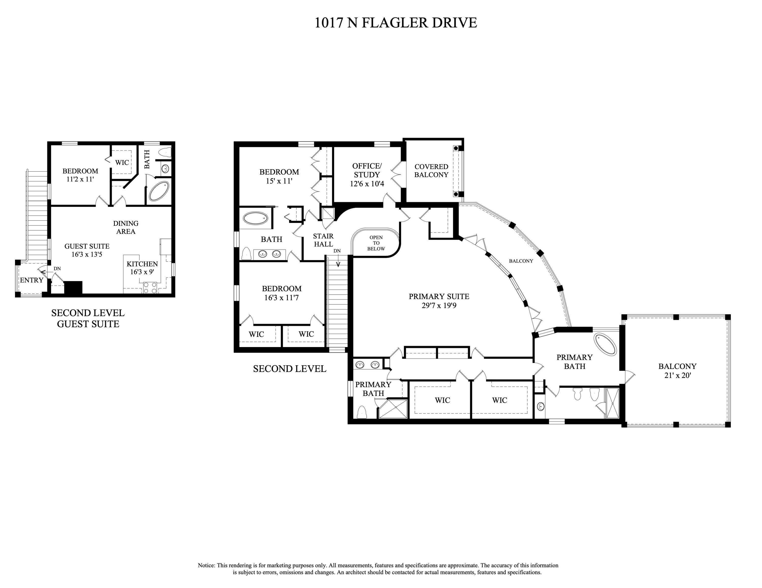 Waterfront Mediterranean home with fabulous water views of Palm Beach Island. This is a prime location near the new NORA entertainment district in West Palm Beach. This spectacular 6 bedroom, 6.1 bath residence and guest house has a spacious open plan, a luxury kitchen with a 6-burner gas stove, wine room, bar area with wine refrigeration & ice maker, dining area with fireplace, two offices/dens, & a full laundry room. The water-view Primary bedroom has a fireplace & two baths. With a luxurious pool area, several patios, & balconies the house provides an indoor/outdoor lifestyle. Includes a 1-bedroom, 1-bath guest house with a full kitchen & 2-car garage. A spectacular location across from the Palm Beach Yacht Club and close to NORAwpb, fine dining, luxury shops, marinas, & bike path.