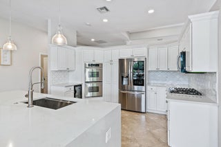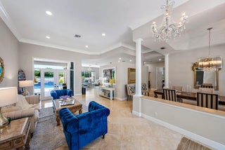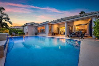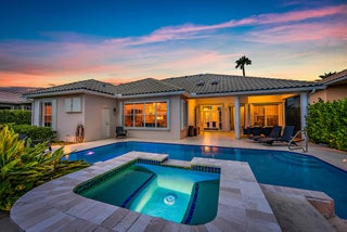 Live the fabulous Ibis lifestyle ON THE WATER with one of the longest water views in Ibis Lakes! This renovated 2800 sq ft home is move in perfect, fully loaded with upgrades and renovations. Boasting a, 2015 ROOF, two NEW AC's (six months old) and Impact Glass and Accordian Shutters protecting the home, this home has been beautifully upgraded so you can simply move in and enjoy the fabulous Ibis lifestyle--on the water! This 3BR/3BA+Den lakefront home features a prime location in Ibis--adjacent to both the front and gate and club amenities. Enjoy a rare and spacious 3-CAR GARAGE with brand new garage openers. Oversized 18'' Saturnia marble flooring, set on the diagonal is timeless and luxurious. Enjoy volume ceilings and a versatile floor plan with large, open rooms, and an abundance...of windows overlooking picturesque water views. A remodeled kitchen sits in the heart of this home featuring an oversized waterfall island, quartz countertops and new appliances. Enjoy an expansive primary suite with custom closets & a stunning newly designed bathroom, giving a spa-like feel! All new state of the art landscape lighting creates an inviting & tropical ambiance that is sure to impress! The recently resurfaced pool and spa, and the dynamic water views provides an incredible setting for outdoor entertaining and everyday Florida living! The den can easily work as a fourth bedroom. The Club at Ibis boasts 54 holes of Championship Nicklaus Golf, a state-of-the art tennis/pickleball and sports complex, Spa, and five restaurants.