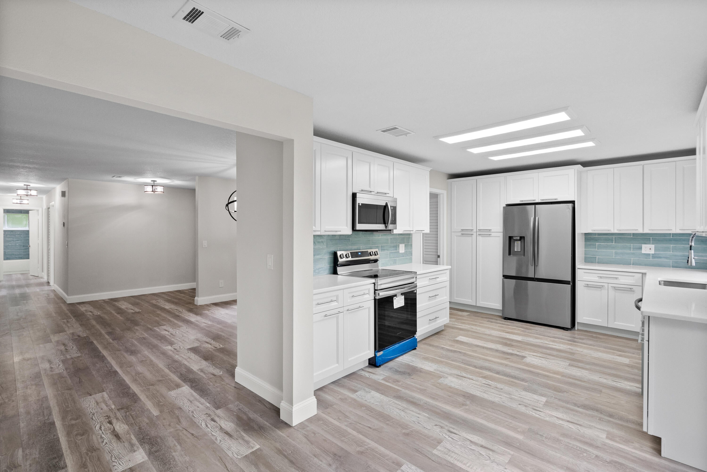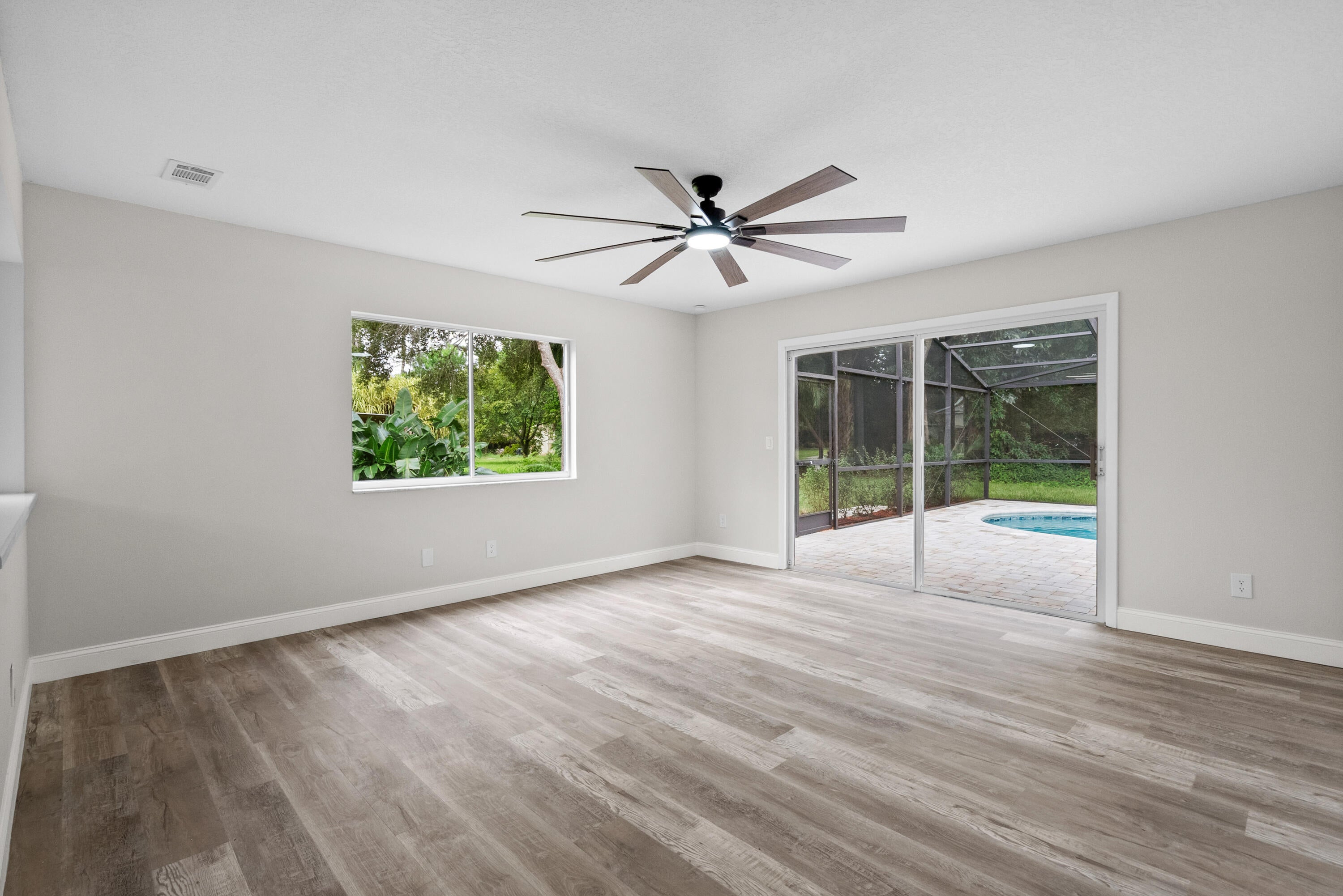 Beautifully updated 3 bed, 2 bath, 2-car garage home boasts countless upgrades and sits on a very private .44 acres! Enjoy peace of mind with a 2021 roof and fresh paint inside and out. Step into a stunning new kitchen featuring quartz countertops, soft-close cabinets, and stainless steel appliances. The open main living area boasts new luxury vinyl plank flooring, while both bathrooms are fully remodeled with new tile, cabinetry, and countertops--master bath includes a frameless glass shower. Relax in your resurfaced pool with diamond brite finish, new tile, and a pavered deck--perfect for entertaining. New fans and fixtures throughout. Move-in ready with modern finishes and timeless style!