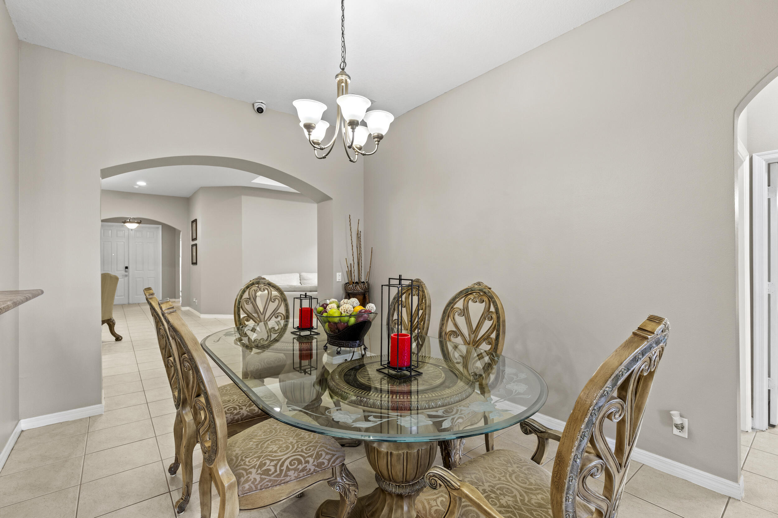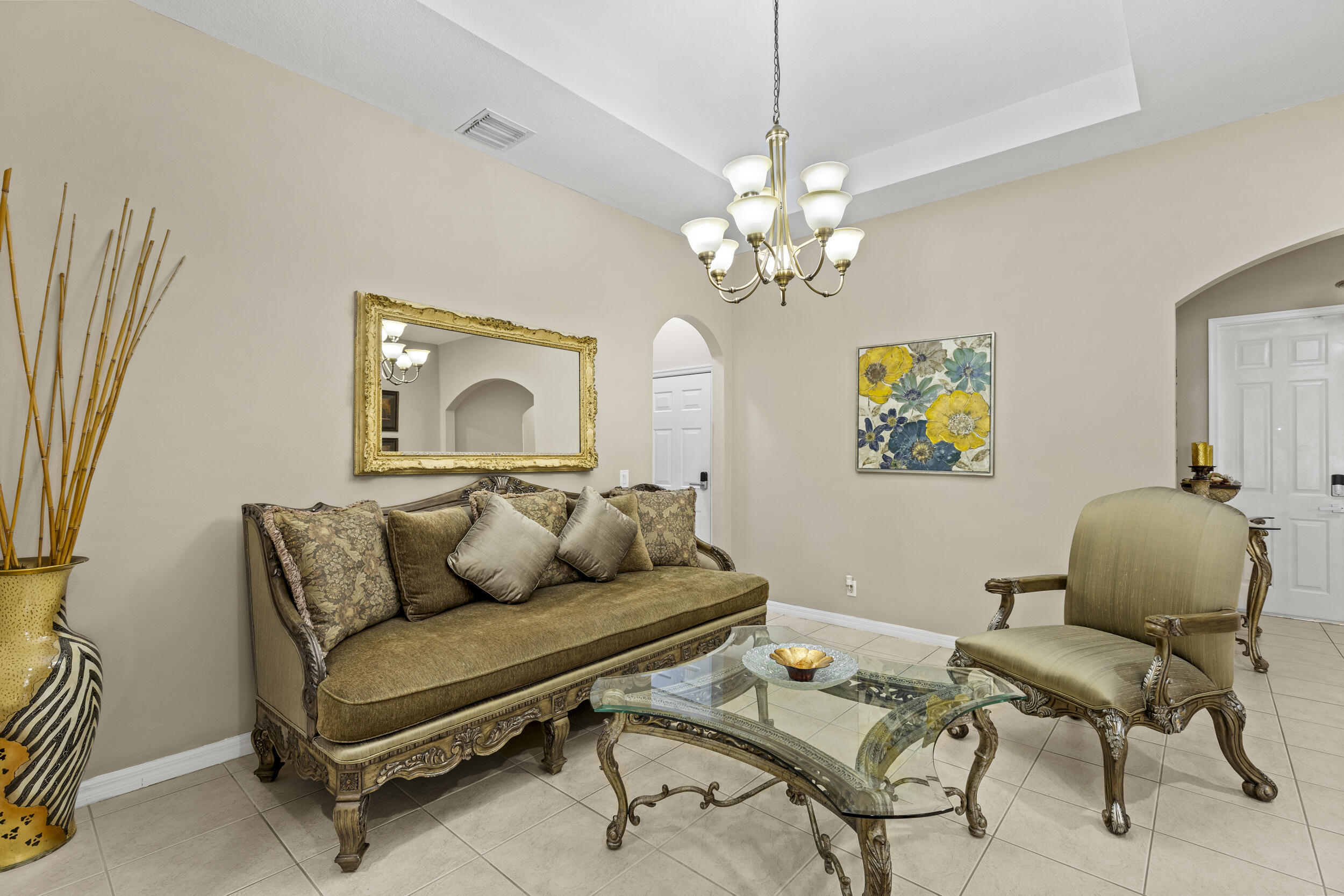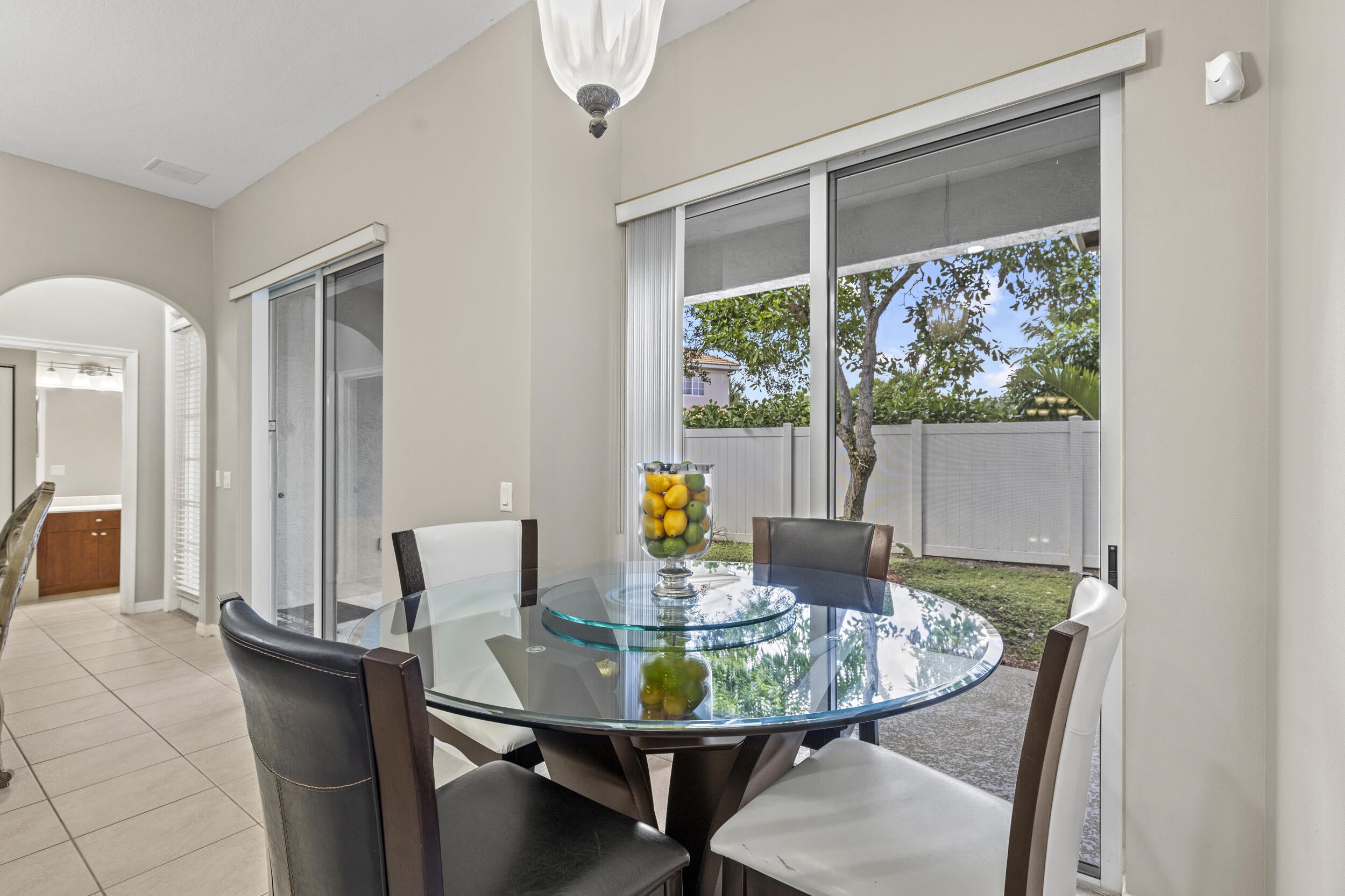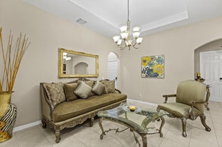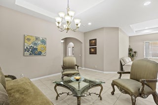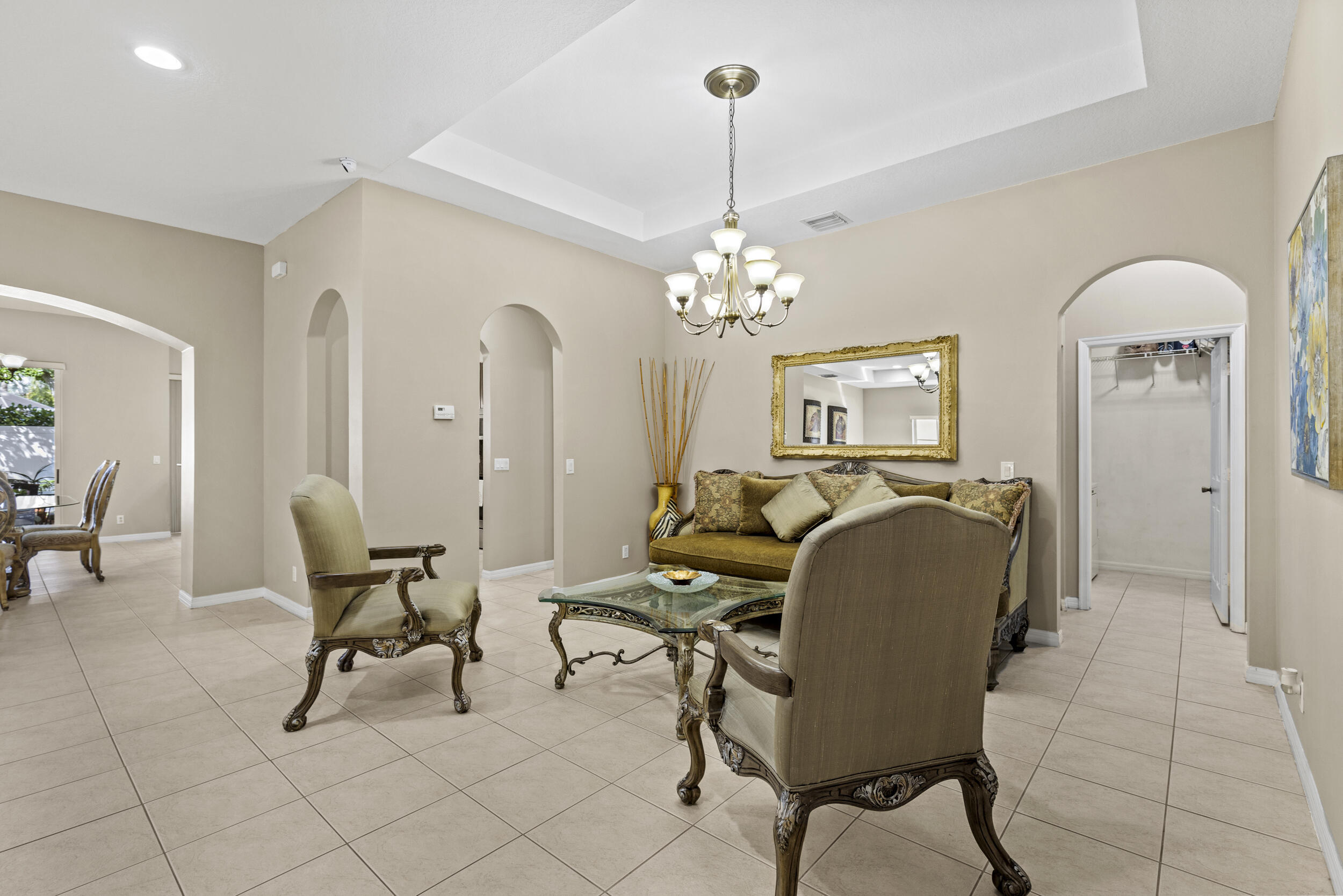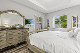 Immaculate move in condition 4 bedroom 3 bath one story home. Large open and flexible living areas plus an open eat in kitchen with a breakfast bar. 3 way split bedroom plan. High ceilings throughout. Primary bedroom has 2 walk in closets, a tray ceiling, plus access to the covered patio. Primary bathroom has a large soaking tub, separate shower, double sinks and a linen closet. Inside utility room with full size washer and dryer. Double door front entry into a spacious foyer. Paver driveway and a 2 car garage with high ceilings for lots of storage. Sidewalks throughout this guard gated neighborhood.Lots of activities at the community clubhouse for all ages. Tennis, pickleball, pool, fitness, playground, ping pong, billiards, cards, banquet hall with a kitchen and management on site.Great location just north of Okeechobee, close to world class shopping and dining, easy access to Turnpike, convenient to Palm Beach International airport. Photos coming soon!