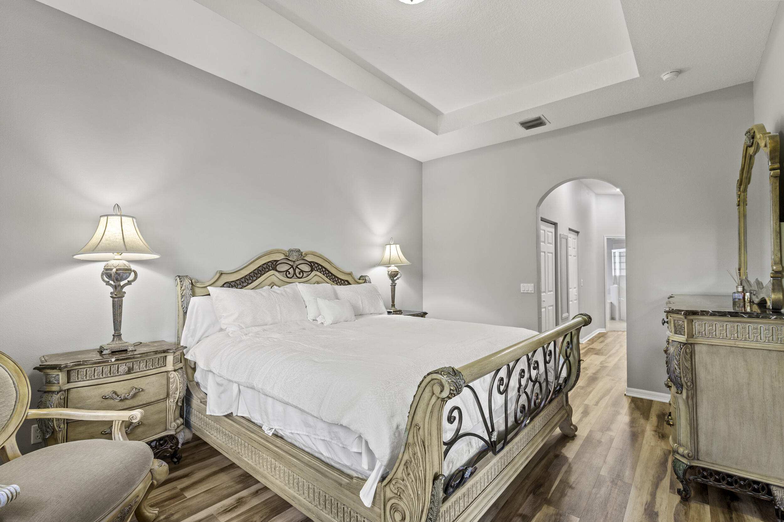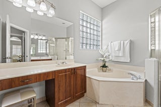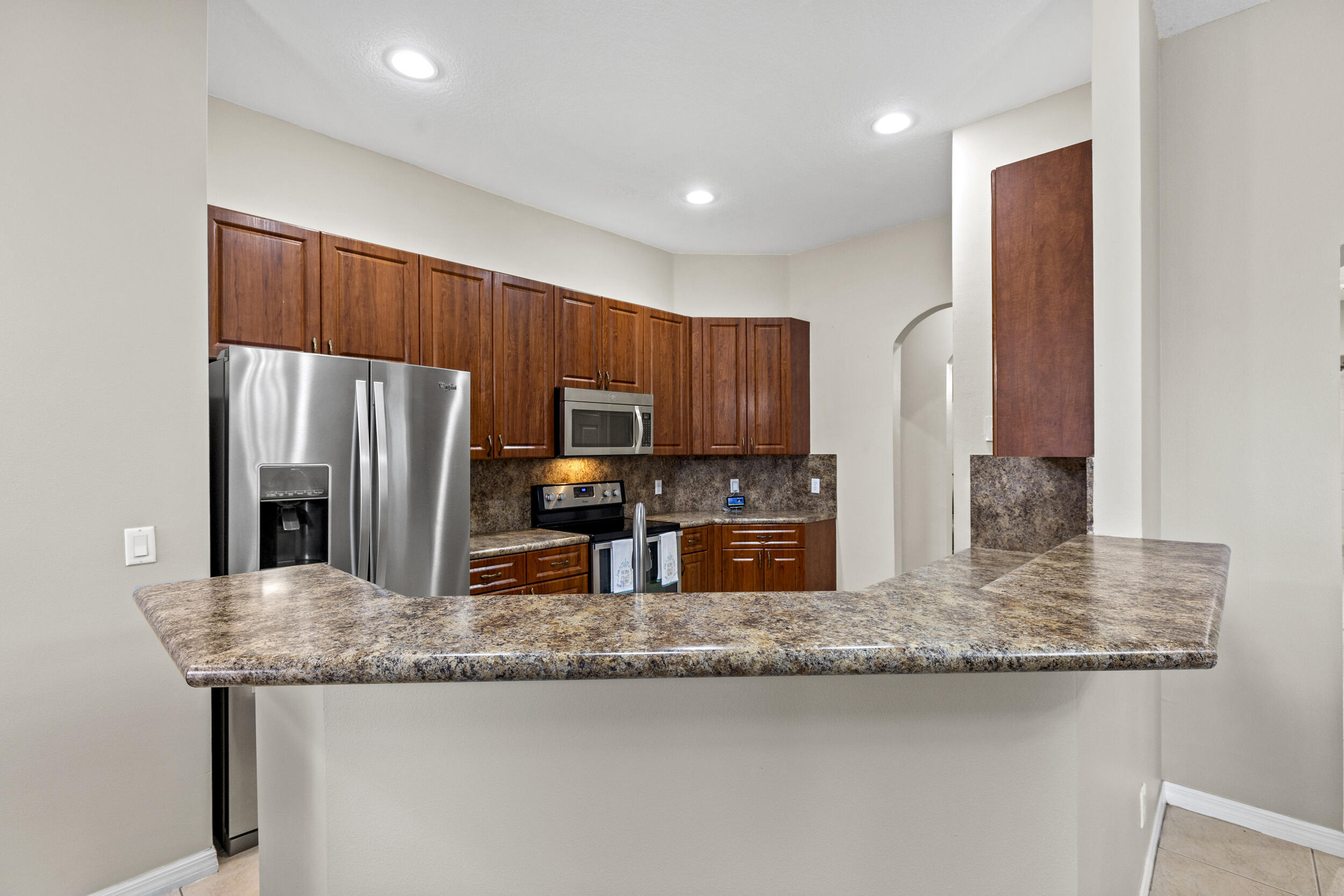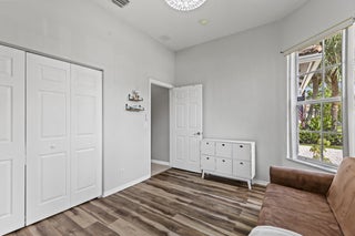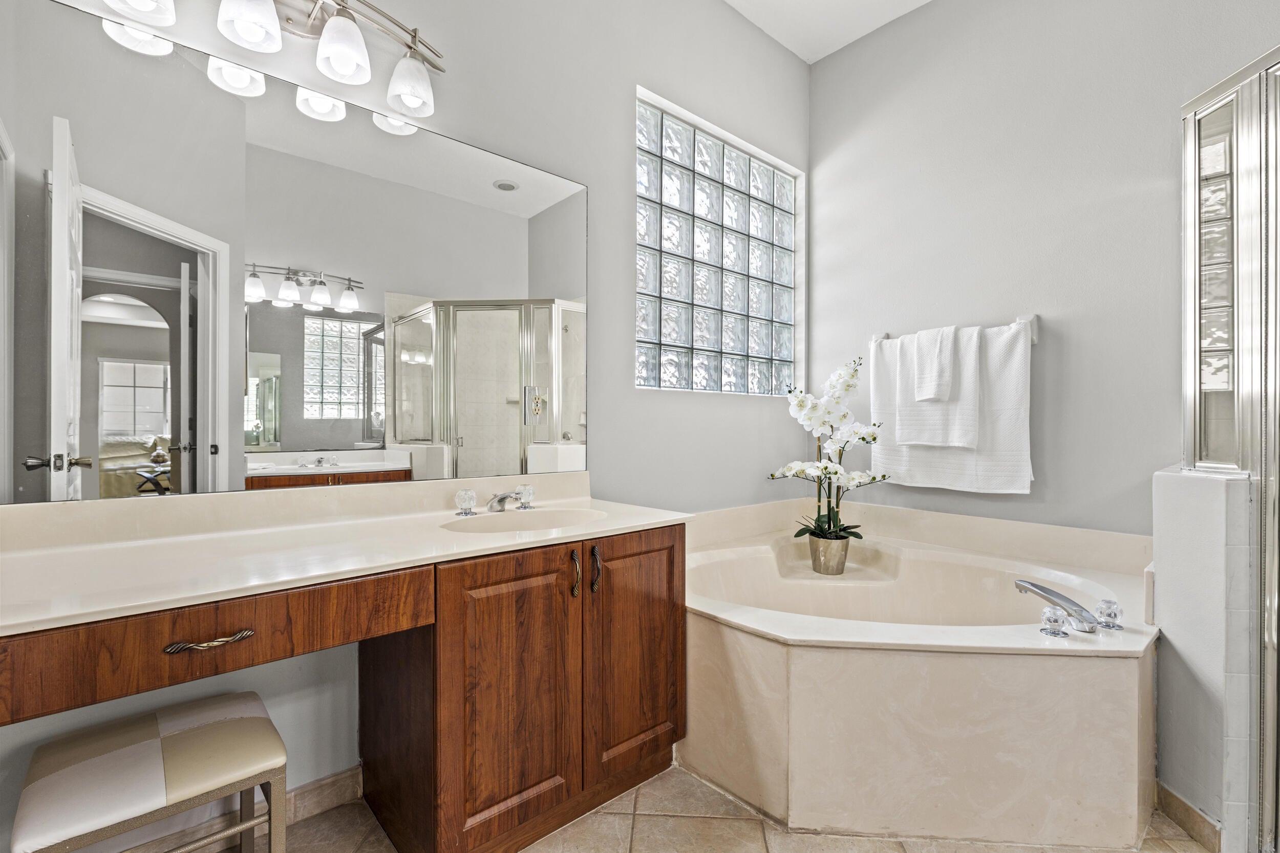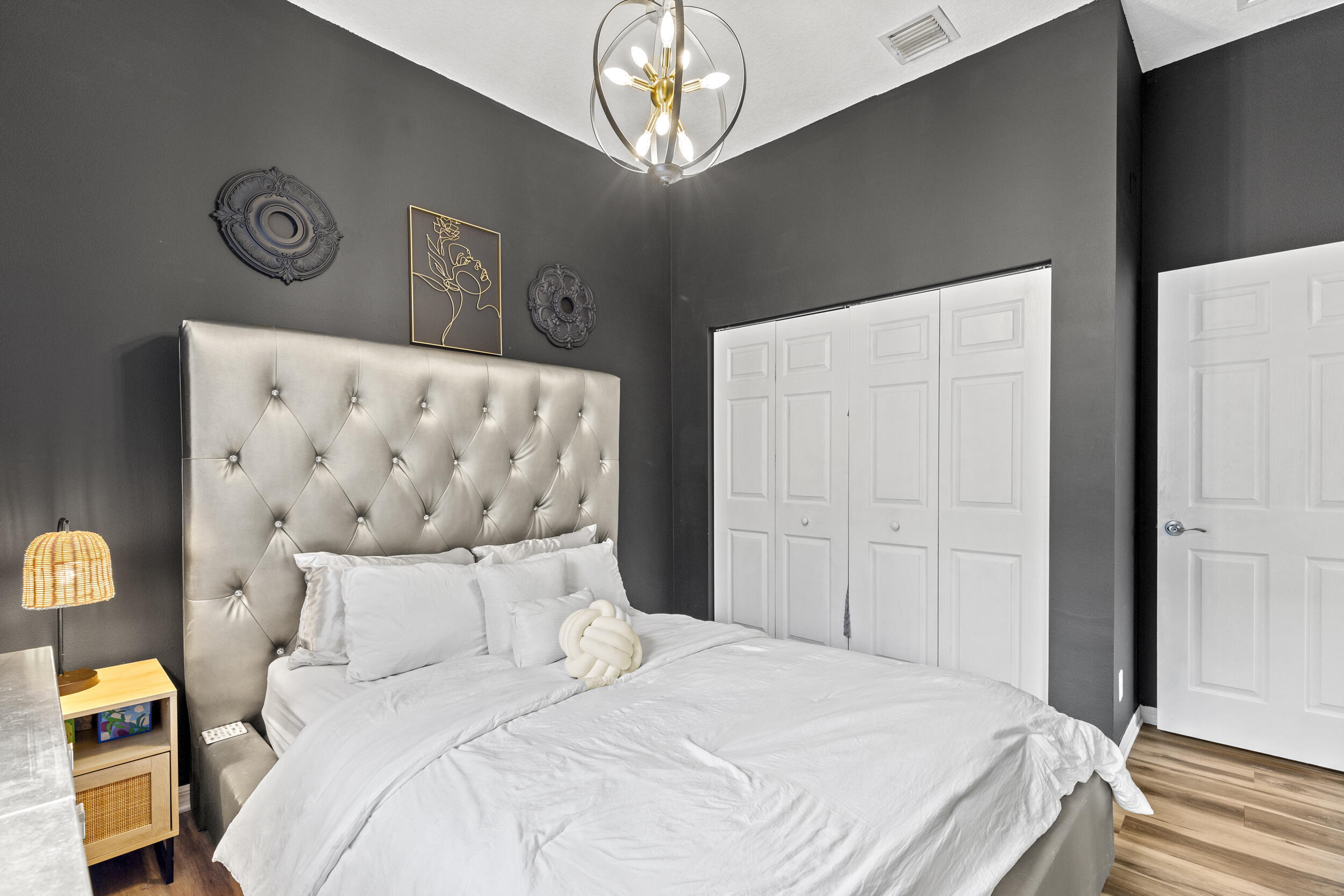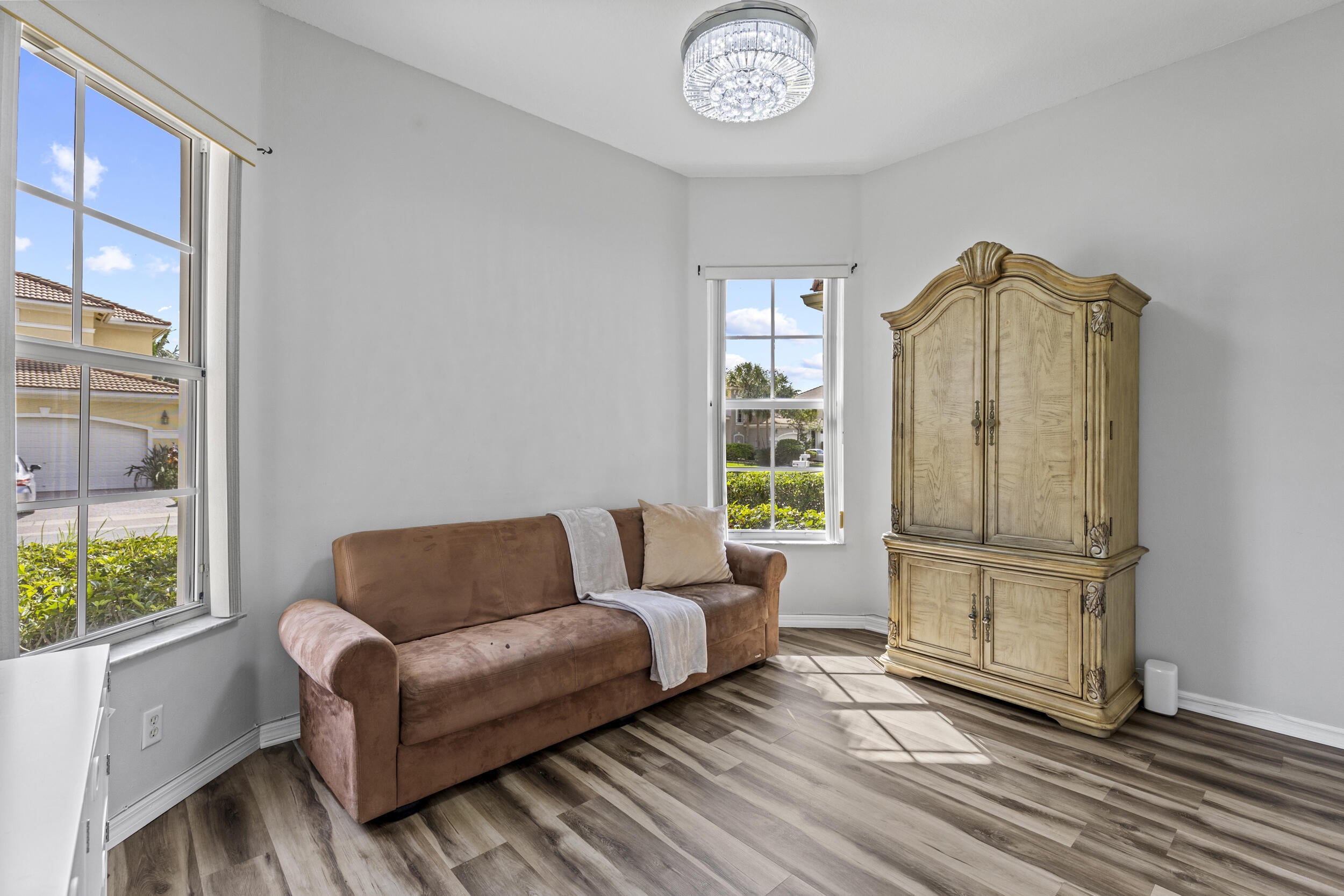 Immaculate move in condition 4 bedroom 3 bath one story home. Large open and flexible living areas plus an open eat in kitchen with a breakfast bar. 3 way split bedroom plan. High ceilings throughout. Primary bedroom has 2 walk in closets, a tray ceiling, plus access to the covered patio. Primary bathroom has a large soaking tub, separate shower, double sinks and a linen closet. Inside utility room with full size washer and dryer. Double door front entry into a spacious foyer. Paver driveway and a 2 car garage with high ceilings for lots of storage. Sidewalks throughout this guard gated neighborhood.Lots of activities at the community clubhouse for all ages. Tennis, pickleball, pool, fitness, playground, ping pong, billiards, cards, banquet hall with a kitchen and management on site.Great location just north of Okeechobee, close to world class shopping and dining, easy access to Turnpike, convenient to Palm Beach International airport. Photos coming soon!