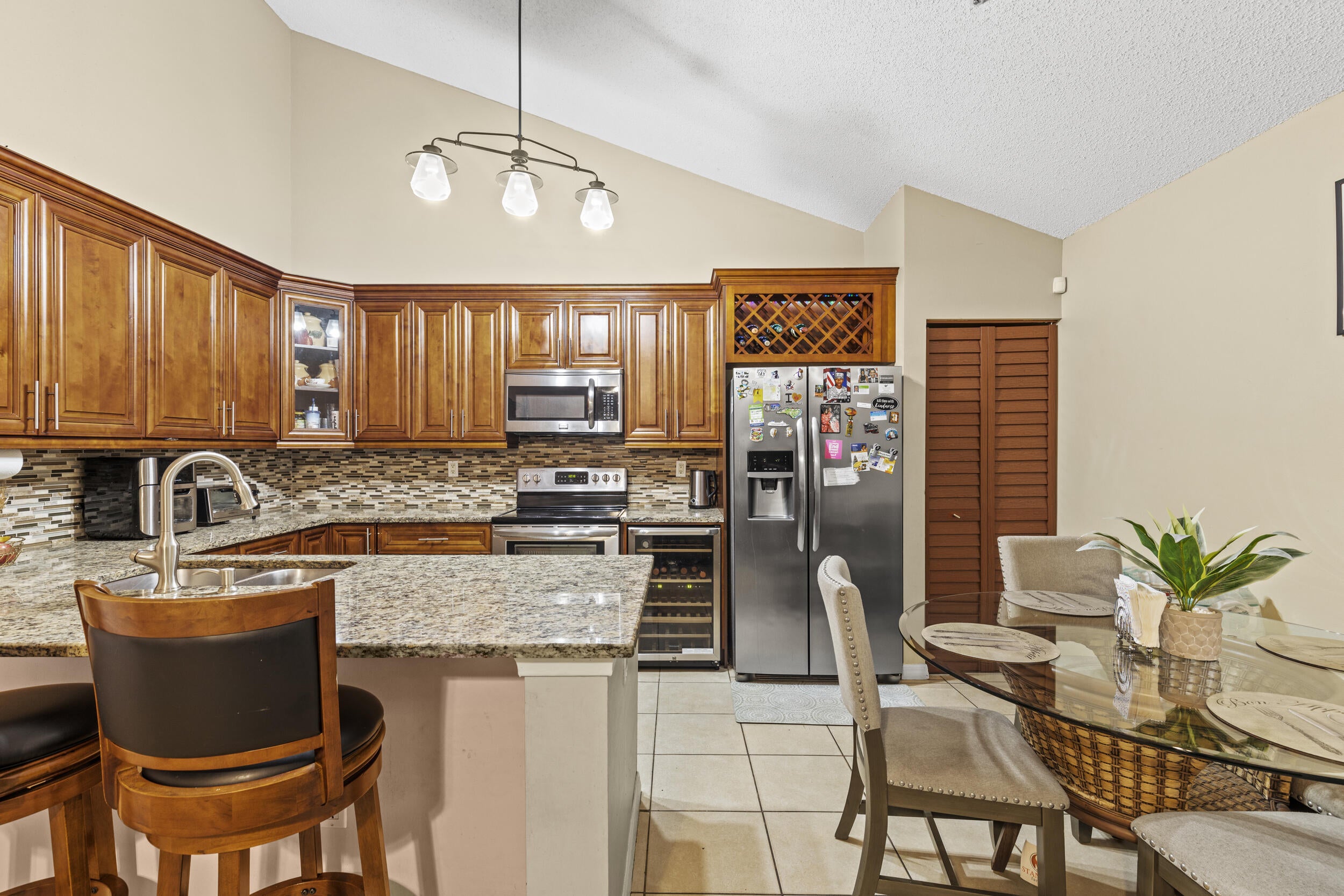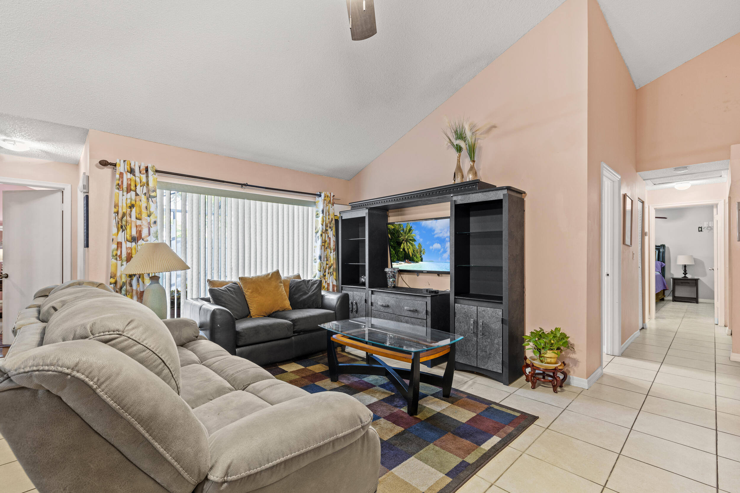 Well-maintained 3-bedroom, 2-bathroom home located in a gated community. Property features include two entry doors, accordion shutters, a new roof (2023), new water heater (2023), and AC unit less than 5 years old. The kitchen is equipped with granite countertops, updated bathrooms, and new appliances including a wine cooler. A screened patio provides additional outdoor living space.The community offers low HOA fees and amenities such as a pool, clubhouse, tennis courts, playground, and more.