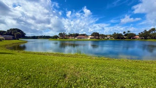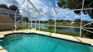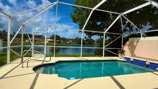 Spectacular wide lake view from the custom screened pool of this 2BR/2BA Capri model villa. Ideally located just a short walk from the Town Center with Centanni's Restaurant, community pools, fitness center, and more. Features include a new roof, A/C in 2023, and laminate flooring in main living areas. The Great Room offers a built-in entertainment unit and vaulted ceilings for a bright, open feel. Additional highlights include accordion storm shutters, laundry room with full-size washer, dryer, and utility sink, central vacuum, and alarm system. Enjoy serene lakefront living with resort-style amenities right at your doorstep!The heart of this unique residential community is its waterfront Town Center where you can grab lunch or dinner at the on-site "Centanni" Italian restaurant; enjoy the tennis and pickle ball experience on the eight Har-tru lighted courts with on-site tennis instructor and active tennis program. Take a swim in one of the three heated pools, fish from one of the many picturesque bridges; stop by the library, play ping pong or pool. Also located in the Town Center is the full service Illustrated Properties real estate office, beauty salon, mail facility and children's playground. Enjoy 12 miles of scenic pedestrian pathways, take a bike ride or enjoy a vigorous work out in the renovated fitness center or play bocce - all for the exclusive use of River Walk residents! Yoga, mahjong, bridge, aqua aerobics, foreign language classes, crafts and more are some of the other fun activities offered! River Walk offers luxury resort-style living, without extravagant ''country club'' fees! Conveniently located near the turnpike, Palm Beach International Airport, the Outlet Malls, Kravis Center, Downtown, and Palm Beach Island.