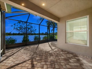 Welcome to this impeccable and beautifully upgraded 2 Bedroom + Den, 2 Bathroom lakefront home in the highly desirable 55+ community of Valencia Cay at Riverland. Perfectly positioned on an oversized, premium water-view lot, this residence combines elegant modern design, thoughtful upgrades, and access to a vibrant, resort-style lifestyle. Step inside to discover Oak-hardwood plank flooring throughout, detailed crown molding, and 36 recessed LED high hats that create a warm, inviting ambiance. The versatile den with French doors is ideal for a home office, library, or guest retreat. The chef-inspired kitchen showcases upgraded cabinetry and hardware, granite countertops with matching backsplash. A vented microwave and a spacious pantry with custom shelving.The bathrooms exude luxury, featuring quartz countertops, upgraded tile, floor-to-ceiling finishes, frosted shower windows, and comfort-height Kohler toilets for a spa-like experience. Peace of mind comes standard with complete impact glass windows and doors, complemented by a powerful 2400-watt whole-house generator. Step outside to enjoy serene lake views from the extended screened patioperfect for entertainingor take advantage of the extended driveway offering extra space and curb appeal. Additional enhancements include custom epoxy garage flooring, a large laundry room with new cabinetry, whole-house gutters, and convenient attic storage. Just a short stroll away, the state-of-the-art Valencia Cay Clubhouse offers endless opportunities for recreation and connectionfeaturing an Olympic-size pool, an on-site restaurant, fitness center, tennis and pickleball courts, and premium weekly entertainment. Whether you're soaking in the tranquil lakefront setting or embracing the active Riverland lifestyle, this home offers an exceptional blend of luxury, comfort, and community.