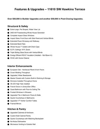 Auto Garage Open, Cooktop, Dishwasher, Disposal, Dryer, Fire Alarm, Freezer, Generator Whle House, Microwave, Range - Gas, Refrigerator, Smoke Detector, Washer