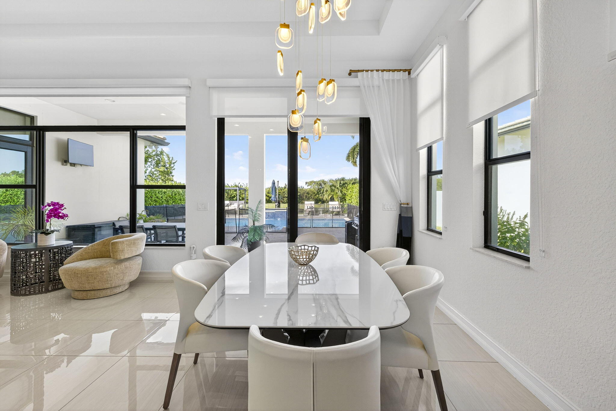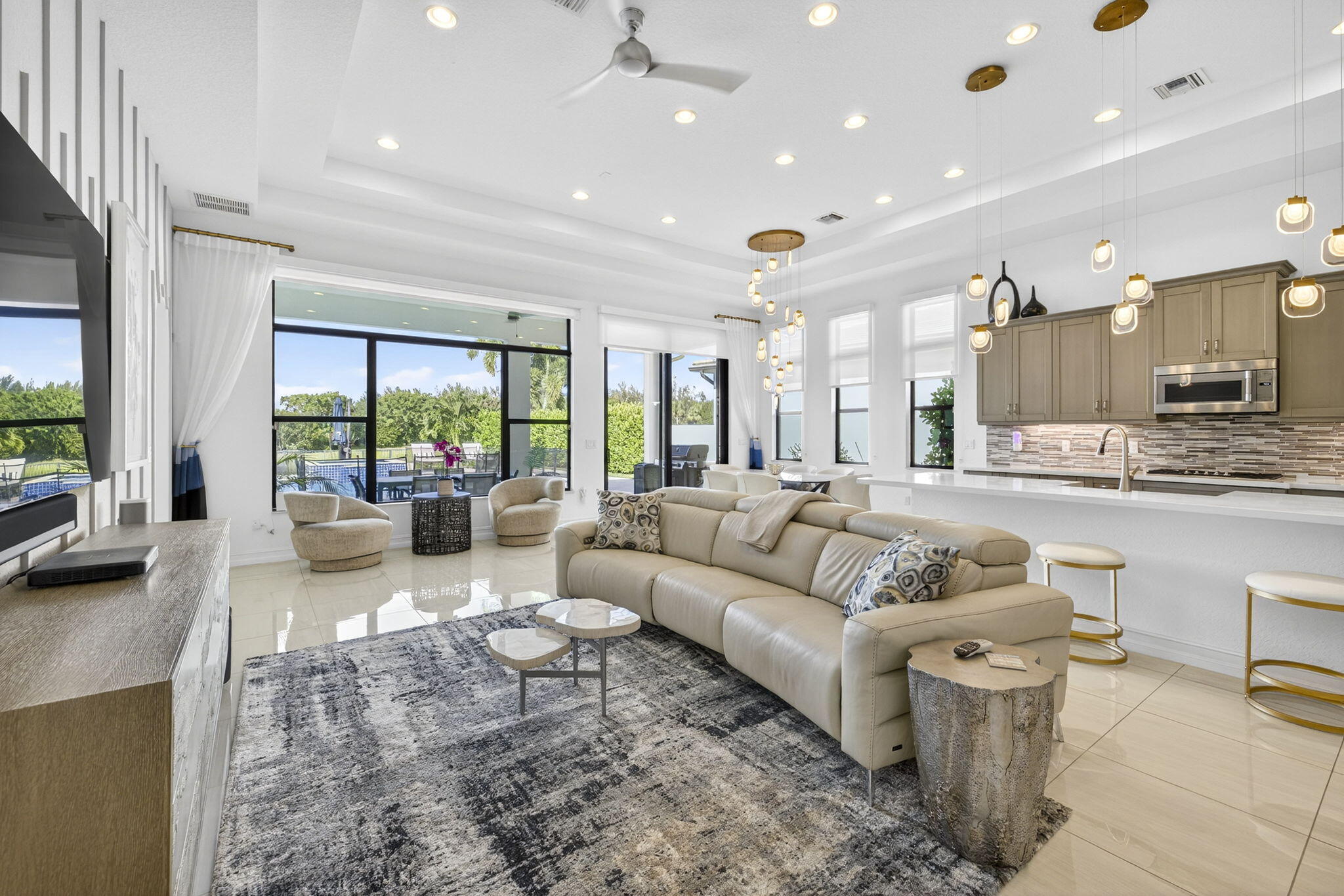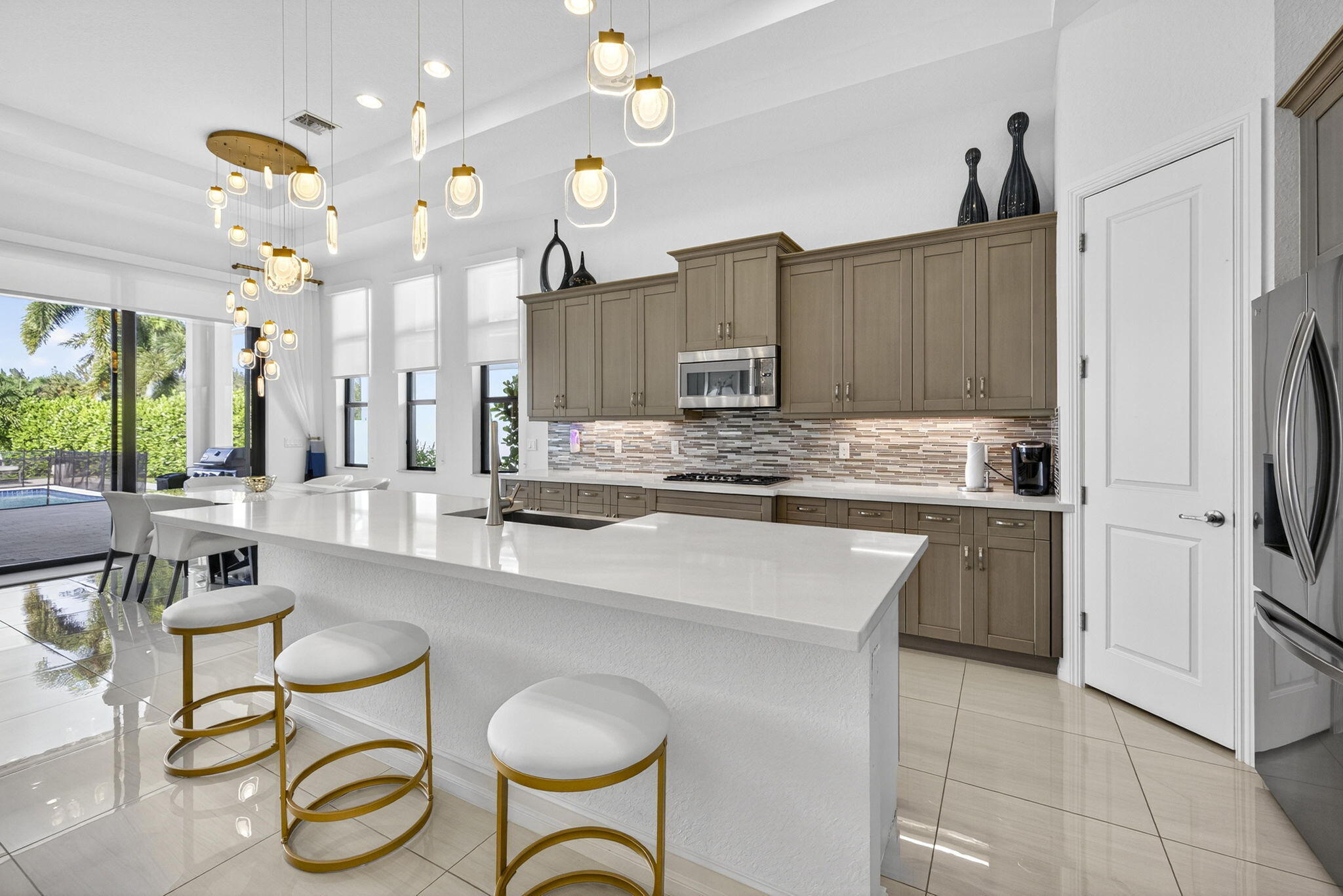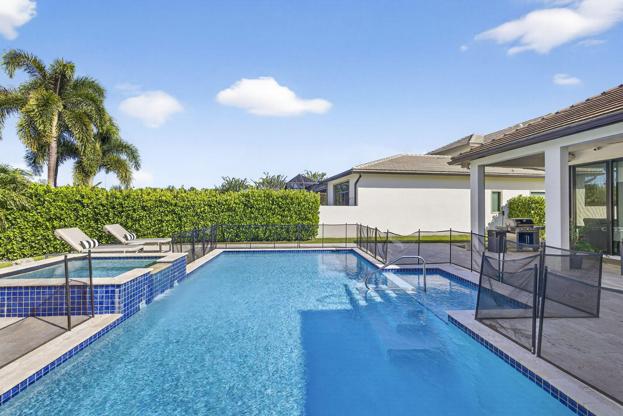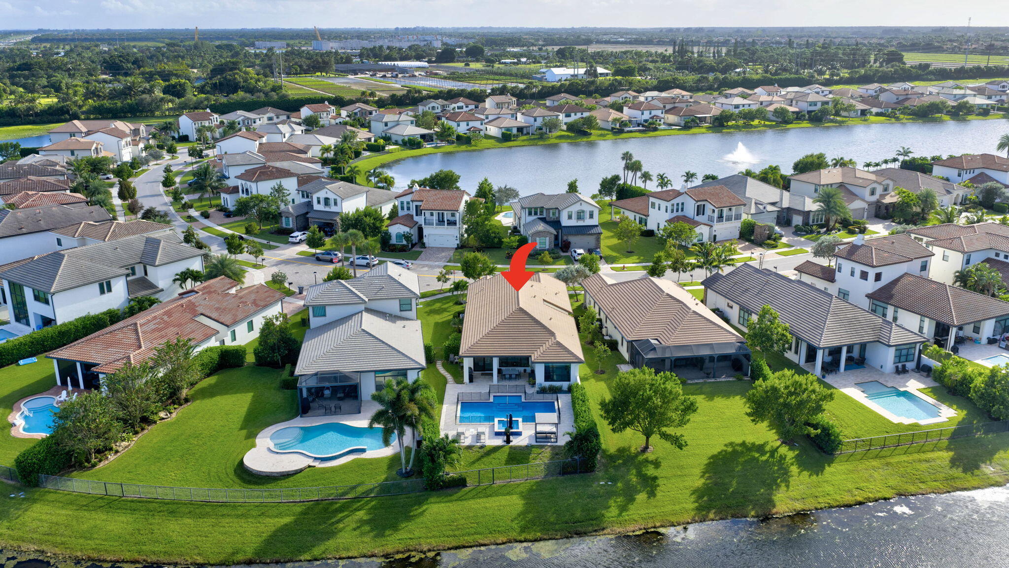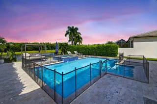 Welcome to Palm Meadows Estates, a private gated community nestled in the heart of West Boynton Beach's equestrian countryside. Surrounded by tranquil lakes and winding pathways, this serene enclave offers a lifestyle defined by elegance, nature, and a sense of peace. From the moment you pass through the 24/7 manned security gates, you'll feel a sense of calm and beauty that sets the tone for everything that follows. Your lakefront home is a true zen oasis, bathed in natural light and framed by endless preserve views.The open-concept layout flows effortlessly, featuring a spacious great room and a chef's kitchen with high-end appliances, an oversized island & pantry. Every detail from custom cabinetry/closets & to designer wall accents, is carefully designed to feel luxurious and invitingand uniquely yours. Step outside through the expansive covered lanai to your private saltwater pool and hot tub, perfectly positioned to capture the serenity of the lake. Whether you're hosting sunset dinners, enjoying a quiet morning coffee, or simply floating beneath the stars, this outdoor retreat offers the very best of Florida living. At the heart of the community lies a vibrant clubhouse designed for connection and wellness. Residents enjoy a resort-style swimming pool with cabanas, BBQ areas, a stylish social room, and a state-of-the-art fitness center. Whether you're practicing yoga, playing pickleball or tennis, or watching your kids splash in the tot lot and water zone, Palm Meadows offers something for every age and interest. Palm Meadows Estates isn't just a place to live, it's a lifestyle. Here, you'll socialize and stay active, relax and unwind, and enjoy the comfort of a secure, beautifully maintained community. It's where luxury meets heart and where your next chapter begins.