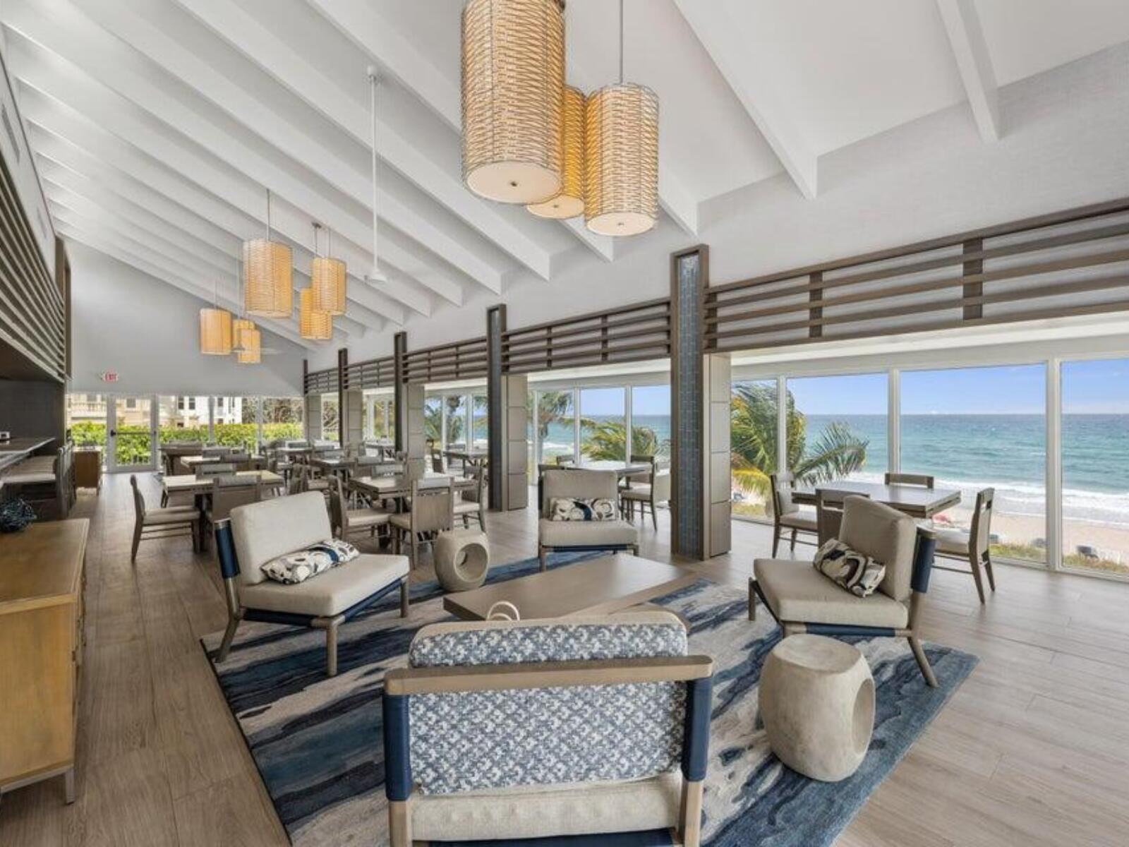 Turnkey 3-Bedroom Corner Residence with Panoramic ViewsPerched on the 5th floor of the prestigious Dalton Place in Highland Beach, Florida, this fully furnished 3-bedroom, 3-bathroom corner unit offers an exceptional coastal living experience. The split floor plan showcases stunning ocean views, complemented by a spacious balcony perfect for entertaining or relaxing.The upgraded kitchen features granite countertops and modern appliances, including a cooktop, dishwasher, microwave, two refrigerators, and an in-unit washer and dryer conveniently located in the hallway closet. Designer tile and elegant crown moldings flow throughout, while the living and dining areas boast a tasteful combination of ceramic tile and decorative carpeting. Impact glass windows and sliding doors open to th