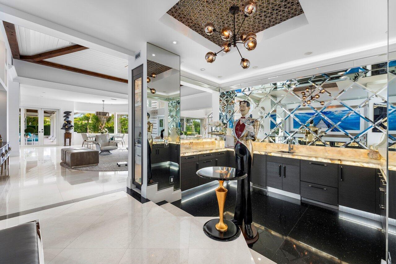 Proudly offered on a premium one acre double lot this stunning estate delivers over 12,000 sq. ft. of refined luxury living with breathtaking wraparound lake and golf course views framed by Florida's signature sunsets in Frenchman's Creek. Over the last few years this spectacular home has been fully renovated and modernized while still retaining its majestic charm. As you step inside this truly unique renovated estate offering 7 generously sized bedrooms and 8.5 bathrooms, gorgeous marble flooring leads your eye to soaring volume ceilings with stunning wood beams and classic architectural details with walls of windows open to the spectacular views and an abundance of natural light.The luxurious primary suite encompasses the entire east wing of the home serving as a private retreat featuring a spacious sitting area, generous storage with multiple walk-in closets, and a serene spa-like bath with dual vanities, two water closets, separate tub and shower, and tranquil courtyard garden views. Designed for entertaining, the west wing opens into an impressive entertaining space. The Downsview kitchen is a chef's dream, boasting Miele appliances, Michelangelo marble countertops, and an additional full prep kitchen tucked conveniently around the bend. The airy greenhouse-inspired dining room is the perfect setting for hosting the whole family. Sliders open to wraparound patios, seamlessly blending indoor and outdoor living. Upstairs, a guest suite with private balcony showcases panoramic lake, golf, and sunset views. Through the private courtyard, discover the two-story guest quarters complete with living room, prep kitchen, two baths, bedroom, and ample storage ideal for hosting extended family or guests in comfort and privacy. The home also features a nine-seat media room with dry bar and full bath, ensuring every convenience and entertainment option is at hand. With thoughtful design at every turn, this residence offers a seamless balance of luxury living and functional flow, truly a home you may never want to leave. The outdoor living spaces are equally remarkable, spotlighting a sparkling pool and spa with sun shelf, a putting green, decorative fountain, summer kitchen with pizza oven, and full bar. The luxurious separate guest house provides its own living room, bedroom, and bath, with a wraparound porch that flows into the entertaining areas. This remarkable residence is more than a home, it is a private sanctuary offering luxury, comfort, and an unmatched lifestyle in one of Palm Beach County's most sought-after communities. Frenchman's Creek Members enjoy the ultimate concierge lifestyle with resort amenities, state of the art brand new clubhouse, two 18-hole championship golf courses - for only 600 homes, tennis, pickleball, state of the art spa & fitness center, numerous social events and so much more. The exclusive Beach Club, included with membership, located on beautiful Juno Beach allows use of pool, restaurant, beach attendant and events during season. Call to preview this remarkable residence.