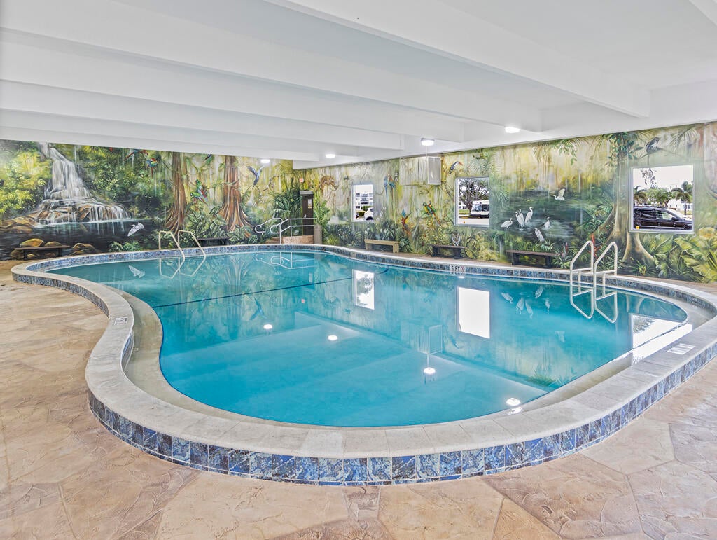 Billiards, Boating, Bocce Ball, Clubhouse, Common Laundry, Courtesy Bus, Exercise Room, Indoor Pool, Library, Pickleball, Picnic Area, Pool, Shuffleboard, Tennis
