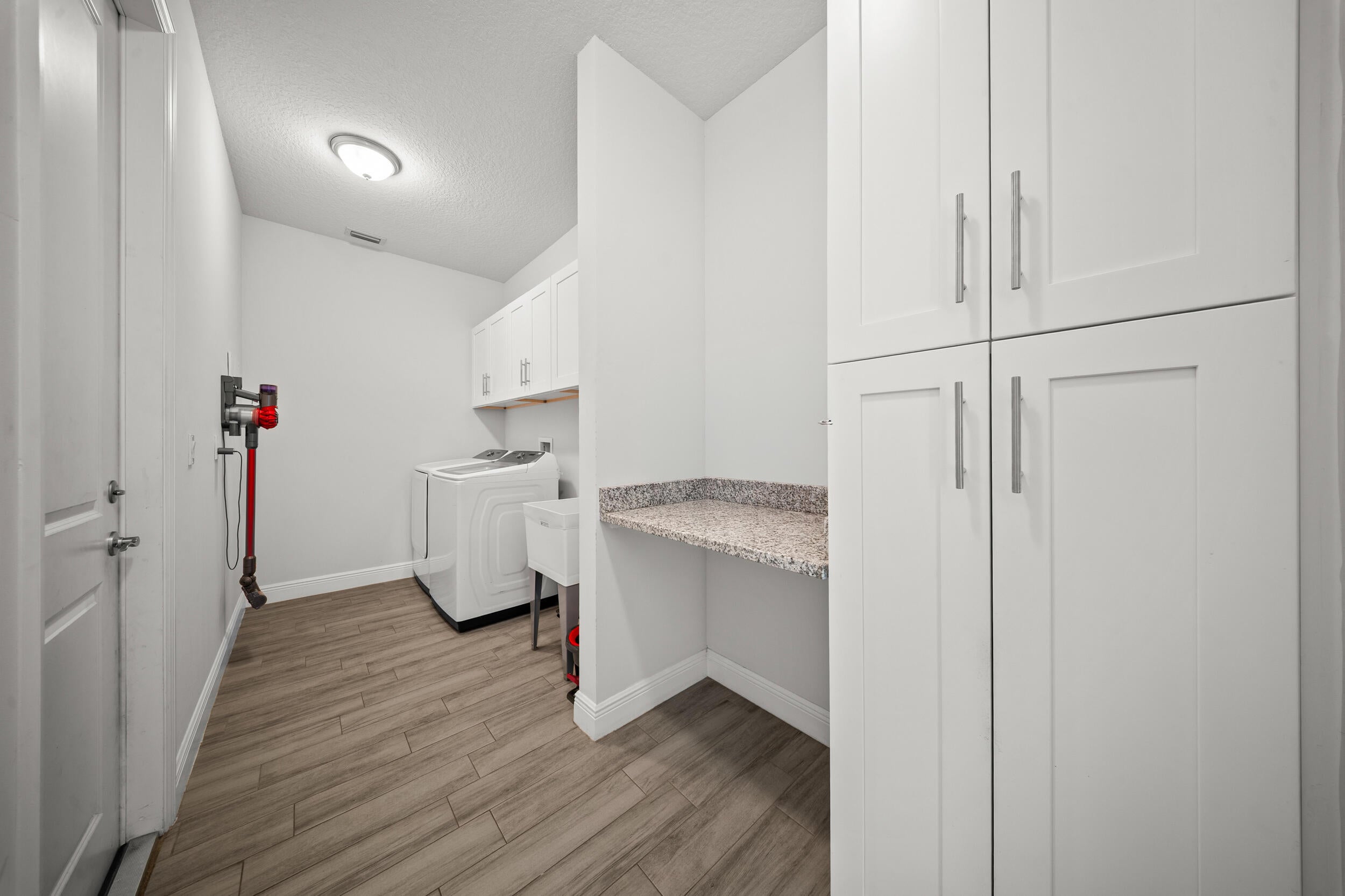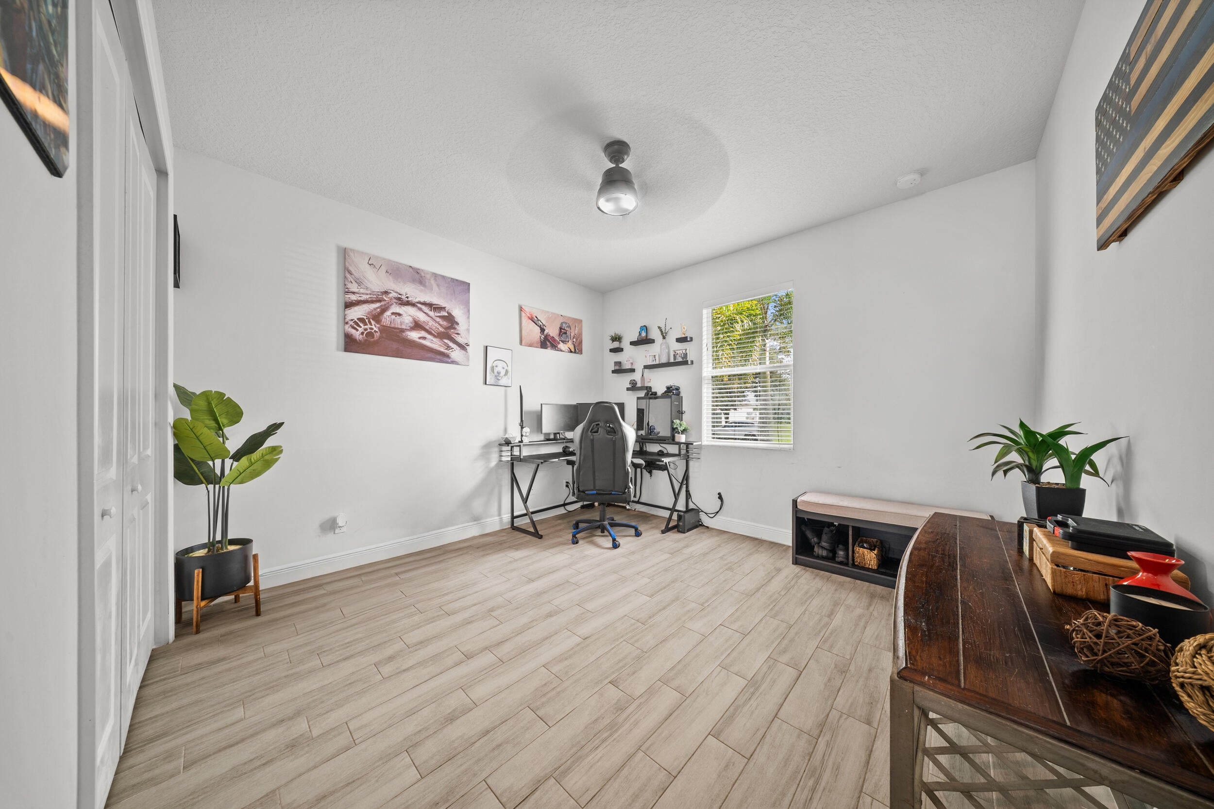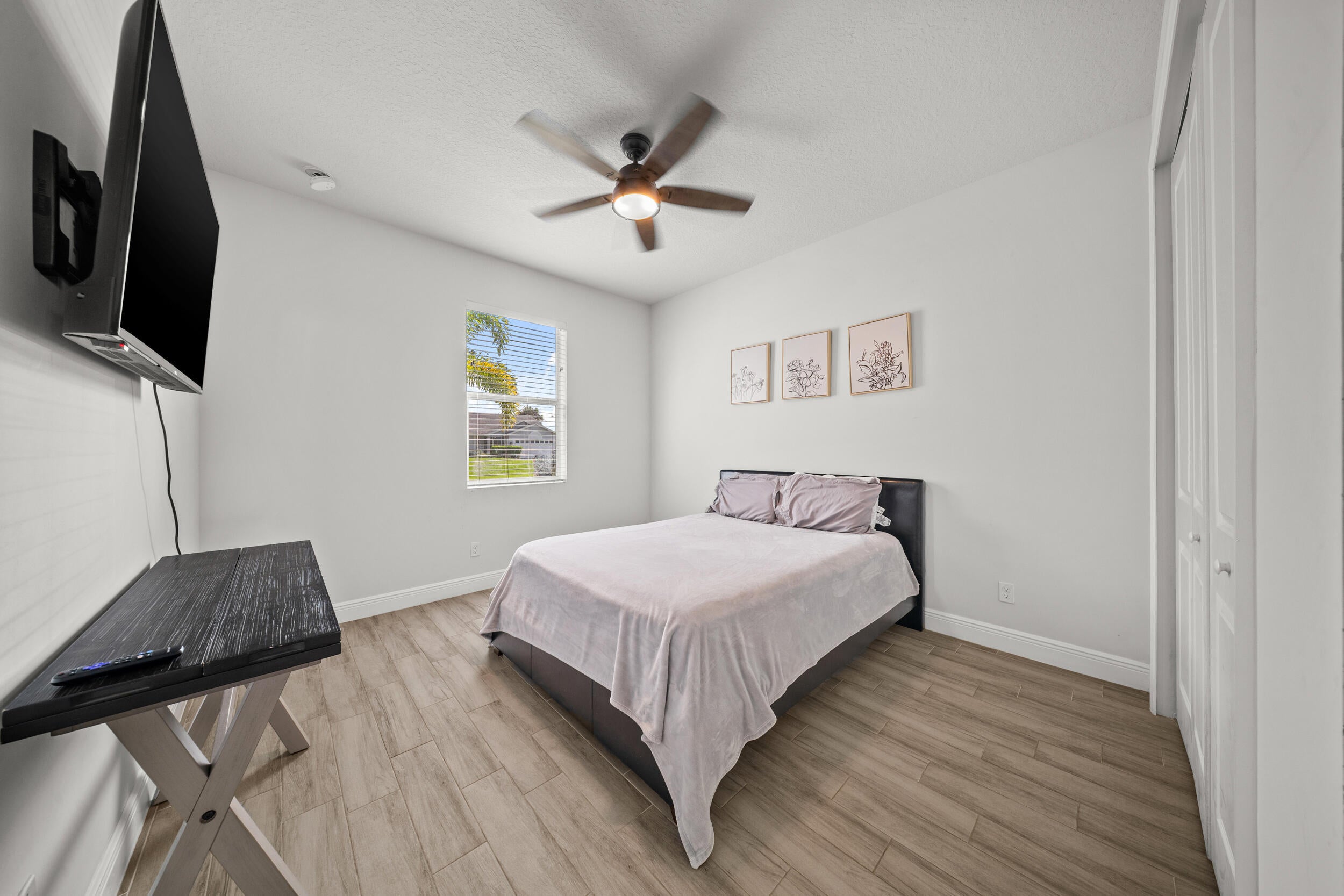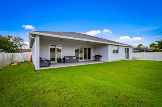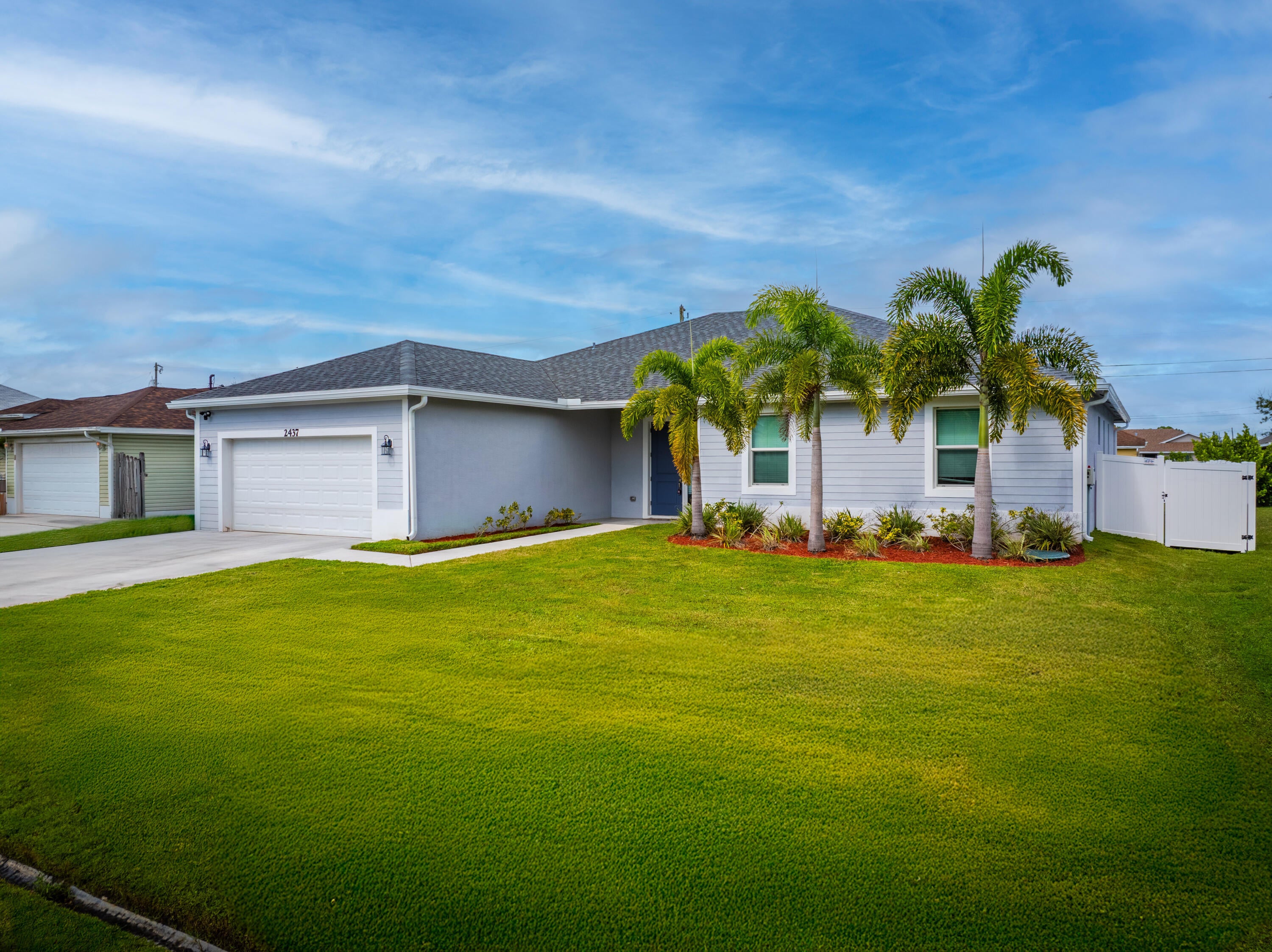 Welcome to 2437 SW Santana Ave, a stunning 4-bed, 2-bath home built in 2021 that blends style and comfort. Inside, you'll find gorgeous wood-look tile flooring throughout and a bright open-concept layout. The modern kitchen features granite countertops, stainless steel appliances, and plenty of cabinetry. The spacious primary suite offers two walk-in closet, sleek contemporary bathroom, and sliders leading to the fully fenced backyard with crisp white vinyl fencing and gutters--perfect for privacy and pets. Both bathrooms showcase clean, modern finishes, while the oversized laundry room includes cabinetry, a wash sink, and a countertop for folding. Move-in ready and thoughtfully designed!