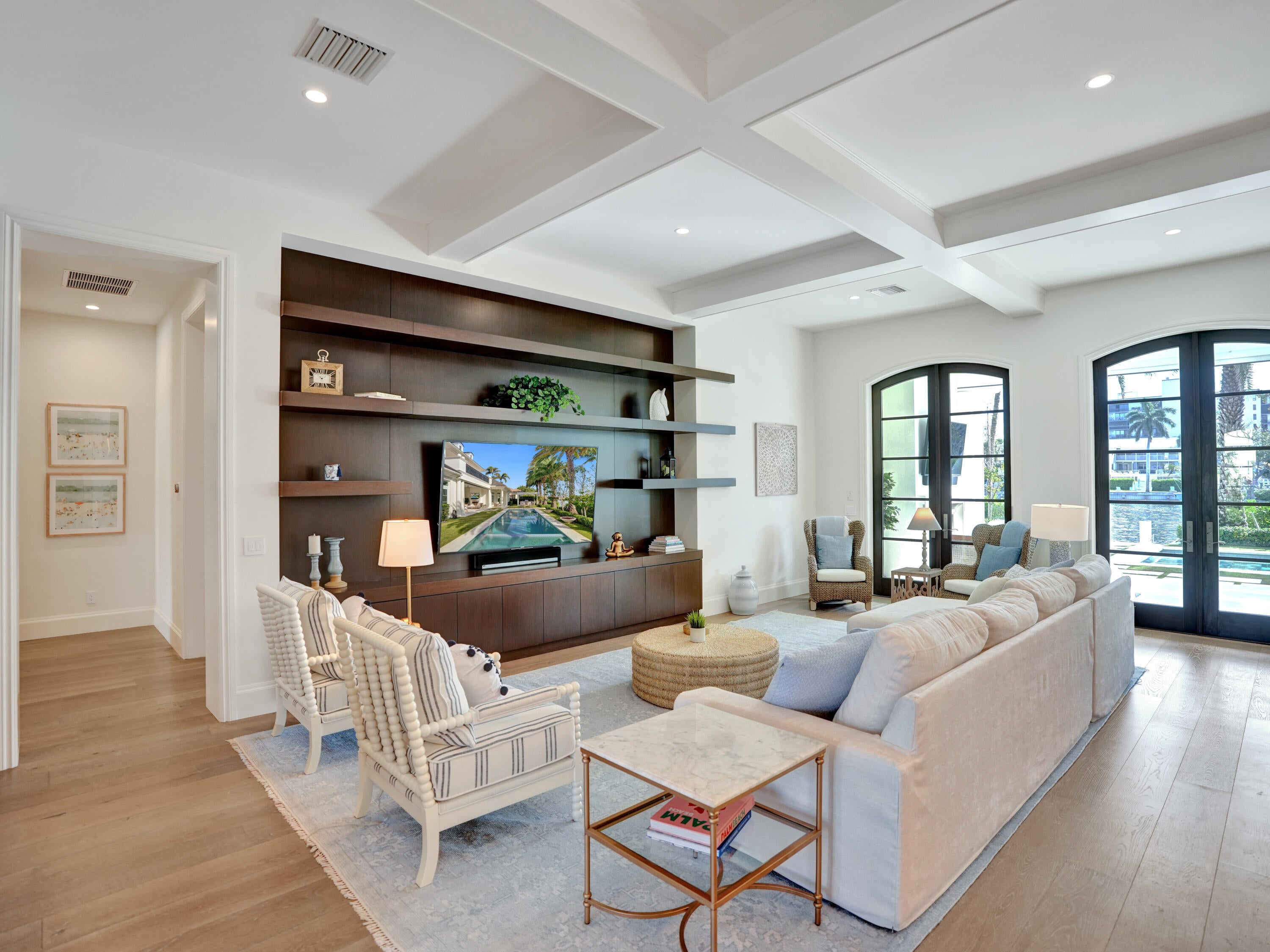 Your Lighthouse Dream Home awaits! This stunning 5 bedroom, 4.5 bathroom waterfront home, completed in 2017, offers the very best of luxury living directly on the Intracoastal and truly leaves nothing to be desired. With breathtaking water views from nearly every room, it features two club rooms with full bars, a first-floor master suite with an office, as well as four luxurious bedrooms and a spacious laundry room. The property boasts 100 feet of Intracoastal frontage, a pool, spa, two boat lifts, and is set on a 14,000 sqft lot, just minutes from the Hillsboro Inlet. The chef's kitchen is a true highlight, with top-of-the-line, stainless steel appliances, sleek European cabinetry, and a spacious island perfect for entertaining.The primary suite is a private retreat with stunning water views, and a luxurious, light-filled, en-suite bath offering dual vanities, a soaking tub, and a rainfall shower. Two walk-in closets as well as a morning bar and spacious office suite with sweeping views of the backyard and Intracoastal waterway complete this tranquil and luxurious primary suite. Next to the stunning open concept living space, the sun-filled clubroom opens up to the covered patio and invites to a round of pool or a drink at the elegant bar. On the second floor, this estate home boasts another club room area and a second bar area, two full bedroom suites with oversized balcony and gorgeous water views, as well as a third bedroom. The timeless design of this home is complemented by an outdoor area second to none. The large covered patio featuring a beautiful, wood burning fireplace and a remote-controlled screen enclosure offers the ideal space for outdoor entertaining. Additional seating in the perfectly manicured backyard as well as a chef-inspired summer kitchen invite to beautiful dinners under the stars, while two boat lifts provide easy access to the waters of the Intracoastal. An oversized three-car garage with additional storage offers ample space for all of life's funnest toys. Beautiful parks, two marinas, restaurants, two tennis clubs, playgrounds, sports fields and many other amenities are conveniently located directly in beautiful Lighthouse Point. The city also has its own police force as well as fire department and library. This is truly Florida living at its very finest!