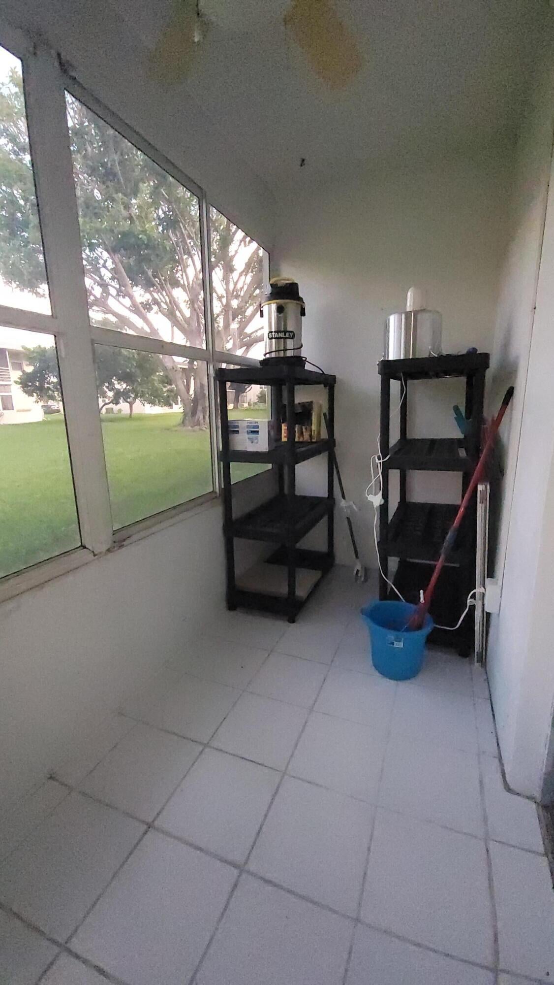Century Village is a resort-style active adult (55+) community in sunny West Palm Beach, featuring 15 swimming pools, a state-of-the-art fitness center, and a clubhouse offering a plethora of activities and clubs. The clubhouse also has a 1200 seat theater offering 4 different movies a month free of charge and monthly live shows with professional entertainment. Senior living at its best! This one bedroom, one and one-half bath ground floor unit needs nothing for your permanent or seasonal living. Beautifully updated kitchen and bathrooms, featuring a walk-in shower in the en-suite bathroom. Consistent ceramic tile throughout the condo and a walk out enclosed lanai that is conveniently located near the building patio extending your outdoor living enjoyment. All around storm protection.