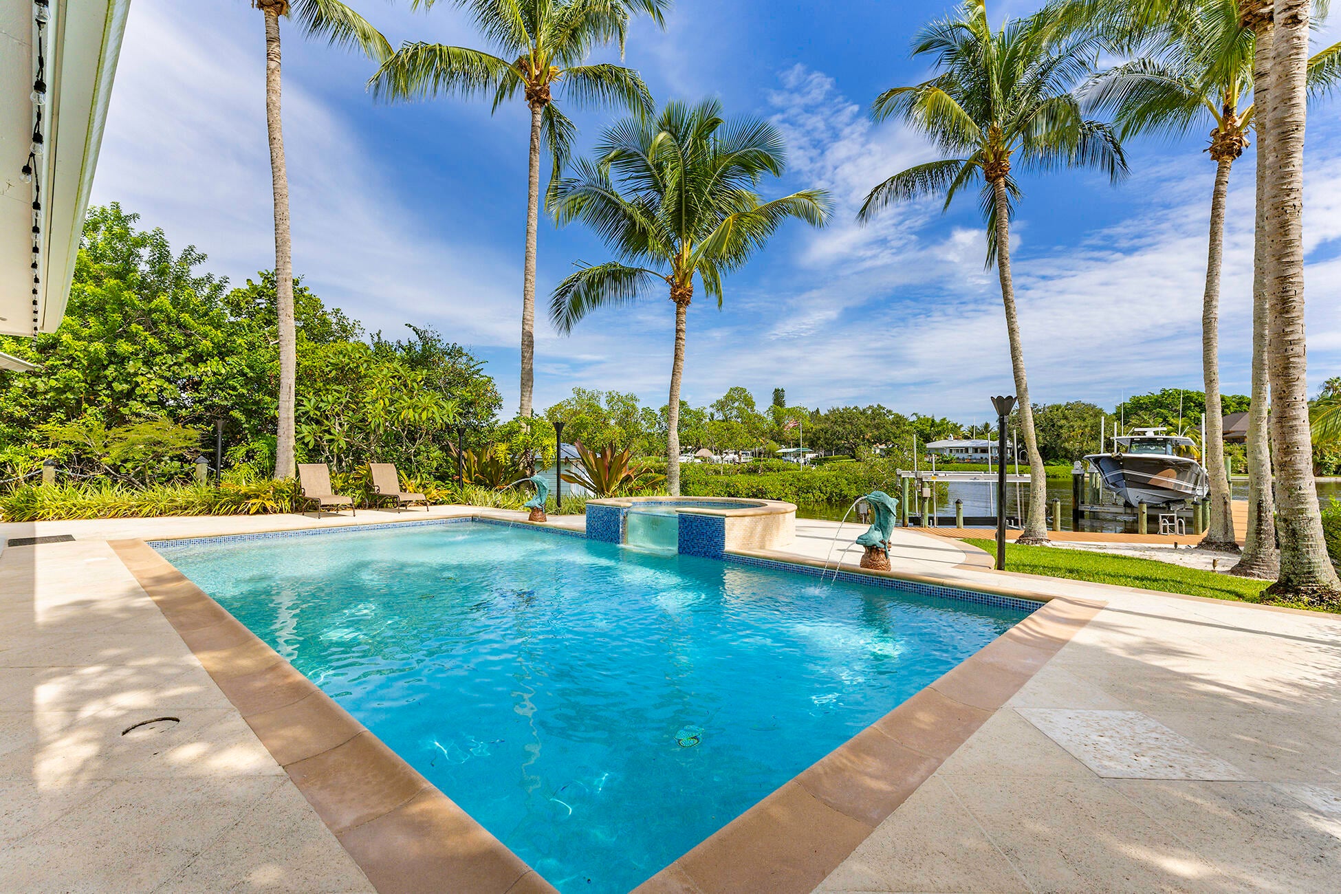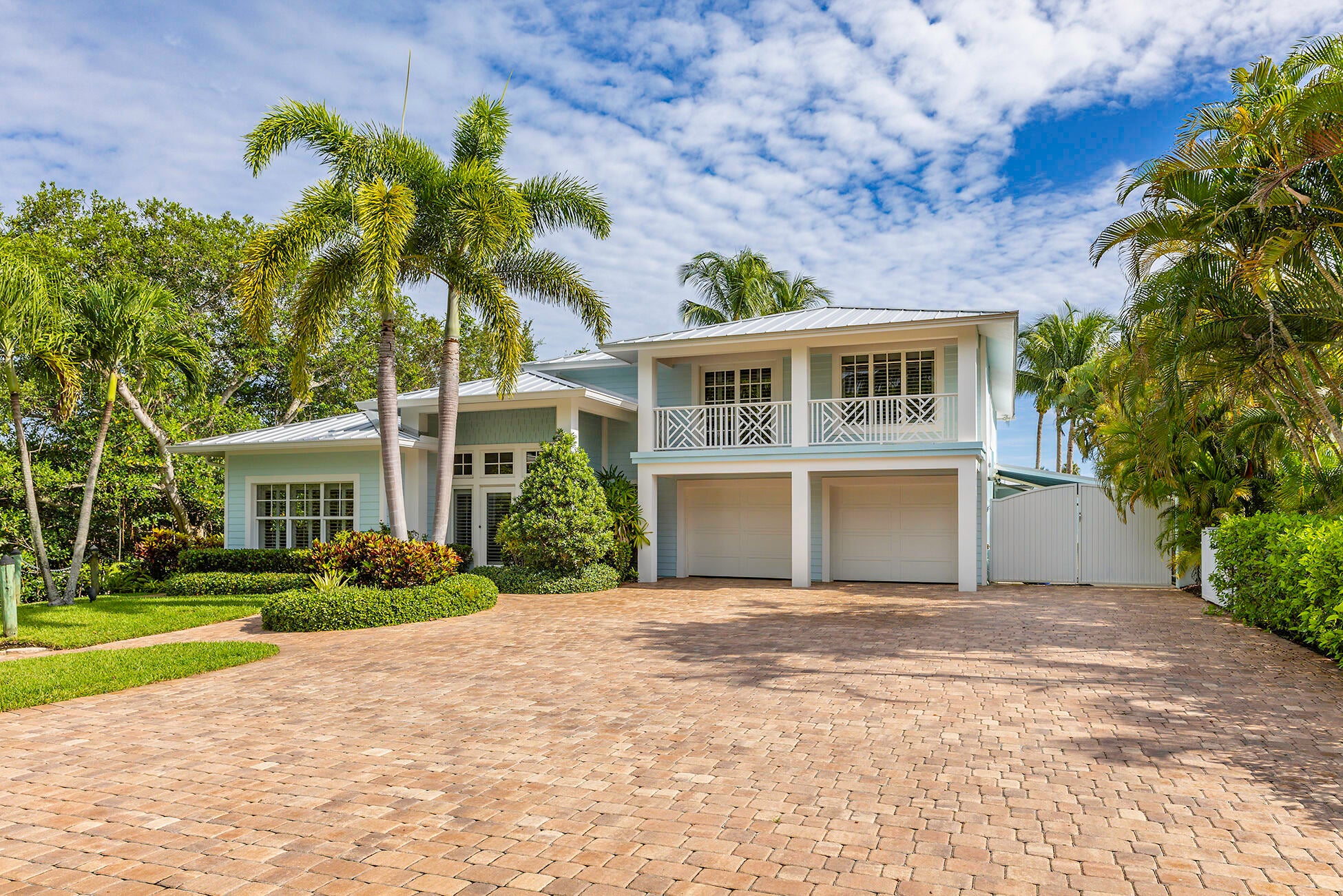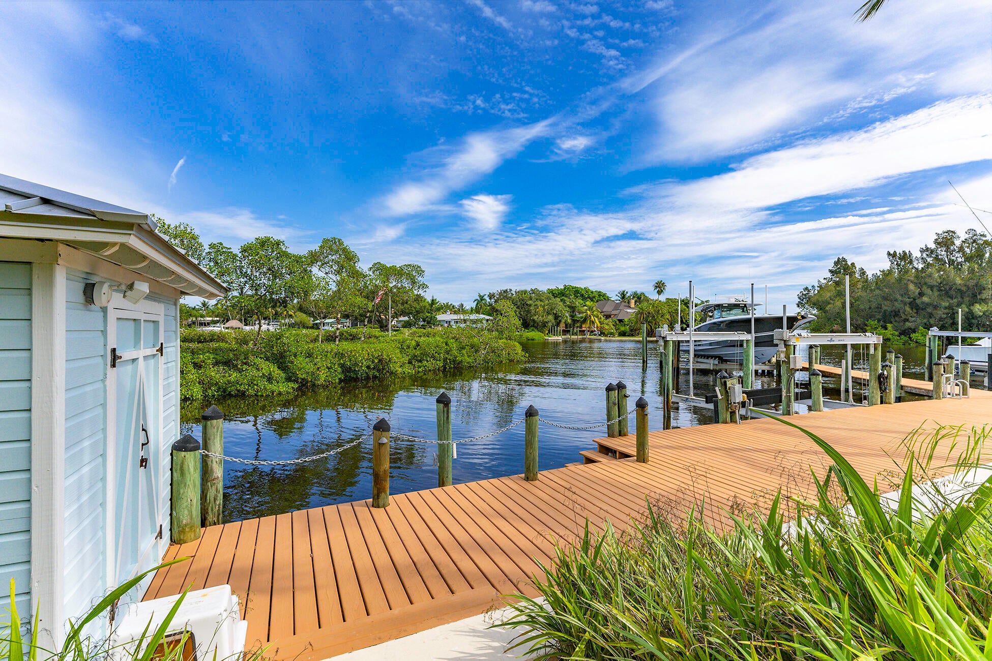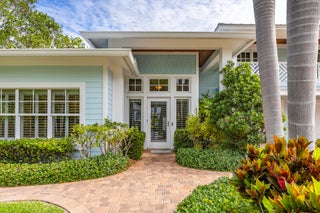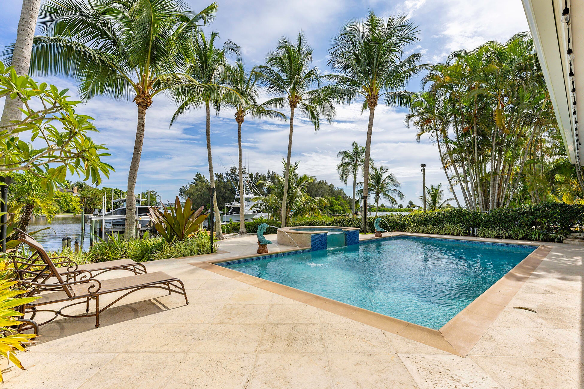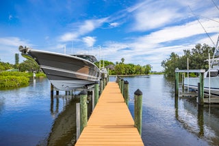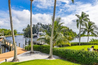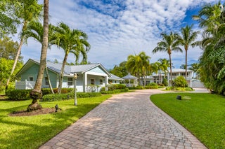 The banyan tunnel leads you to a rare trophy WATERFRONT estate, move-in ready and fully furnished. At the end of Stuart's most photographed road, your gated drive opens to nearly an acre of PRIVACY and 500' of protected shoreline with sweeping views toward the INLET and ''The Crossroads.'' Enjoy true deepwater dockage with multiple docks, two lifts, room for an 80' yacht, and quick ocean access. Reimagined in 2023/2024 with a new standing-seam metal roof, full impact glass, whole-house generator, and new garage doors. The home blends timeless Key West architecture with modern coastal design. Perfect for true boaters and entertainers, with media room, balcony suite, heated saltwater pool, tiki bar, lush landscaping, guest house, no HOA, minutes from downtown Stuart, and not in a flood zone