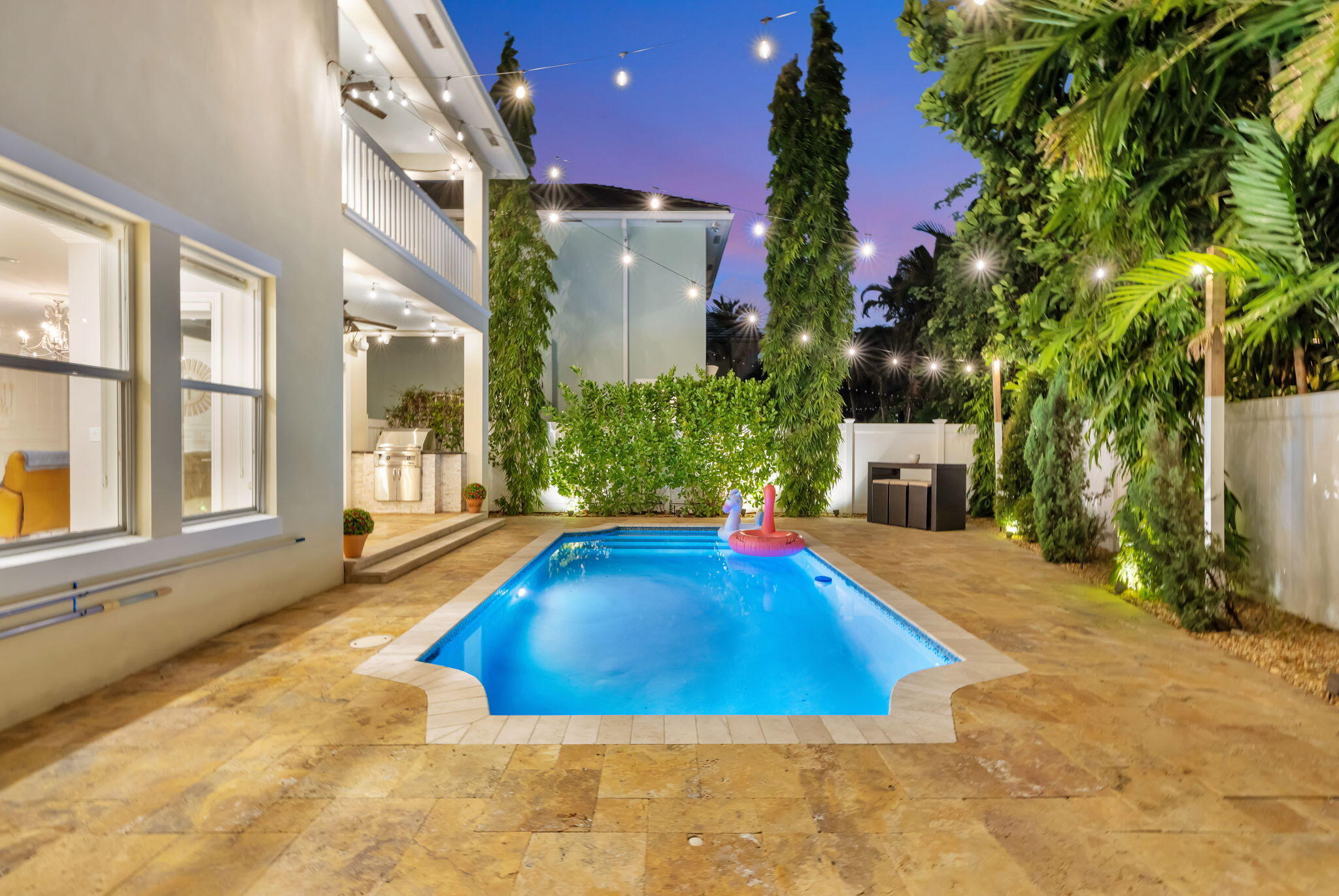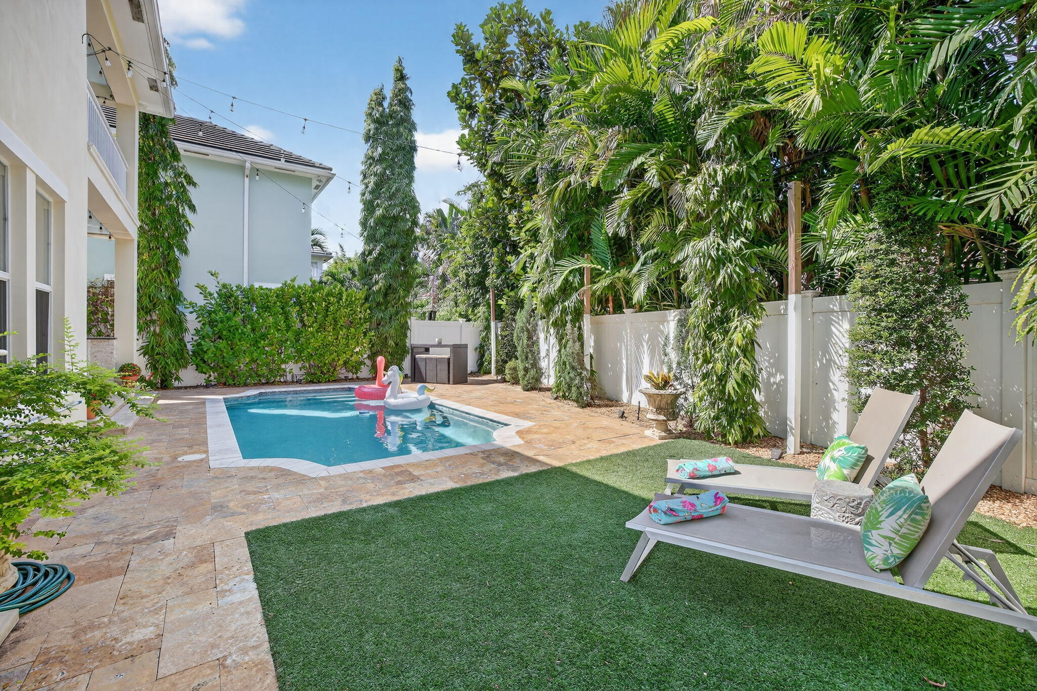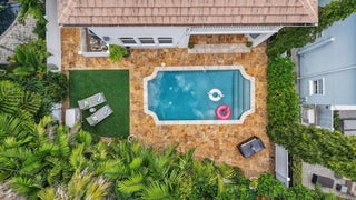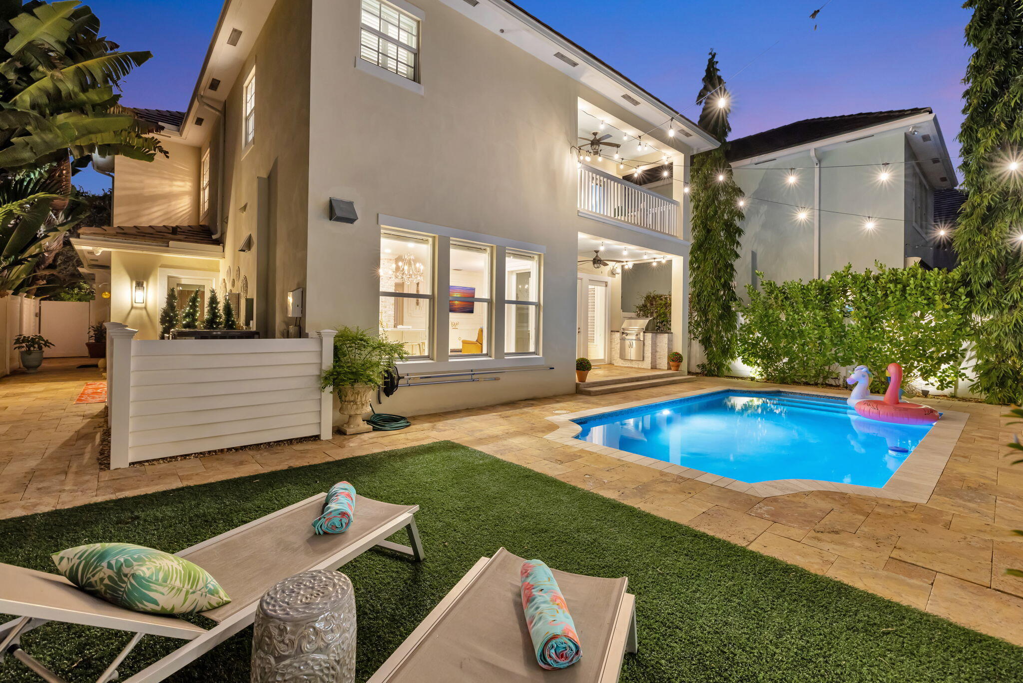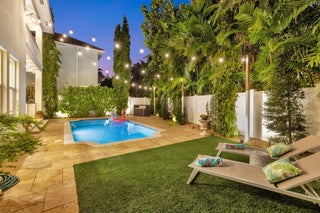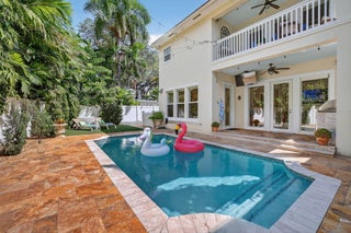 Elevated living in coveted Rio Vista awaits! Gorgeous 5 bedroom 4.5 bath offers elegant charm and luxurious living. Think sunlit living room/dining flowing into an open luxurious chef's kitchen and second living area. Kitchen features upgrades galore including quartz counters, gas stove, high-end appliances, Kitchen nook with views of the pool. 1st floor Bedroom/Flex Space, laundry and half bath. 2nd floor Ultra Private Primary suite with ensuite bath featuring soaking tub, separate shower, water closet, balcony overlooking pool. Additional 3 bedrooms each with ensuite baths. The fenced backyard with pool, bbq, covered patio. Turf front/backyard, generator, impact windows, 2 car garage. Make this Rio Vista charmer with designer touches your new home.
