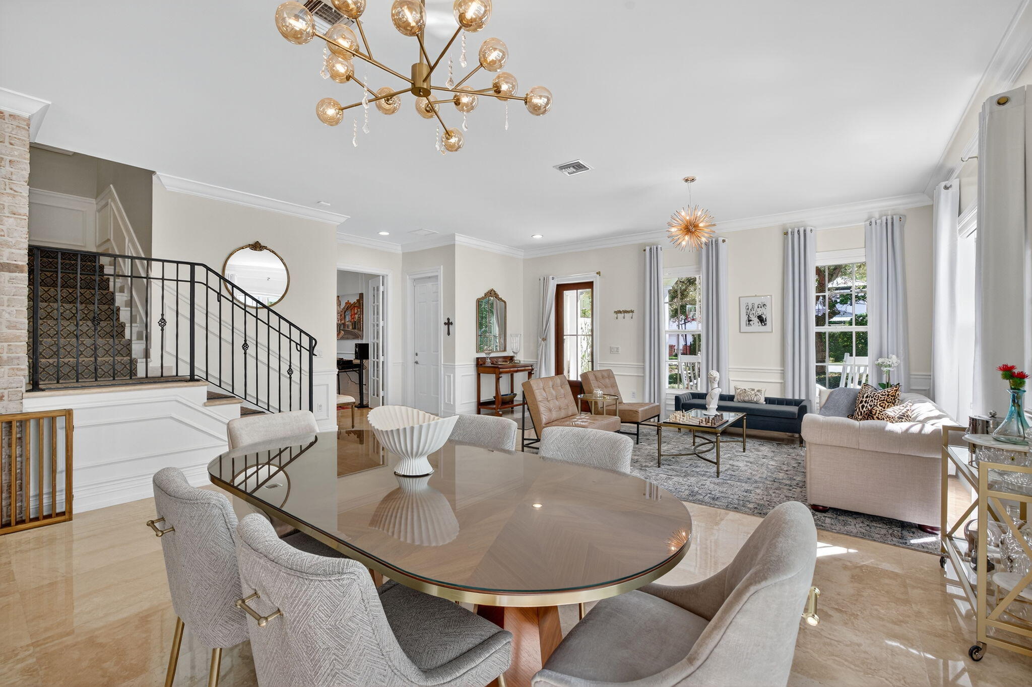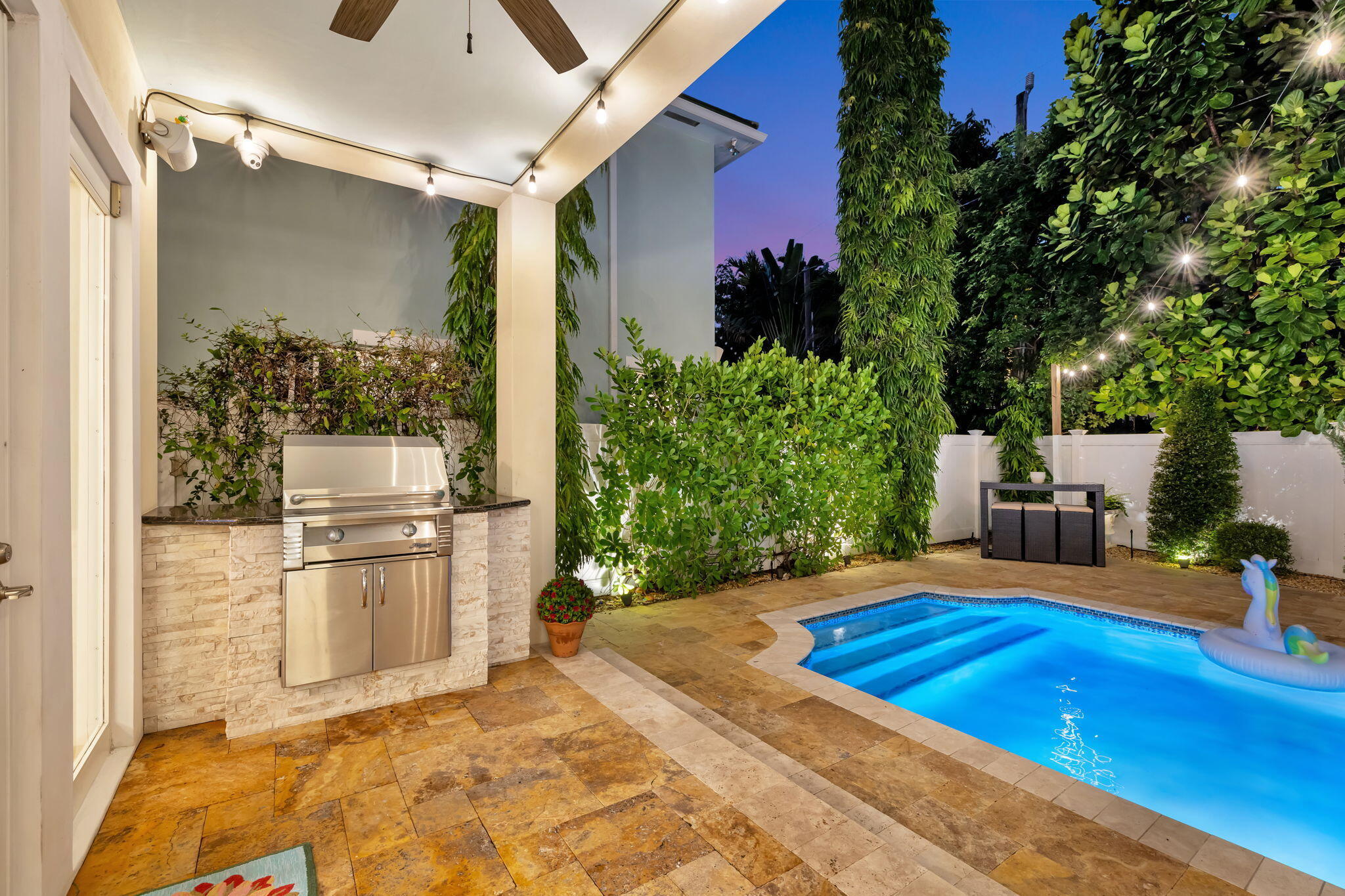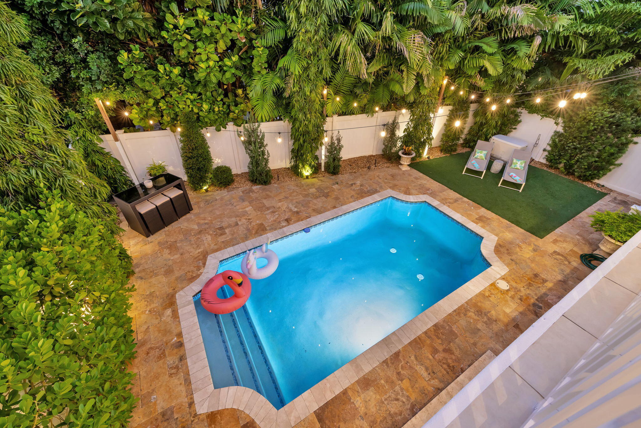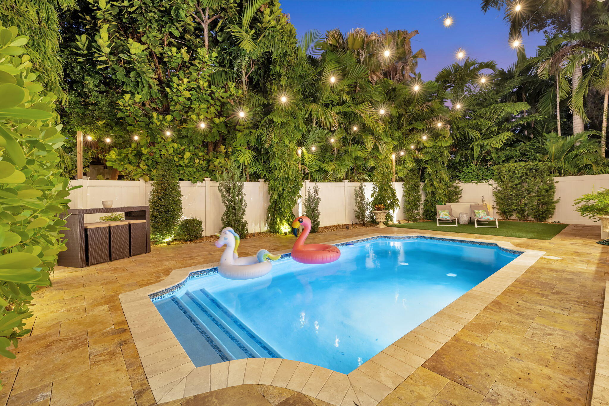 Elevated living in coveted Rio Vista awaits! Gorgeous 5 bedroom 4.5 bath offers elegant charm and luxurious living. Think sunlit living room/dining flowing into an open luxurious chef's kitchen and second living area. Kitchen features upgrades galore including quartz counters, gas stove, high-end appliances, Kitchen nook with views of the pool. 1st floor Bedroom/Flex Space, laundry and half bath. 2nd floor Ultra Private Primary suite with ensuite bath featuring soaking tub, separate shower, water closet, balcony overlooking pool. Additional 3 bedrooms each with ensuite baths. The fenced backyard with pool, bbq, covered patio. Turf front/backyard, generator, impact windows, 2 car garage. Make this Rio Vista charmer with designer touches your new home.