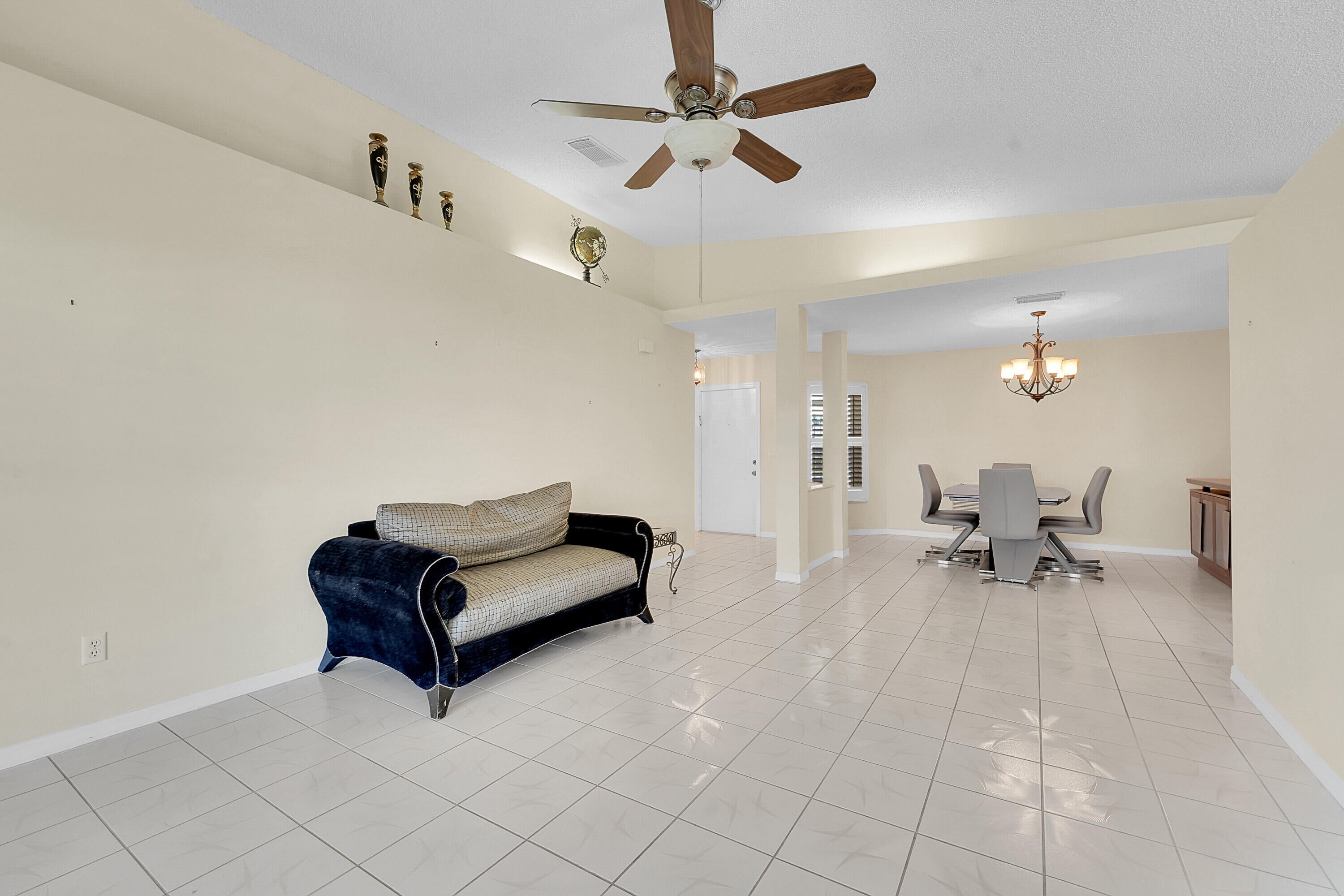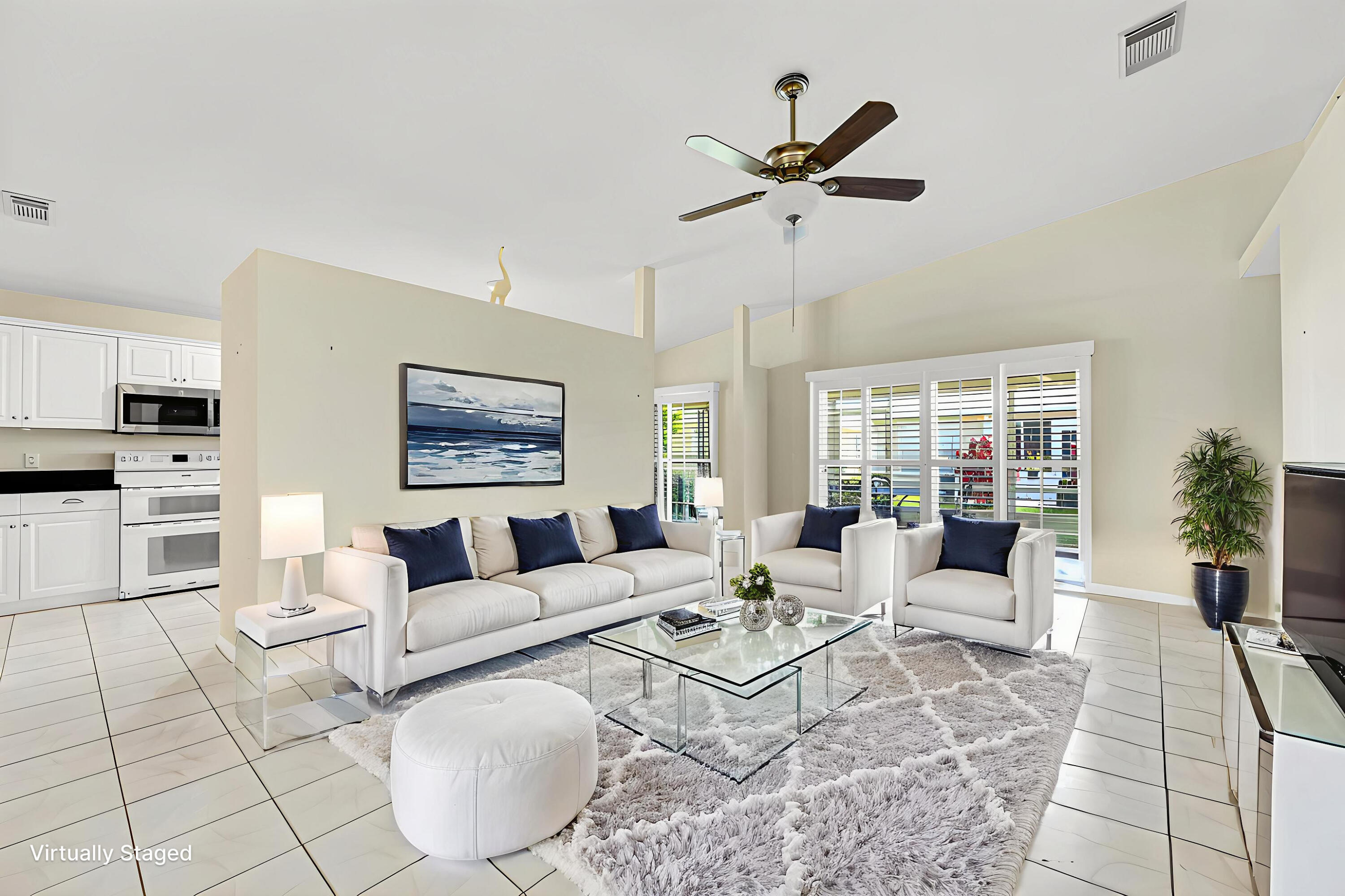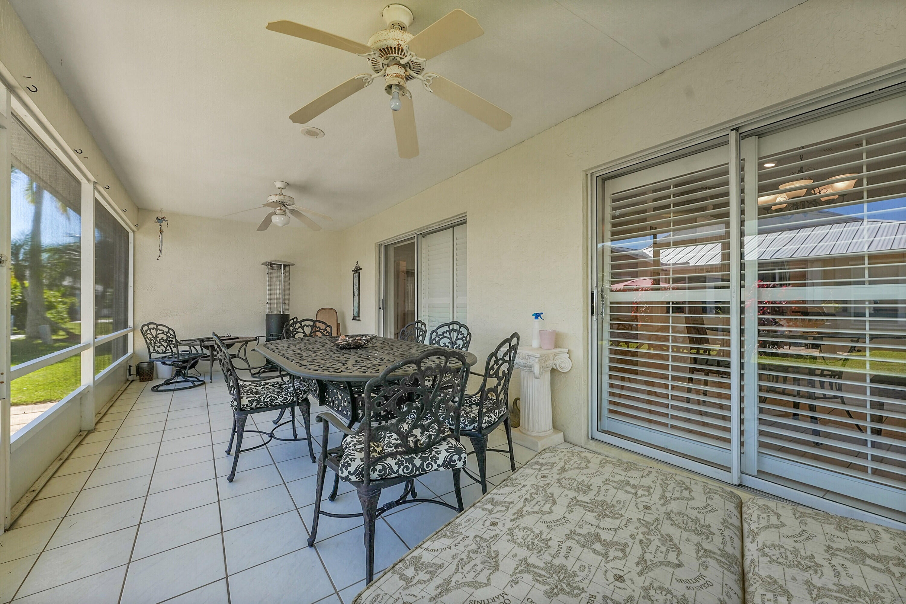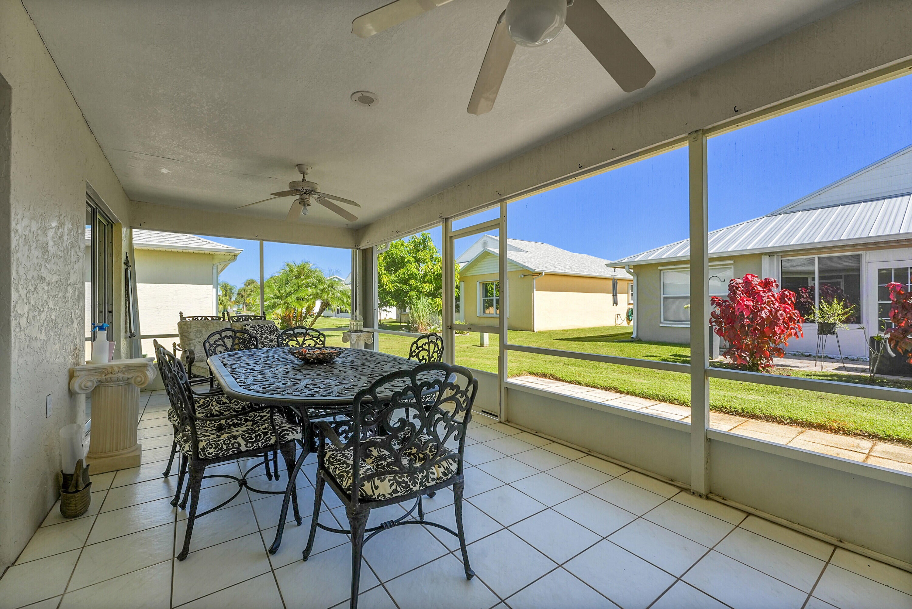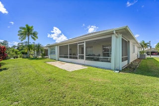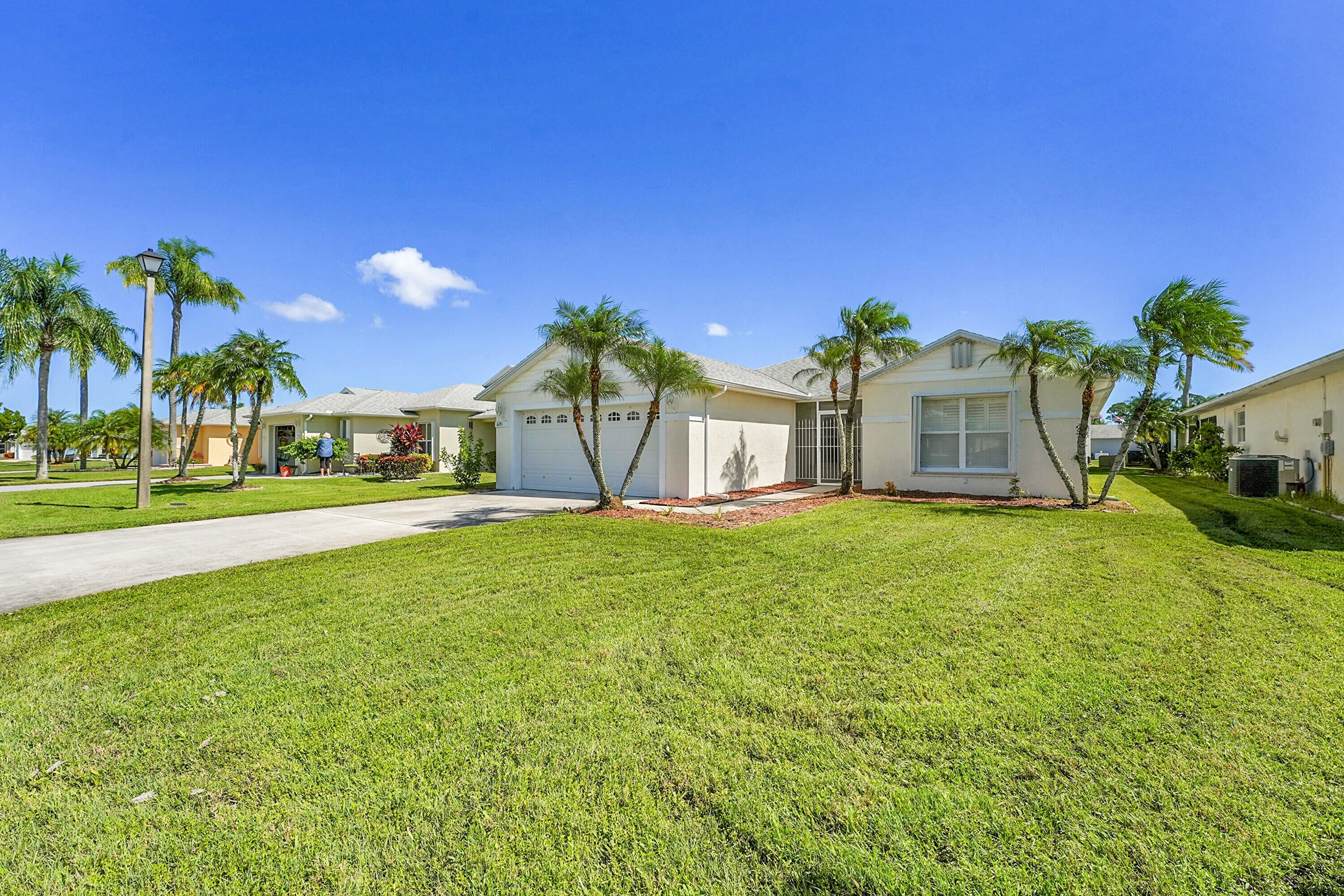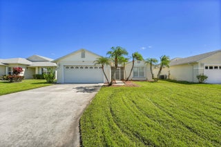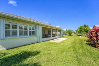 Don't miss this beautifully updated 3BR/2BA CBS home in the sought-after 55+ gated community of Palm Grove. Featuring a bright, open floor plan with tiled floors throughout, this single-level home offers a spacious kitchen with granite countertops, lots of storage & SS smart fridge. The primary suite includes a walk-in closet and ensuite bath. Enjoy outdoor living on the large screened patio. Complete with a 2-car garage and indoor laundry room with sink. Accordion shutters all around including the entire exterior of the screened patio for added peace of mind. Enjoy 24/7 security, pool, tennis, pickleball, bocce, fitness center, clubhouse, social events, and more. Only minutes from shopping, dining, and beaches.