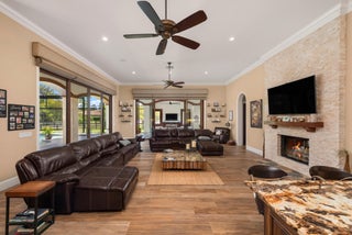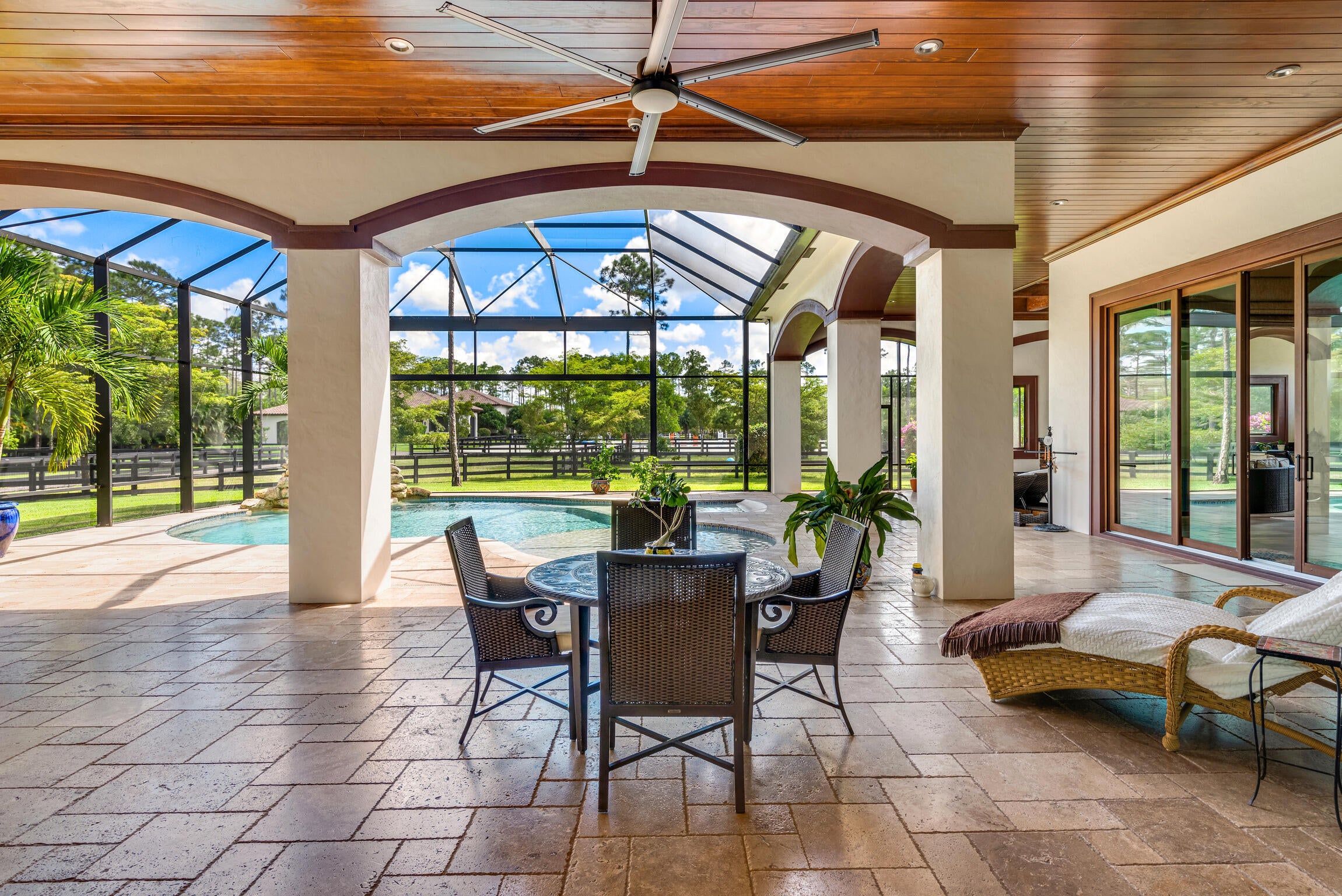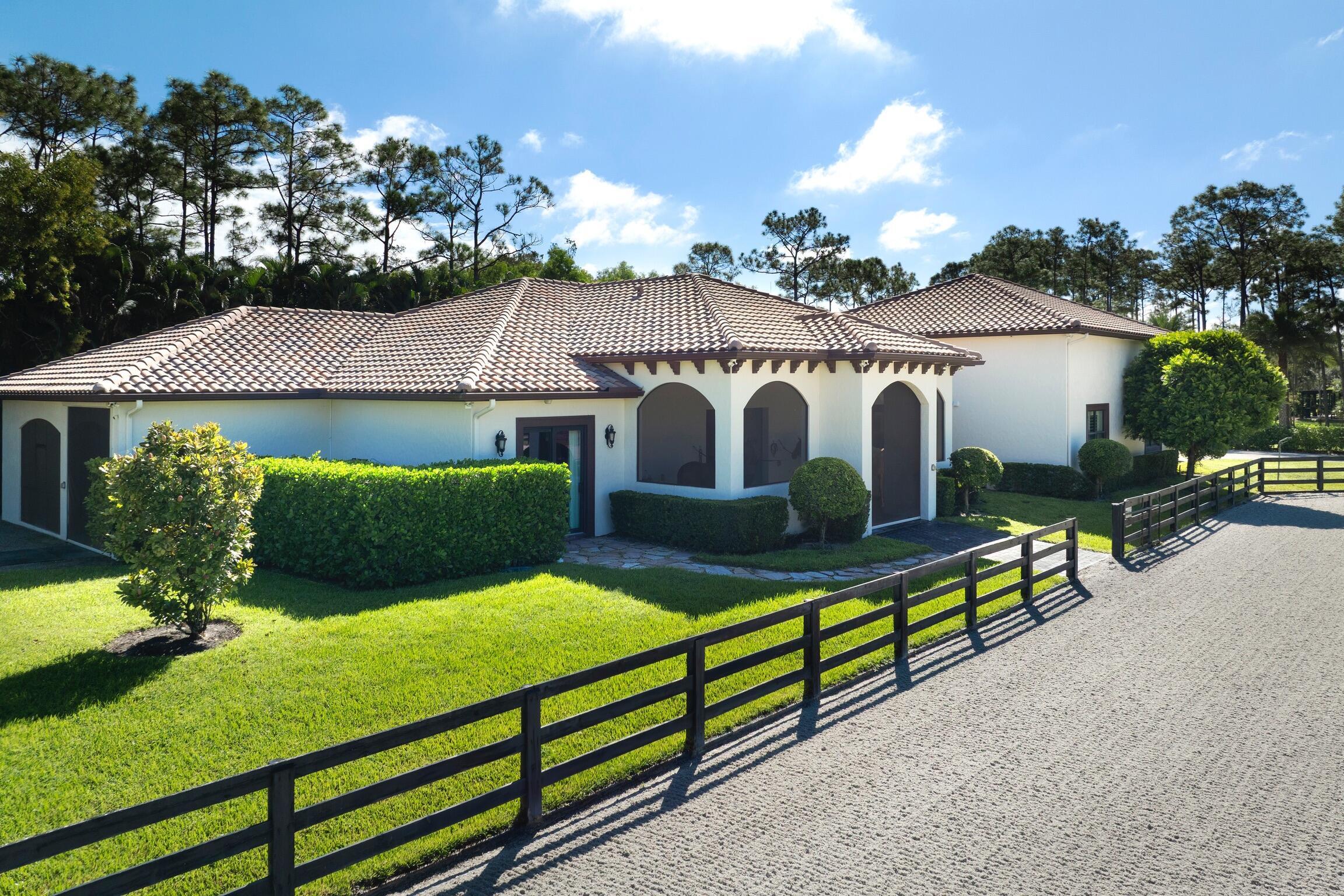 Custom-Built Contractor's Dream Equestrian Estate - Designed for Living, Built to Last. This is not your average home--this is a custom-built masterpiece crafted by a professional contractor for his own family, with no shortcuts taken and no detail overlooked. Every inch of the property reflects superior craftsmanship and the kind of quality you only get when the builder is also the owner. This beautiful 5-acre equestrian estate is located within minutes to all of Wellington's equestrian venues! Featuring 5 bedrooms plus office, 5 bathrooms and 5629 square feet of meticulously designed living space, this home blends functionality with luxury. From the moment you step inside, you'll notice the thoughtful floor plan and custom features throughout.The gourmet kitchen is a chef's dream, complete with 2 oversized islands, custom cabinetry, premium appliances, granite countertops and a walk-in pantry. The spacious primary suite includes custom wood beams in the ceiling detail, 2 walk in closets and a spa like bathroom with a 2 person jetted tub with heater, 2 separate vanities, steam shower with 2 shower heads, an additional rain shower head, 8 body sprays & 2 folding mahogany seats. The outdoor marble paver screened patio features a heated pool with waterfall, sun shelf as well as a beach entrance. Enjoy a BBQ in the outdoor kitchen fully equipped with a grill, hood, stainless steel cabinets and appliances and even accented with a exterior gas fireplace. The stable features 7 - 14'x14' stalls (with room and plans to expand up to 12 stalls) 3 wash stalls, a large air-conditioned feed room, separate air conditioned tack room with 1/2 bath and laundry room as well as an oversized storage garage with loft and two 14' doors, perfect for RVs & horse trailers. The arena boats 175' x 185' with GGT footing.