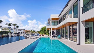 Like-new modern waterfront estate in the coveted Lake Rogers community of East Boca Raton. Built in 2024 by Elysee Homes, this exceptional residence offers 90 feet on the water with direct Intracoastal views. Elegant herringbone wood floors, designer lighting, and a sleek chef's kitchen with Wolf gas range and integrated appliances define the interiors. Expansive pocket sliding glass doors create seamless indoor-outdoor living with pool and entertaining areas. Includes a first-floor guest suite and club room plus a stunning primary suite with dual custom closets, spa-inspired bath, and panoramic water views. Moments from the beach and close to Downtown Boca, Delray, international and private airports. A rare opportunity and property offering a lifestyle second to none.Positioned on 90 feet of prime waterfront, the home enjoys breathtaking direct Intracoastal views and an effortless connection to the outdoors. Expansive pocket sliding glass doors vanish completely, blending the refined interiors with a resort-style exterior featuring a stunning pool, summer kitchen, covered entertaining areas, and a private dock. Inside, timeless sophistication meets contemporary design through herringbone wood flooring, custom lighting, and an open layout ideal for elegant entertaining. The chef's kitchen showcases custom millwork, modern countertops, integrated top-tier appliances, and a Wolf gas range, designed for those who appreciate style and performance. Two car garage with electric vehicle charger plus decorative driveway allow for ample parking. The main level includes a guest suite and a club room, while the upper level is anchored by a spectacular primary suite with dual custom closets, a spa-inspired bath, and sweeping Intracoastal views. Every detail has been thoughtfully curated, from the architectural lines to the layered textures and lighting, creating a home that is as comfortable as it is captivating. Ideally located moments from the beach via Spanish River Boulevard, and just minutes from Downtown Boca Raton and Delray Beach, residents enjoy quick access to world-class dining, shopping, and entertainment. The home is also conveniently close to both private and international airports, offering a lifestyle of elegance and accessibility. Offered at $7,995,000, this exceptional property presents a rare opportunity to own a newly built waterfront estate in one of Boca Raton's most desirable neighborhoods a home that truly delivers a lifestyle second to none.
