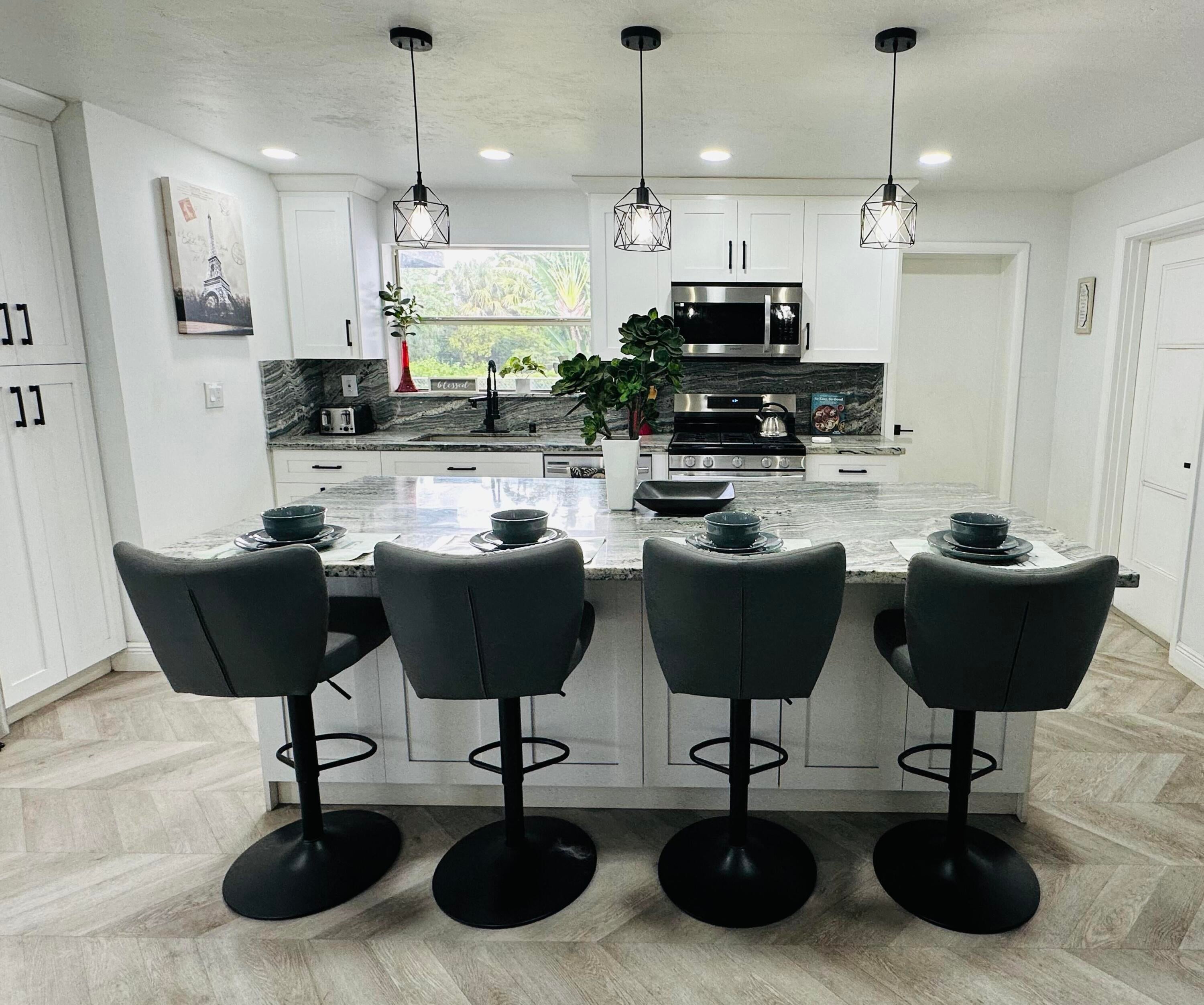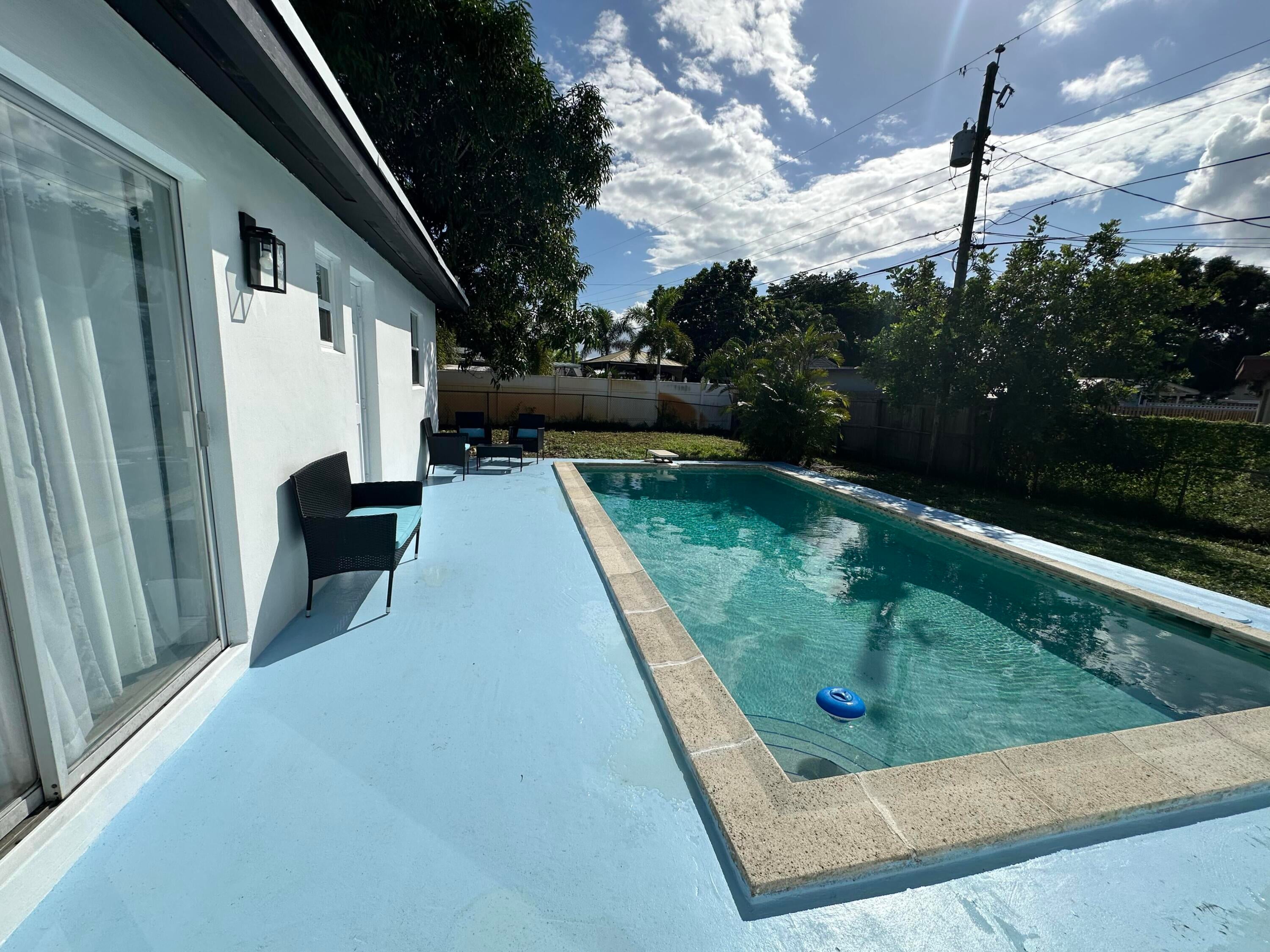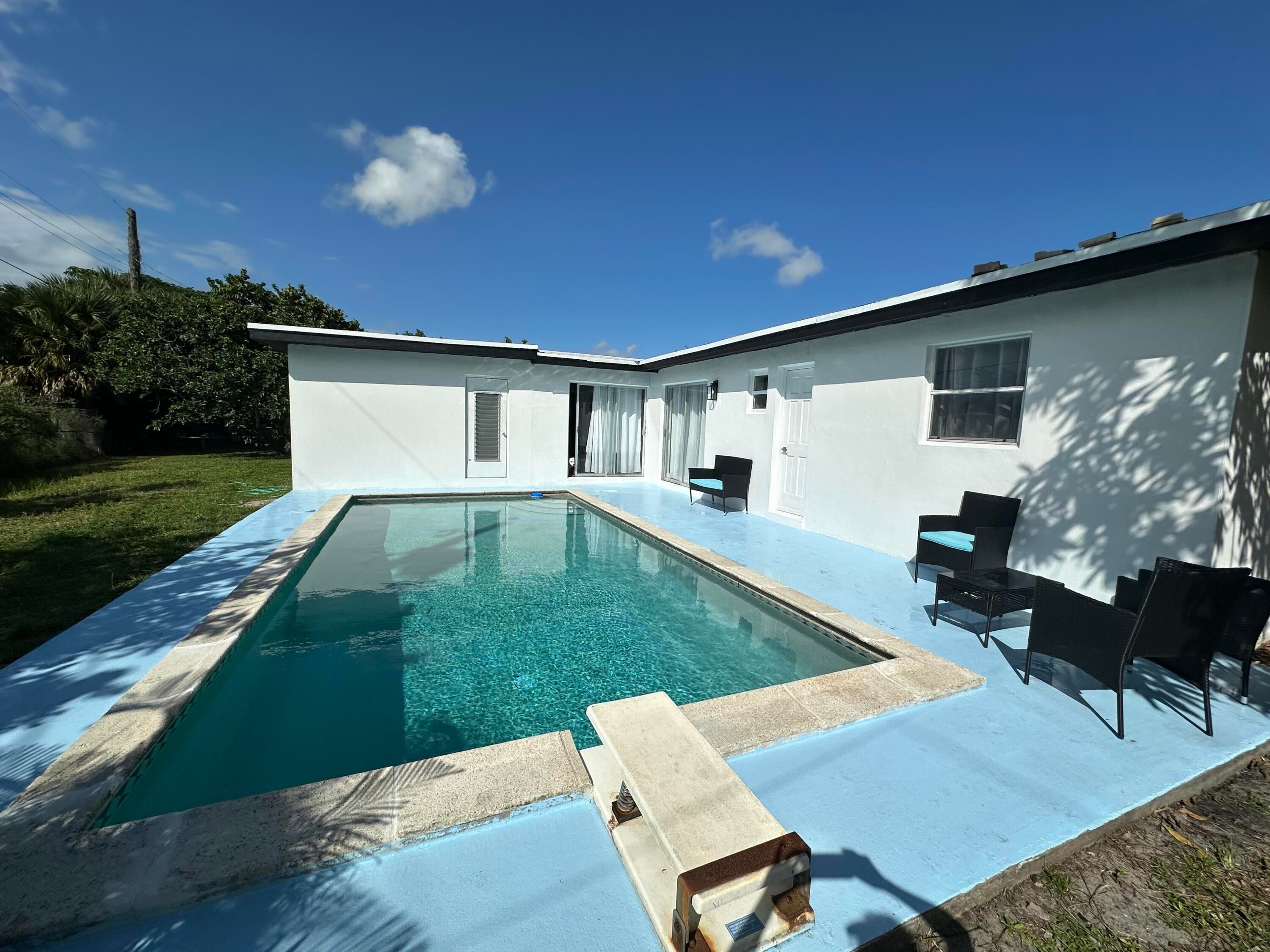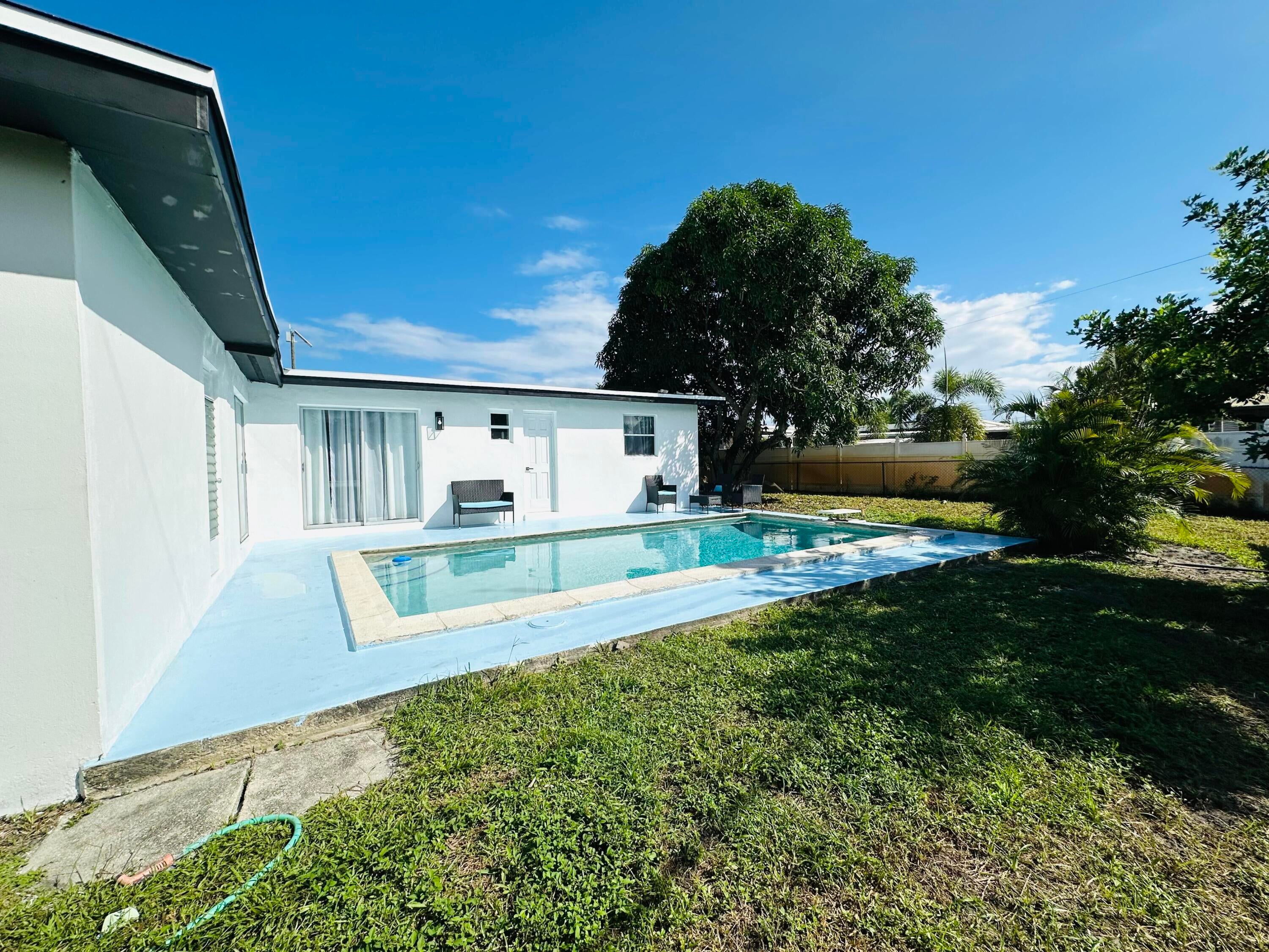 Completely remodeled open concept home in move in condition. It's the biggest house in this neighborhood with over 2200 LSF. New roof 12/24 and new AC system 6/23. Large windows and 2 sets of sliding doors provide tons of natural light. The remodeled kitchen boasts, new skaker cabinets, stainless steel appliances, granite countertops with a huge island 9FT long. Remodeled bathrooms have beautiful tile work from floor to ceiling, hallway bath also opens to the pool. There is a living room, dinning area and an extra large family room that can be used as an office or 4th bedroom. Previous owner converted gargage to a workshop, can be used as a mother in law suite. Large fenced yard with mango and avocado trees. 20 min to the beach, DTWPB & PBI and 8 min to Shark Wake Park and NO HOA!