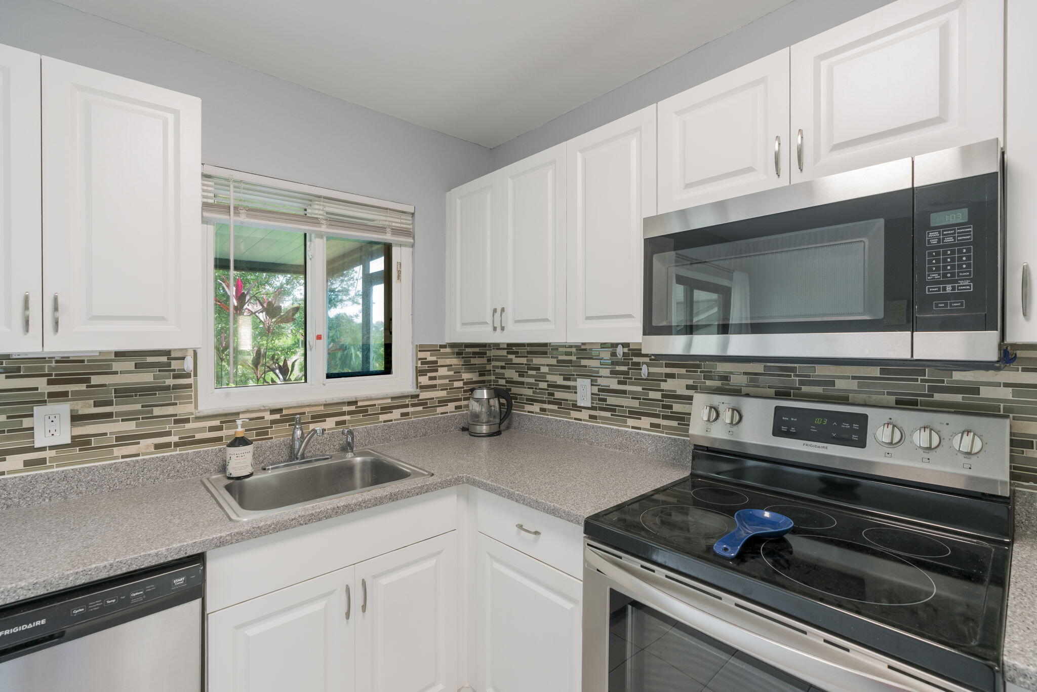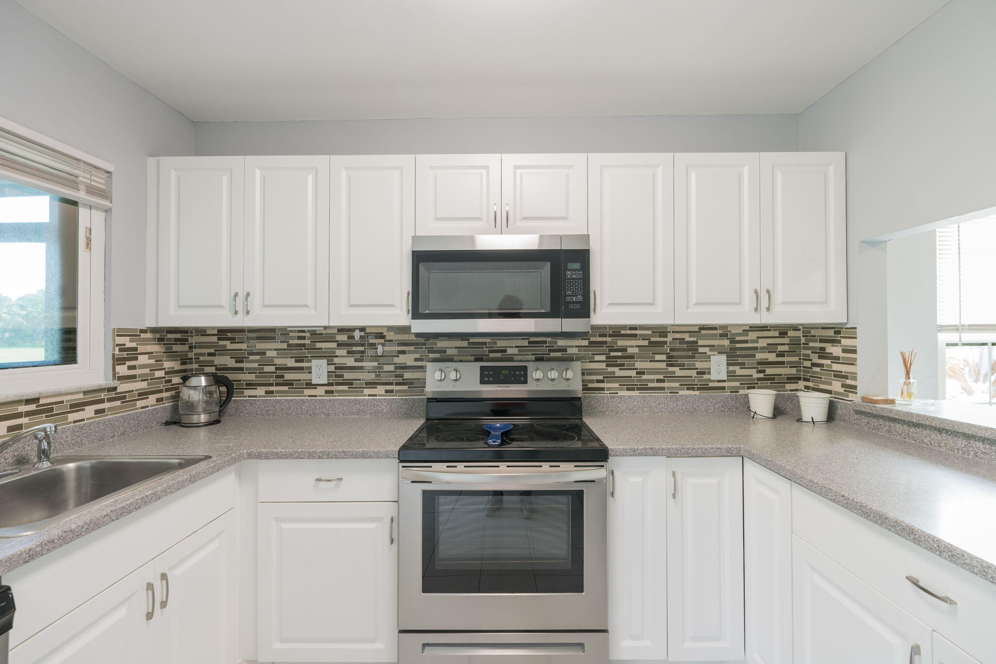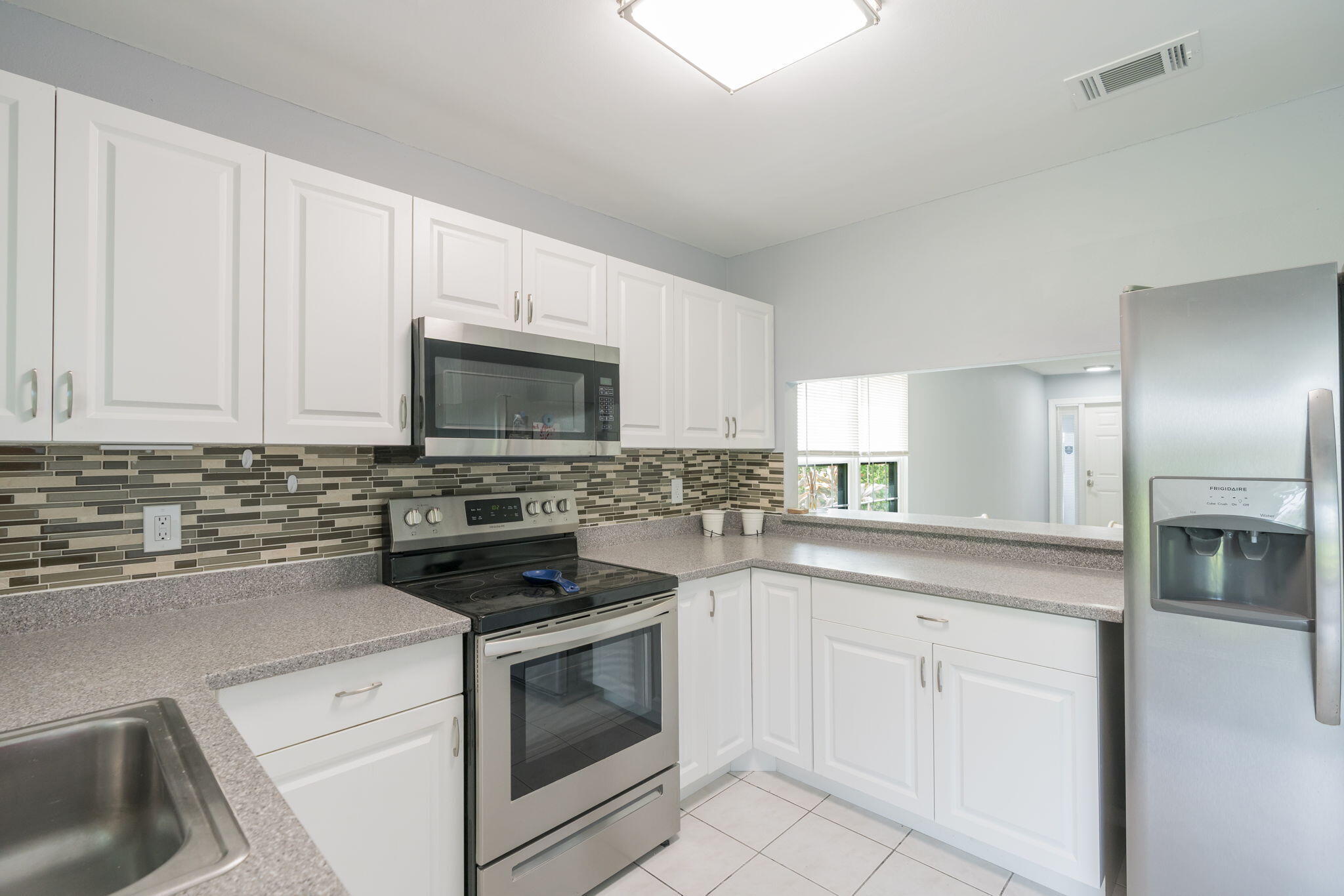 Welcome Home to The Villas of Windmill.This move-in-ready three-bedroom, two-bath corner villa has been thoughtfully updated for comfort, efficiency, and peace of mind. Notable features include impact windows and an impact-rated front door (2021), a durable metal roof (2020), and a fully remodeled kitchen with new cabinets, counters, and appliances. The home also includes a whole-house water softener, new A/C and condenser with pad (2023), new hot water heater, washer and dryer inside the unit, and freshly updated landscaping. Residents enjoy a low HOA of only $124 per month, a community pool just steps away, two assigned parking spaces. No pick up trucks over 1 ton.