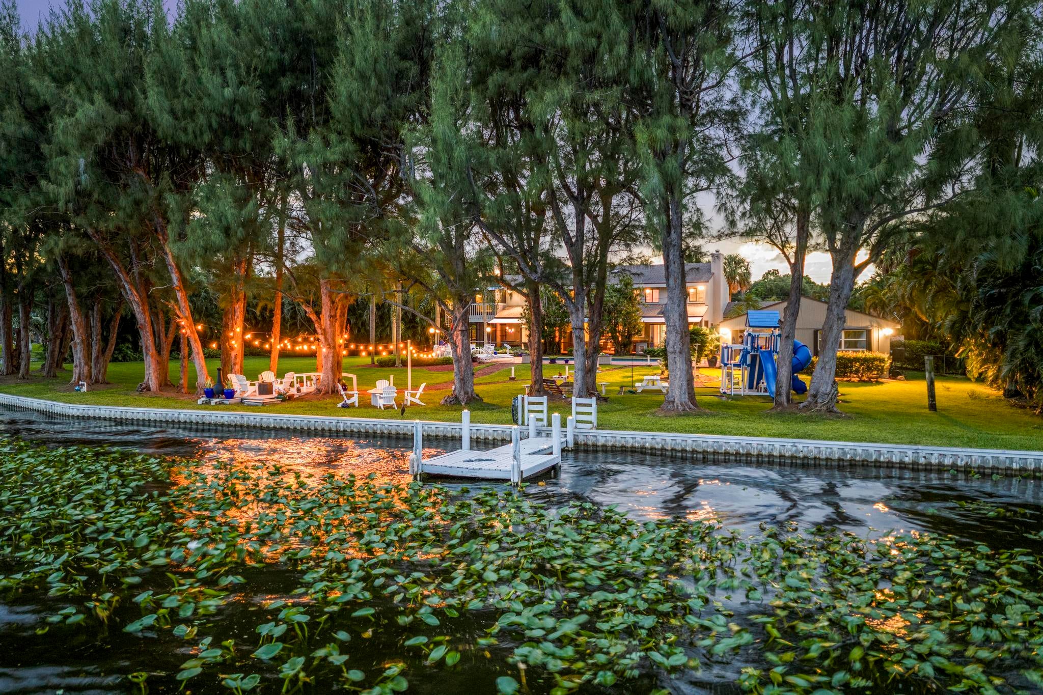 Introducing an unprecedented offering in Lake Clarke Shores, a once-in-a-lifetime opportunity to own an estate set on three combined lots totaling 1.7 acres (74,052 SqFt) with the largest freshwater lake frontage in Lake Clarke Shores. Surrounded by mature vegetation and expansive water views, this residence offers the ultimate in privacy, seclusion, and lifestyle. With miles of navigable boating to the north and south, plus a private dock and seawall, the property provides unmatched access to one of South Florida's most unique freshwater waterways. At the heart of the estate stands a 6,054 Total SqFt traditional home, designed with timeless craftsmanship and modern functionality.Inside, you will find 6 bedrooms and 4.5 bathrooms, high ceilings, and dramatic living spaces with panoramic lake views from nearly every room. Highlights include a grand foyer with over 17-foot ceilings; a living room and formal dining room with tray ceilings; a family room with 8-foot sliding pocket doors, plantation shutters, a fireplace; and a chef's kitchen featuring granite countertops, double sinks, Sub-Zero refrigerator, double oven, gas stove, and cabinets with plenty of storage space. The main level also includes a primary suite option with private exterior access, ideal for an in-law suite. Upstairs, the second primary suite offers vaulted ceilings, dual closets, and sliding doors that open to a private deck with stunning lake views and a beautiful spiral staircase that leads to the breathtaking backyard. The luxurious en-suite bath features a soaking tub, a large shower with dual shower heads, and double vanities. The residence also features 4 spacious bedrooms upstairs, 3 of which boast direct water views. For added convenience, the laundry room, complete with a wash tub, is located upstairs. The outdoor living is equally impressive, with a screened patio running the length of the home, an expansive backyard with an oversized pool, and plenty of space for kids to play, to entertain, to garden, and so much more. Adding to the estate's versatility is an air-conditioned guesthouse totaling 961 SqFt, complete with its own kitchen, full bath, walk-in closet, laundry room, covered patio, outdoor shower, and water views. It is ideal as a guest retreat, game room, private studio, pool house, or man cave. Set within the exclusive Lake Clarke Shores community, residents enjoy the charm of a small-town atmosphere, a private police department, an active multigenerational lifestyle, and an unbeatable location just minutes from the Island of Palm Beach, pristine beaches, the Intracoastal waterway, downtown West Palm Beach, and premier shopping, dining, and schools. A property of this caliber, never before listed, is more than a home; it is a legacy estate and a rare opportunity to own one of the most exceptional pieces of real estate in Palm Beach County.