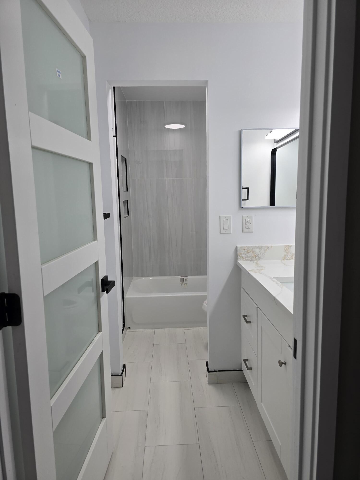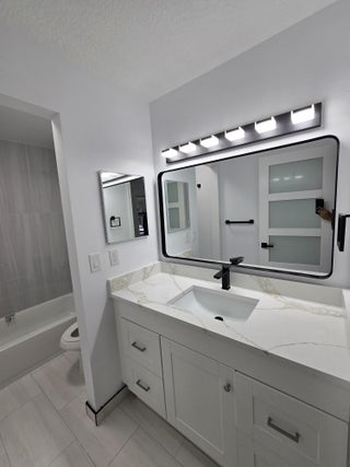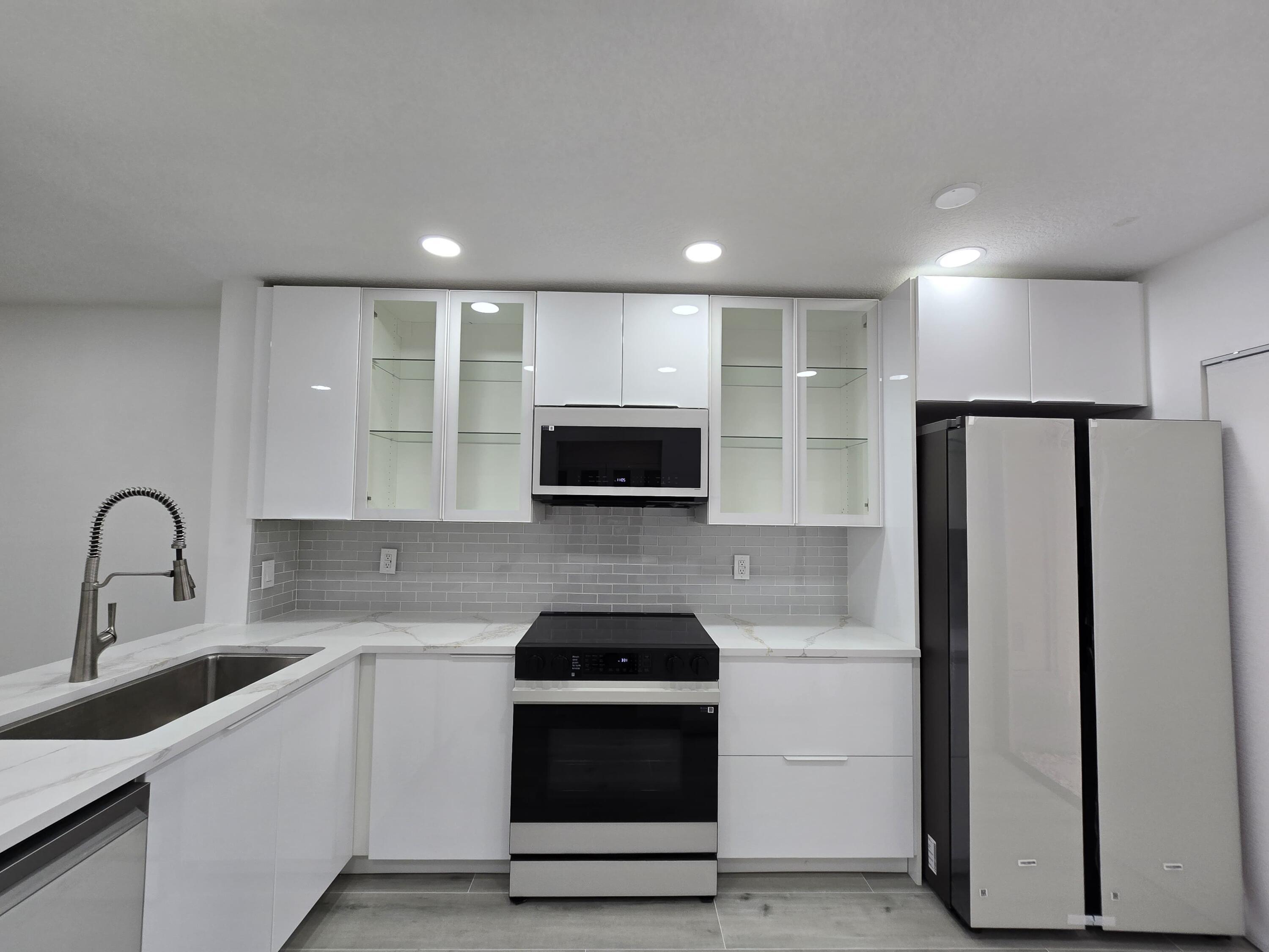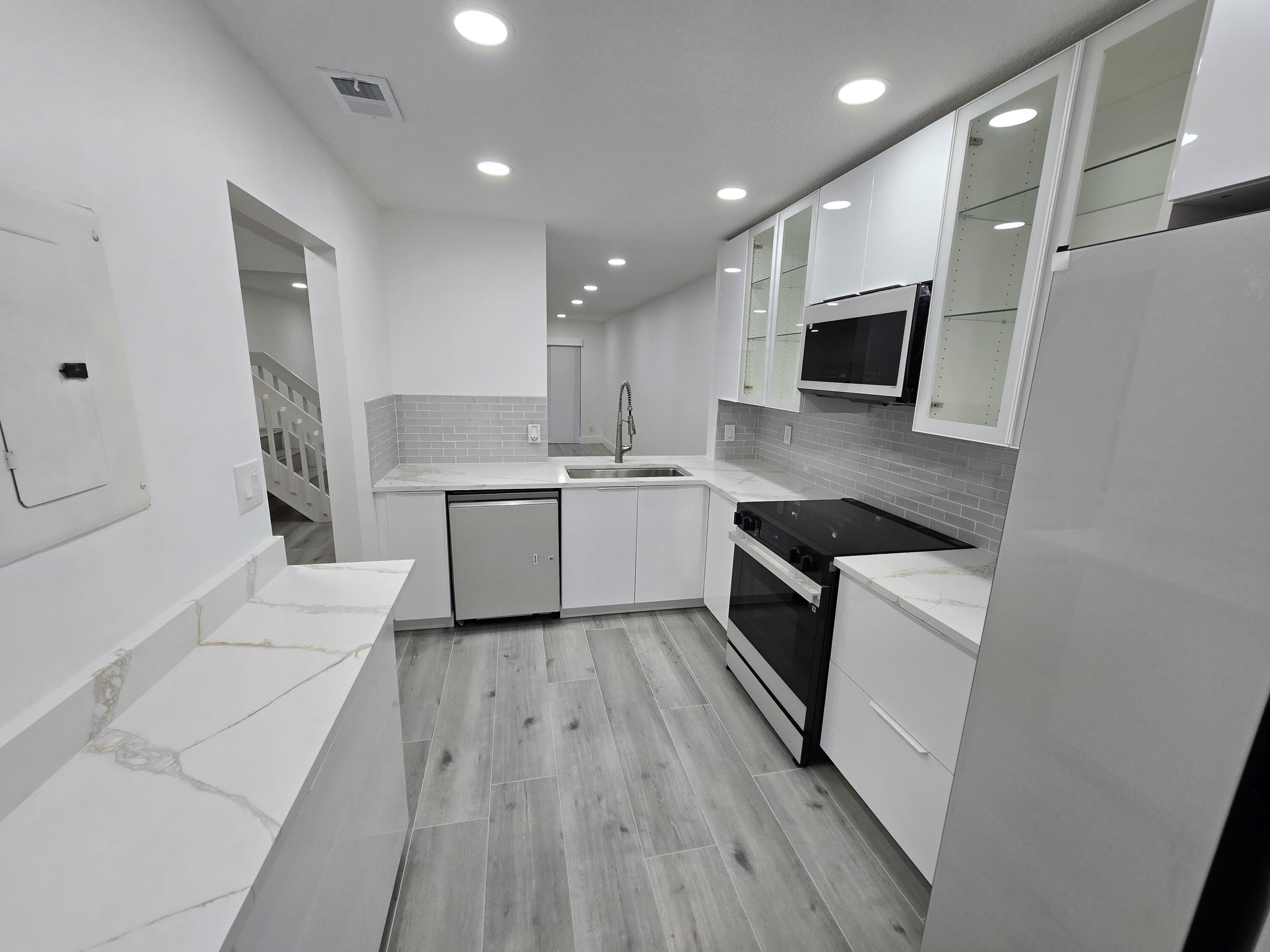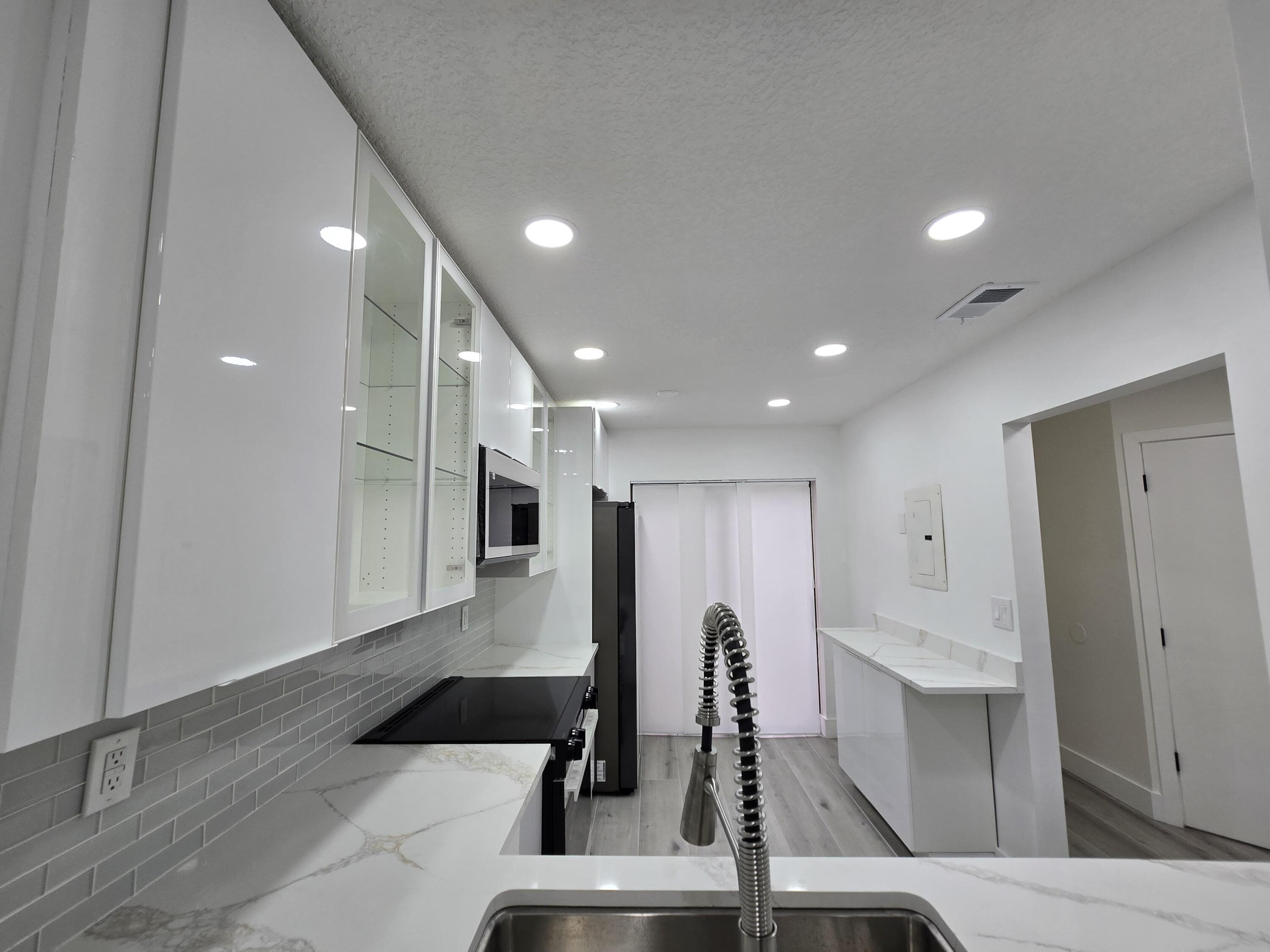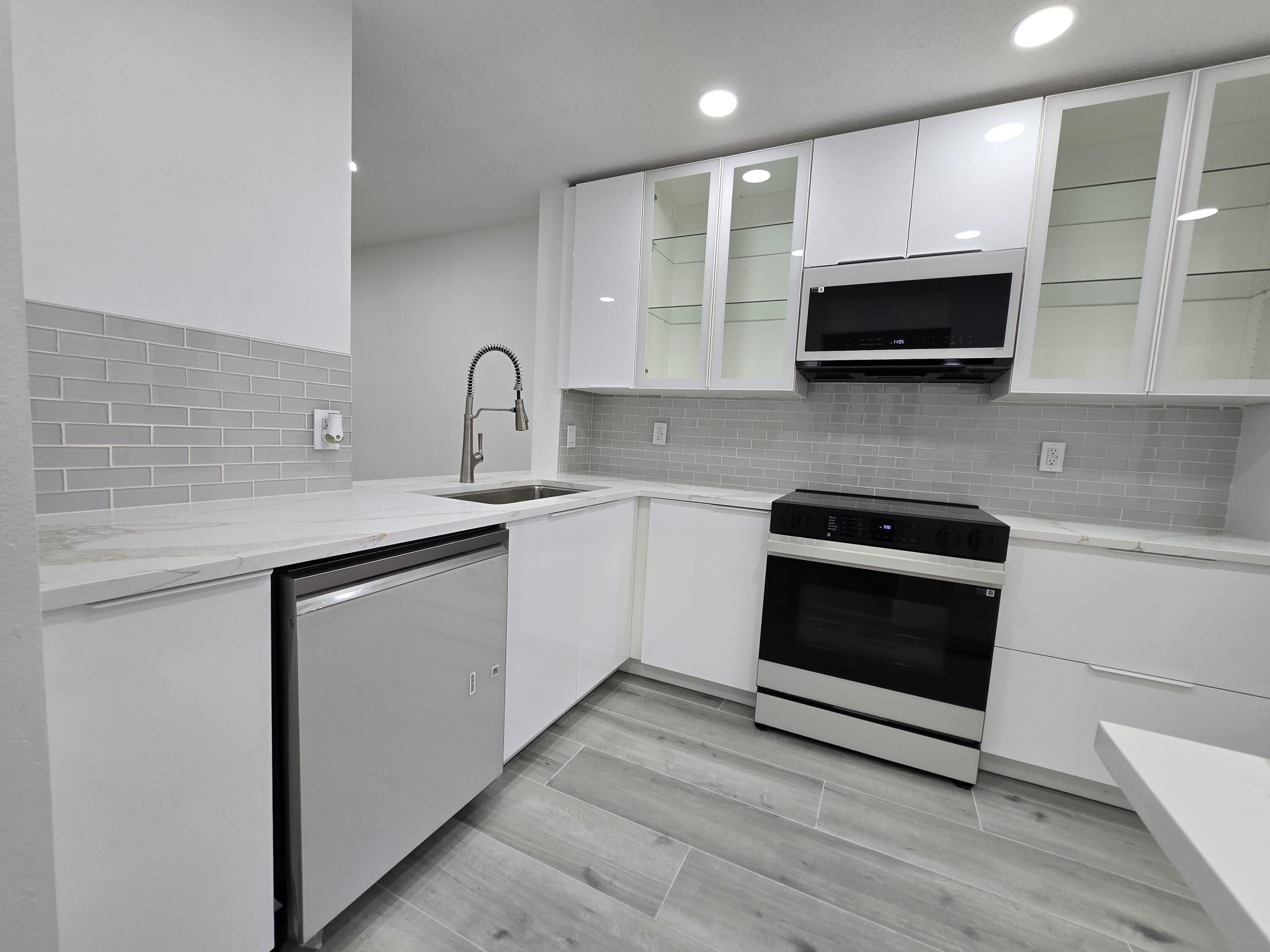 Fully remodeled 2 bedroom, 2.5 bathroom pond view townhouse in The Township, Coconut Creek, featuring modern upgrades throughout including luxury flooring, recessed lighting, and an open living and dining area. The brand new kitchen offers sleek white cabinetry, quartz countertops, glass-front cabinets, subway tile backsplash, and new appliances, perfect for everyday cooking and entertaining. Both bathrooms are updated with stylish finishes, and the bright open layout creates a spacious, move-in ready home. The Township enjoy resort-style amenities including pool,clubhouse, fitness center, tennis, basketball, racquetball, and walking trails, all just minutes from shopping, dining, highways, and top schools. This Coconut Creek Townhouse combines modern design, a serene pond view, and unbeatable community amenities.