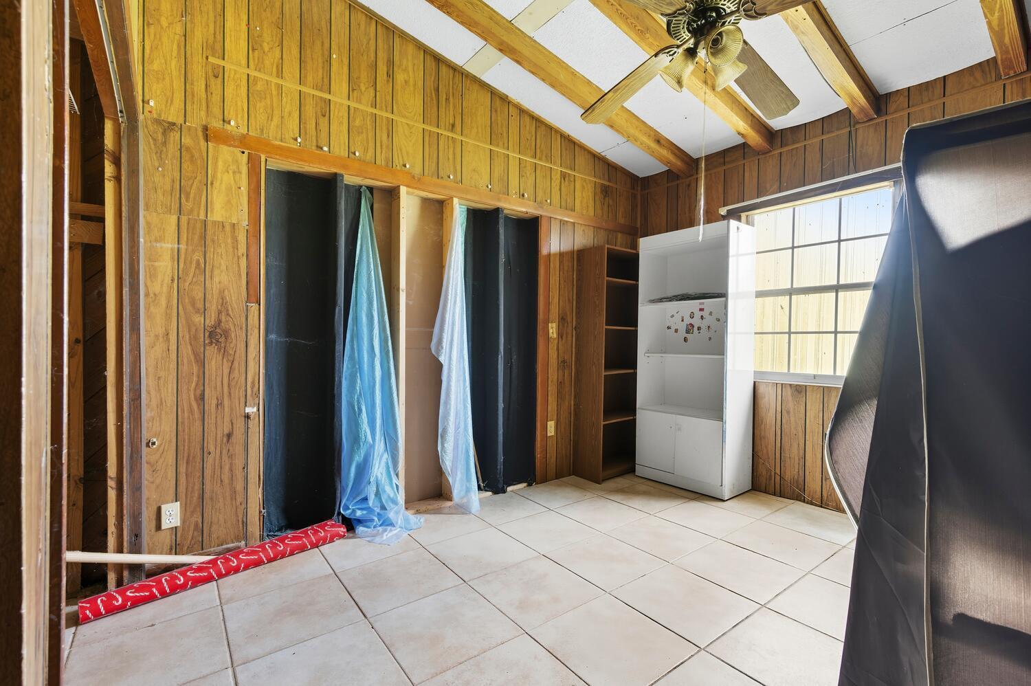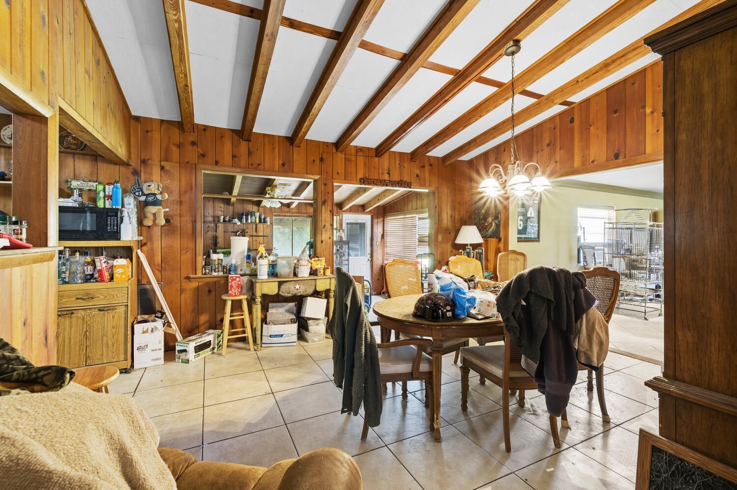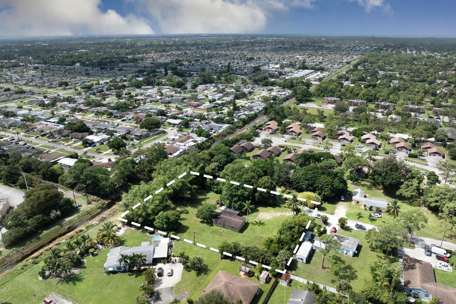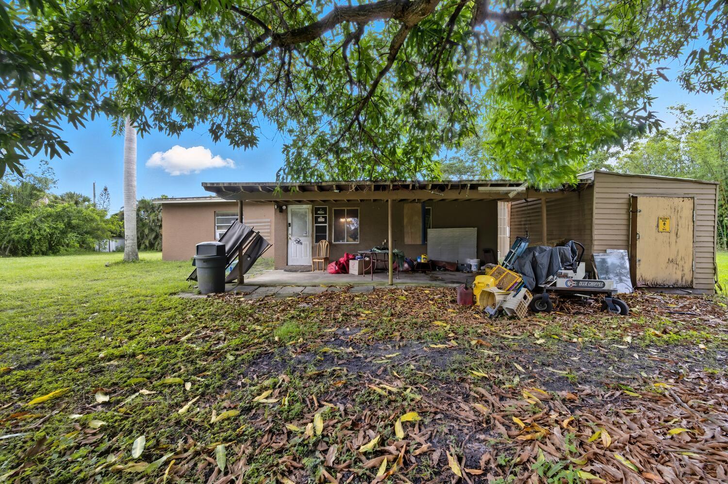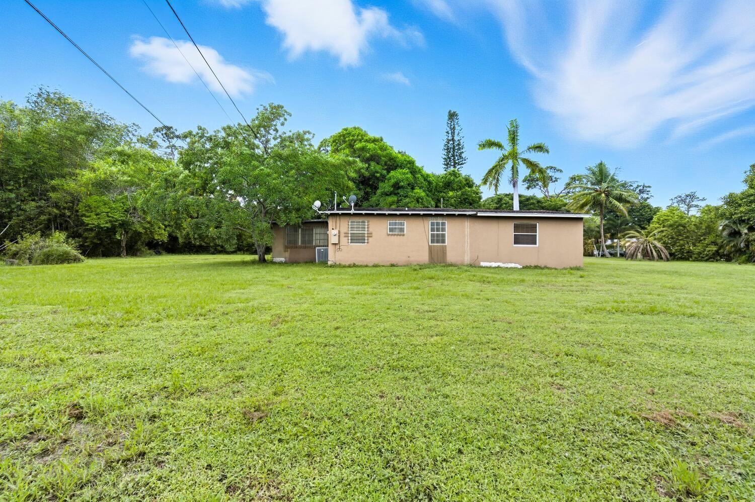 MAJOR INVESTMENT OPPORTUNITY! Nestled at the end of a quiet cul-de-sac, sits this unique property with nearly a full acre of land at .97 acres. This expansive property is zoned multifamily, offering endless potential to build multiple units such as duplexes, triplexes, quadplexes or simply enjoy the extra space for your own use. The existing home features three bedrooms and one bathroom, with a covered patio that can also be used as a carport, plus an attached shed for convenient storage. Step through the covered front entry into the welcoming foyer and front sitting room, where tile flooring extends throughout the home. The foyer flows seamlessly into an impressive formal dining room, featuring soaring ceilings, rustic exposed beams, and an a chandelier. To the left, you'll find an expansive living room filled with natural light, a spacious addition enhanced with crown molding and recessed lighting. On the right, the kitchen boasts stainless steel appliances and leads directly to the master suite, which includes a private entrance for added convenience. Beyond the dining room, a full bathroom is centrally located near two well-sized bedrooms, each with vaulted ceilings that add a sense of openness and charm. The lot is fully fenced with a gated entrance and surrounded by beautiful mature trees that provide shade and privacy, including a mango tree. NO HOA! Bring your RV, boats, vehicles, motorcycles, and even equipment, perfect for investors, business owners, or anyone needing extra space. Located in a highly desirable area close to everything, just minutes from downtown West Palm Beach, Lake Worth, Palm Beach International Airport, and the beautiful South Florida beaches. Enjoy quick access to I-95, shopping centers, restaurants, hospitals, and entertainment. Now is the perfect time to buy as land of this size and zoning in such a prime location is becoming harder to find. Whether you're looking to expand your investment portfolio, develop multifamily housing, or simply enjoy a large private property close to everything, this is a rare find with tremendous value and opportunity for growth. Don't miss your chance to own one of the largest and most versatile lots in the area!