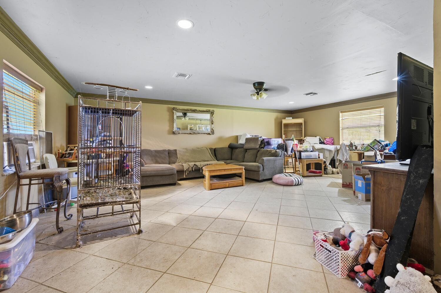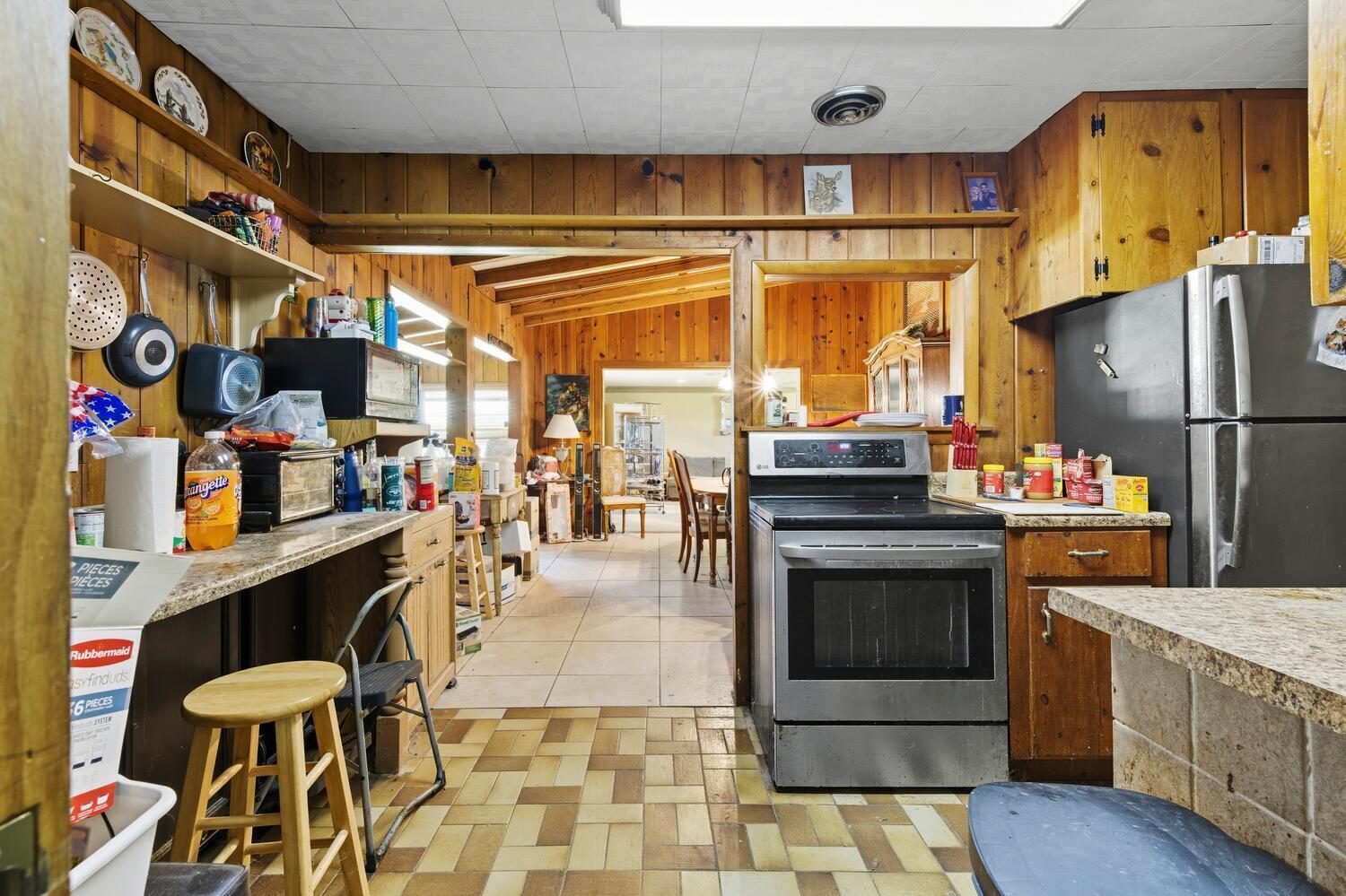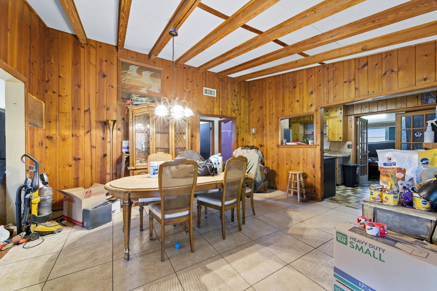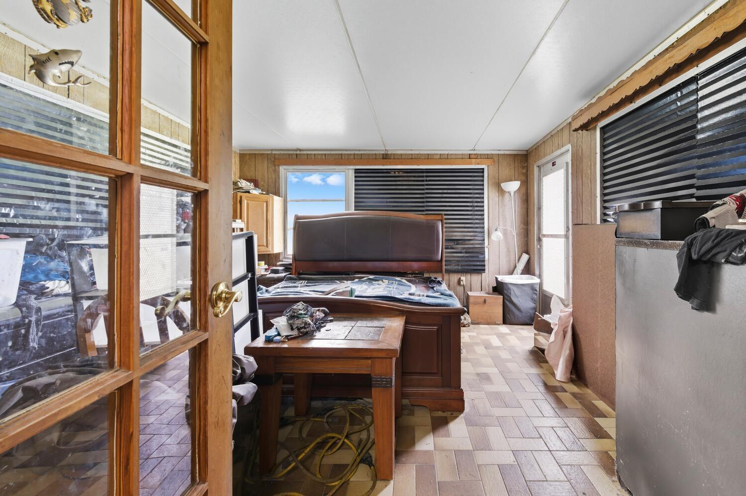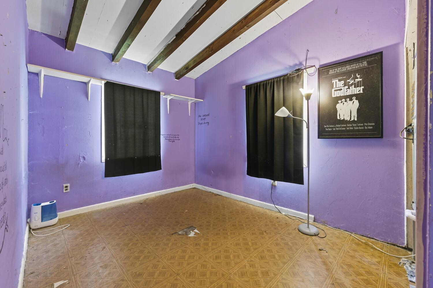 MAJOR INVESTMENT OPPORTUNITY! Nestled at the end of a quiet cul-de-sac, sits this unique property with nearly a full acre of land at .97 acres. This expansive property is zoned multifamily, offering endless potential to build multiple units such as duplexes, triplexes, quadplexes or simply enjoy the extra space for your own use. The existing home features three bedrooms and one bathroom, with a covered patio that can also be used as a carport, plus an attached shed for convenient storage. Step through the covered front entry into the welcoming foyer and front sitting room, where tile flooring extends throughout the home. The foyer flows seamlessly into an impressive formal dining room, featuring soaring ceilings, rustic exposed beams, and an a chandelier. To the left, you'll find an expansive living room filled with natural light, a spacious addition enhanced with crown molding and recessed lighting. On the right, the kitchen boasts stainless steel appliances and leads directly to the master suite, which includes a private entrance for added convenience. Beyond the dining room, a full bathroom is centrally located near two well-sized bedrooms, each with vaulted ceilings that add a sense of openness and charm. The lot is fully fenced with a gated entrance and surrounded by beautiful mature trees that provide shade and privacy, including a mango tree. NO HOA! Bring your RV, boats, vehicles, motorcycles, and even equipment, perfect for investors, business owners, or anyone needing extra space. Located in a highly desirable area close to everything, just minutes from downtown West Palm Beach, Lake Worth, Palm Beach International Airport, and the beautiful South Florida beaches. Enjoy quick access to I-95, shopping centers, restaurants, hospitals, and entertainment. Now is the perfect time to buy as land of this size and zoning in such a prime location is becoming harder to find. Whether you're looking to expand your investment portfolio, develop multifamily housing, or simply enjoy a large private property close to everything, this is a rare find with tremendous value and opportunity for growth. Don't miss your chance to own one of the largest and most versatile lots in the area!