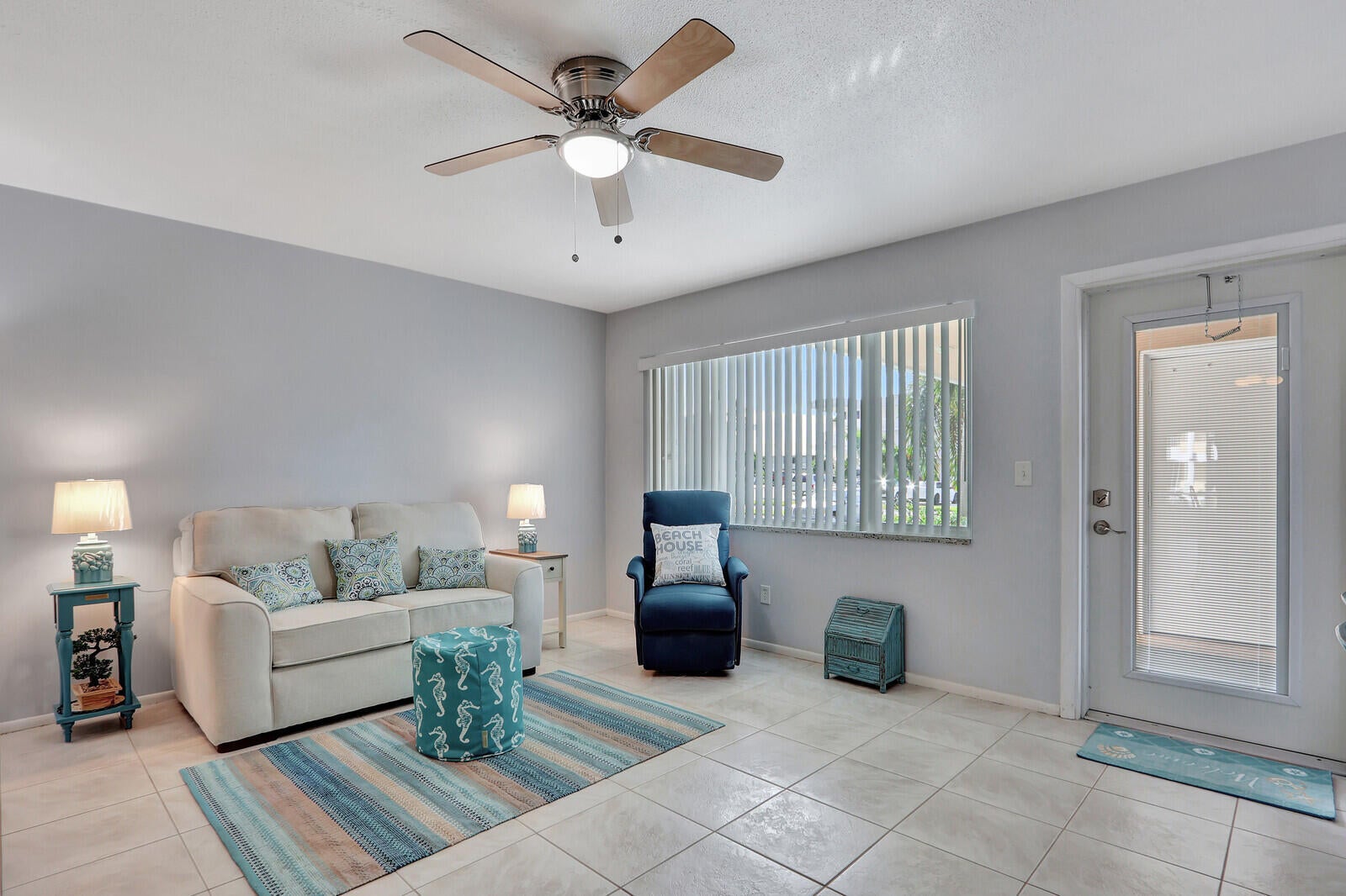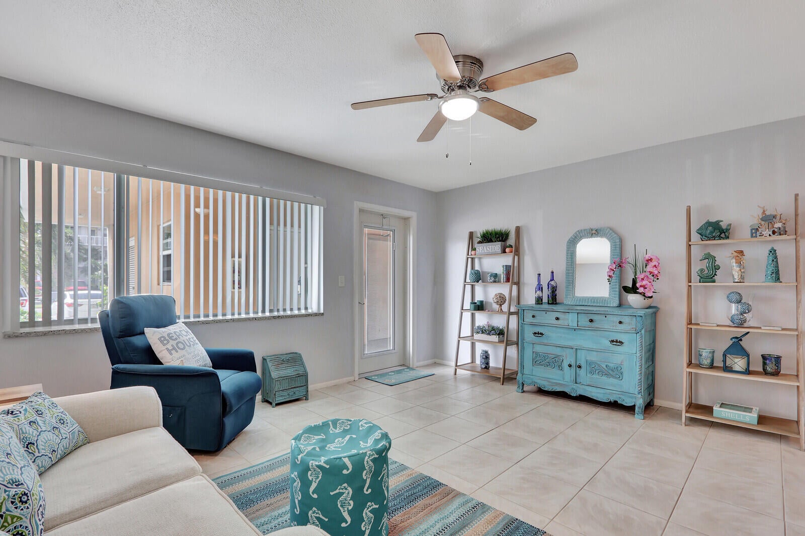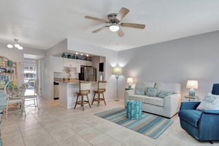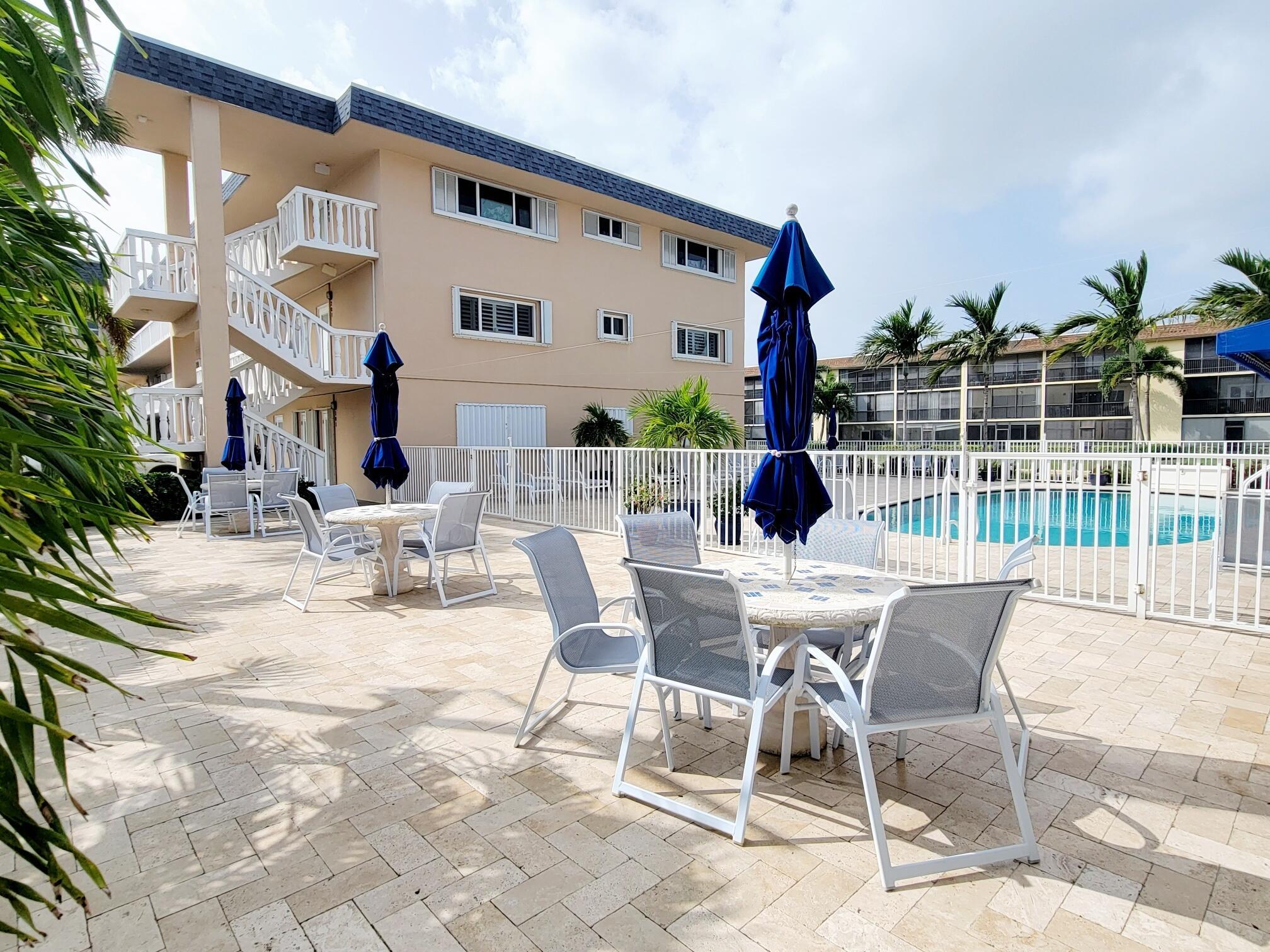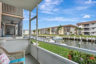 Age 55+, this is only for you! Winter in paradise! Beautifully renovated, ground floor, 1br 1 ba, located in a sought after 55+ waterfront community. This condo feels light & airy, with a kitchen that was redesigned to create an open floorplan. Updates include kitchen cabinetry, granite countertops, stainless steel appliances, breakfast bar, tile flooring, bathroom vanity, toilet, ceiling fans & lighting. Spacious bedroom with private screened patio overlooking the canal & boats. Accordion hurricane shutters for peace of mind during storms. Impact glass front door with built-in blinds. A/C is October 2021, Water heater is October 2016. Premium location in the building, with a covered entry that keeps the front door out of the elements and provides privacy from the parking lot. >>Prime parking space right in front of the unit. Immaculate laundry room is directly across from the condo, 2 steps away. Storage closet for all your extras like luggage, holiday décor, etc. Monthly condo fee includes water & sewer, basic cable and building insurance. New owner can be put on the waitlist to rent a boat slip. Enjoy relaxed Florida living at the waterfront pool & clubhouse with friendly, fun, active neighbors. Perfect for fulltime or snowbird. This is a no pet community, however a service animal or pet with an ESA letter is welcome. Affordable living, centrally located near everything! Close to hundreds of stores & restaurants. Quick walk to Walgreens and several popular dining spots. Gorgeous Singer Island beaches are only 3 miles away. 20-minutes to Palm Beach International Airport makes traveling a breeze. Welcome home!