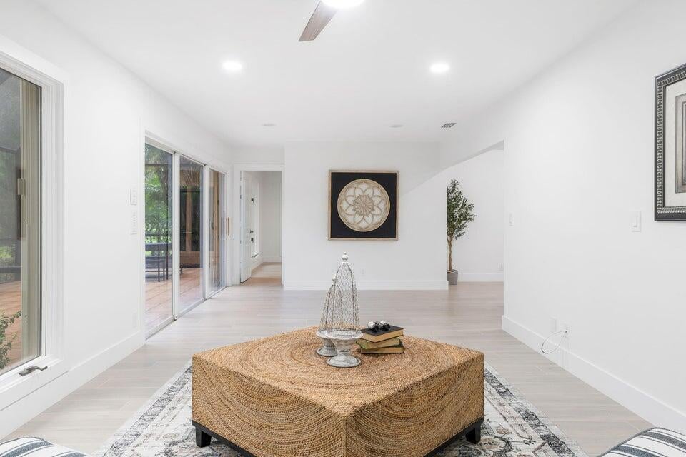 Priced to sell fast! Country Club living at its finest! Discover your dream home in the exclusive Eastpoint Country Club! This stunning 3-bedroom home has been fully renovated from top to bottom. Step into a designer kitchen featuring quartz countertops and brand-new appliances, perfect for your culinary adventures. You'll love the gorgeous new flooring and stylish lighting throughout, along with beautifully redone bathrooms. The home boasts abundant natural light, adding warmth and vibrancy to each room. An extra-large garage provides plenty of storage, and accordion shutters offer peace of mind. Roof has 14+ years of life left per 4 pt inspection, replaced in 2008. 2023 HVAC. Don't miss out on this gem!