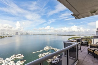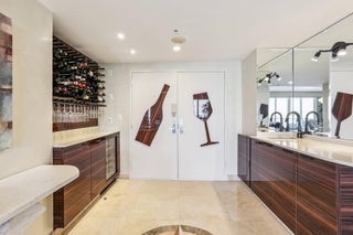 Penthouse 6 at Sunset Harbour South features bay and skyline views, 3BR/2.5BA and is sold fully furnished. It offers 9' ceilings, a large terrace with electric awnings and motorized shades, and a great room that opens to a chef's kitchen with Sub Zero refrigerator, Wolf oven/induction cook top & grill, plus a Miele coffee station. The ~700 sf primary suite has a spa bath with tub, glass shower, bidet and double vanity; two other bedrooms share a bath. Impact glass, water source HVAC and two parking spaces. Amenities: pool, fitness center and concierge. Steps to dining, Fresh Market and marina. Current building projects prepaid by seller.