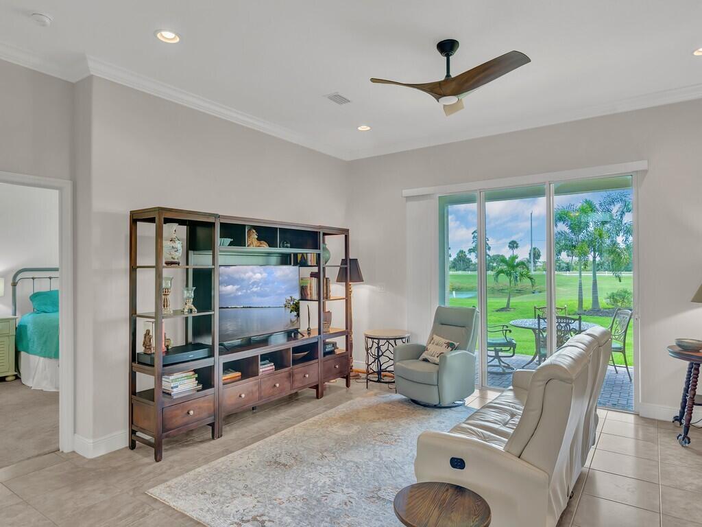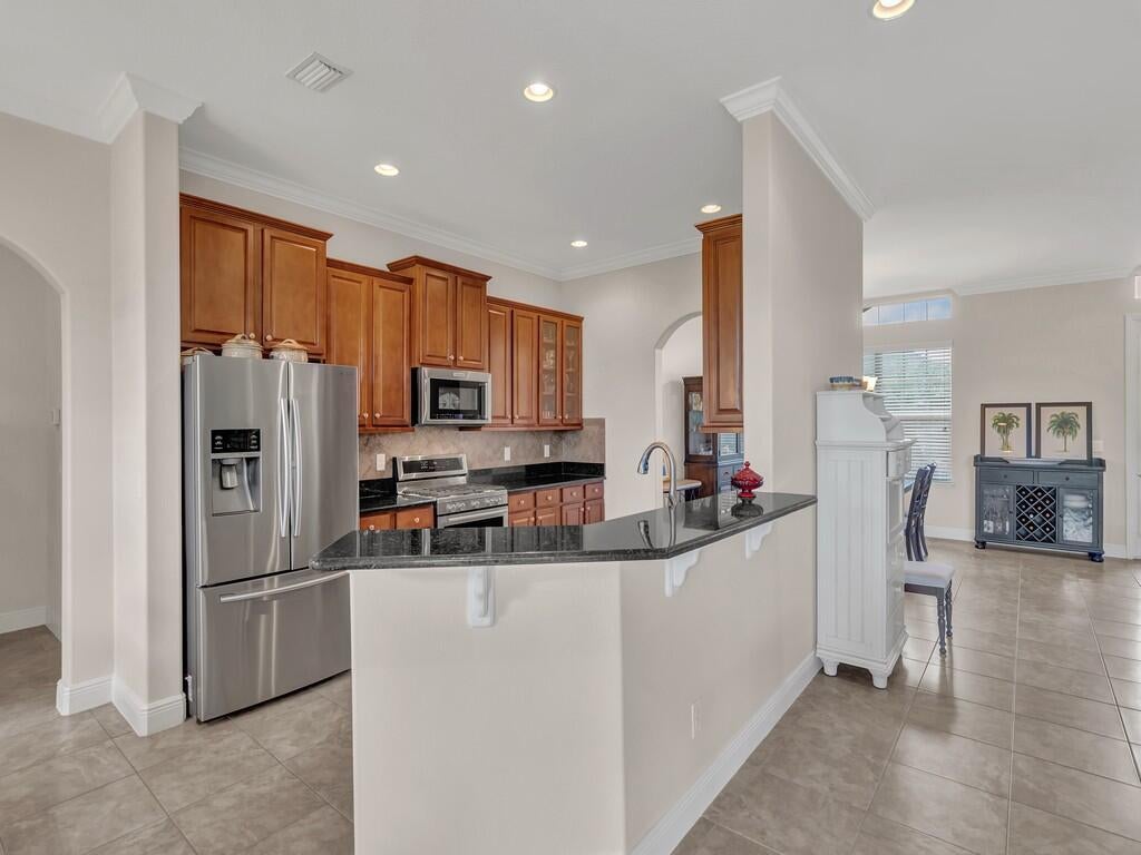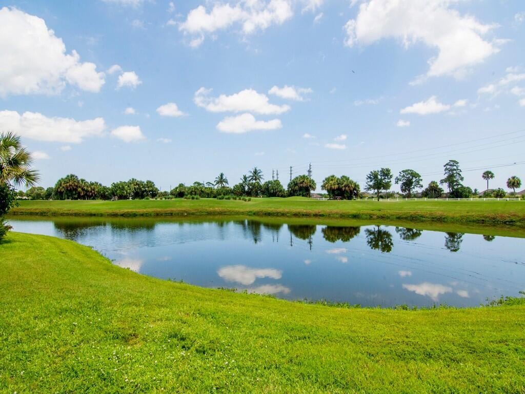 New 2025 Roof & 4 ton A/C<,!! Welcome to the Golf Course Community of Pointe West, one of very few natural gas communities. Relish in Water & Golf Course Views with Magical Sunrises from your porch over looking the golf course and pond. Sip your morning coffee or evening wine under both covered porches. This 3/2.5/2 + den blends a split and open concept with only having a single owner. New LVP bedrooms with Volume ceiling providing a light and bright inside. Upgraded SS kitchen appliances, 42" cabinets and granite countertops. Primary suite features tray ceiling, his and her closets & vanities, soaker tub and separate walk-in shower. Spacious guest bedrooms with shower tub combo in guest bathroom & granite countertop vanity. 24x12 covered patio on a 1/4 acre lot/. No more pestering yard work since lawn cares included in HOA fee. Private golf course membership available but not mandatory.